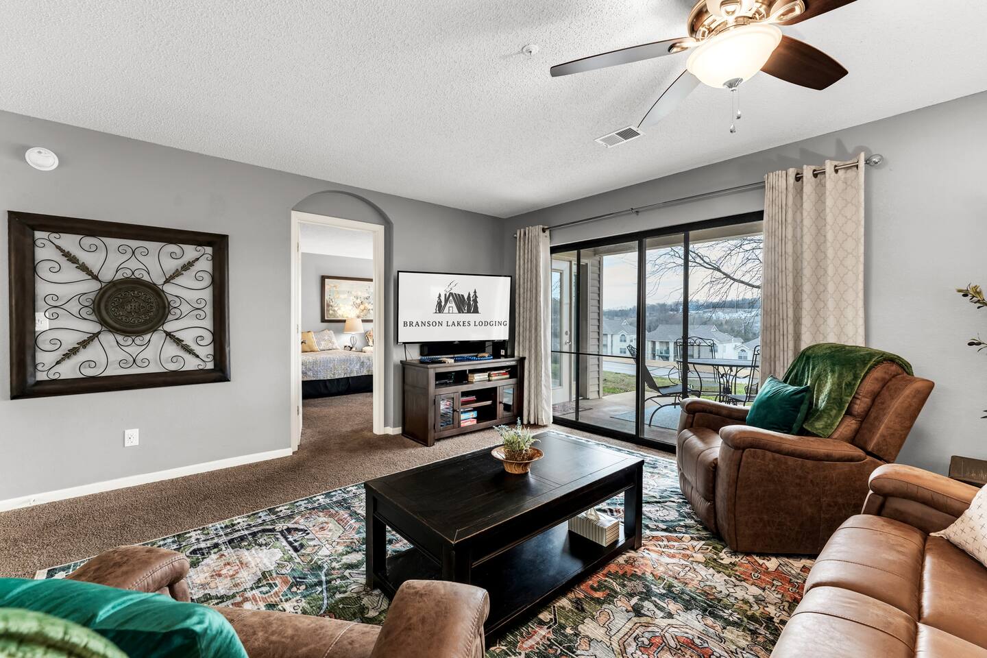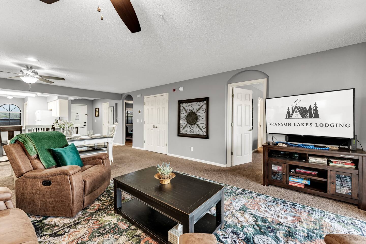 Spacious Thousand Hills Golf Resort Condo | Sleeps 8 | Pools & Amenities Enjoy Branson in style at this spacious two-bedroom, two-bath condo at the popular Thousand Hills Golf Resort. Elegance and comfort come together with upscale décor, modern furnishings, and the perfect central location just behind the famous 76 Strip—minutes from shows, dining, shopping, and Silver Dollar City. Condo Highlights (≈1,400 sq. ft.): 🛏️ Sleeps up to 8 – 1 king bed, 2 queen beds, self-inflating air mattress 🍳 Fully equipped kitchen with granite countertops & stainless appliances 📺 Three flat-screen HDTVs, cable, Wi-Fi, and board games for family fun 🛋️ Spacious living & dining area, perfect for gathering 🌅 Private patio with electric grill to relax after a day in Branson 🧺 In-unit washer & dryer for added convenience Resort Amenities (short walk away): 🏊 Heated indoor & outdoor pools (seasonal outdoor, year-round indoor) 💦 Hot tub / Jacuzzi & sauna 💪 Fitness center & clubhouse with kitchen access Why Guests Love It: ✔️ Prime “Heart of Branson” location near the Strip ✔️ Roomy condo—plenty of space to spread out ✔️ Ideal for families, couples, or groups traveling together ✔️ Resort extras that make every stay more enjoyable When you stay with Branson Lakes Lodging, you’ll find a clean, well-stocked space with quality linens, plush towels, and thoughtful extras. We work hard to ensure your Branson vacation is as comfortable and memorable as possible!