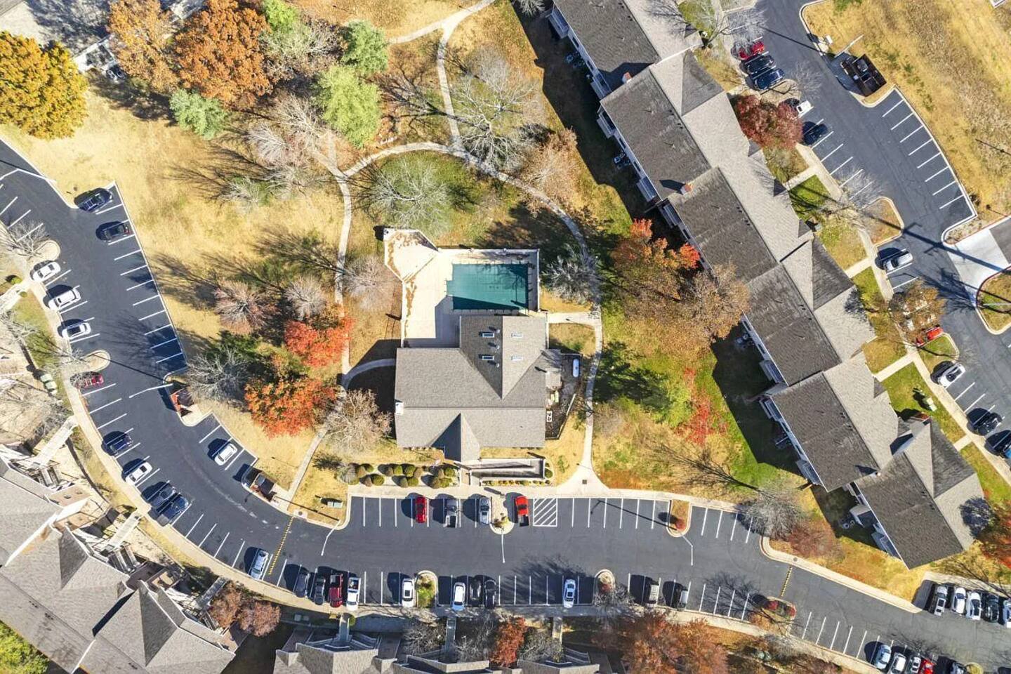 There is plenty of on site parking, but no assigned spaces. The pools, hot tub and exercise facility are close by, but a car is necessary to get to the closest stores and restaurants.