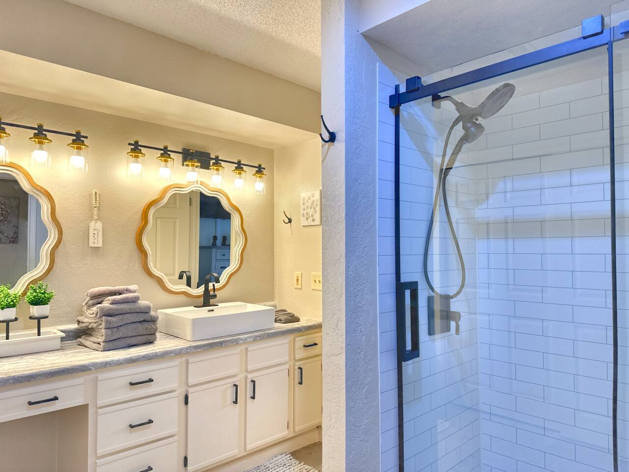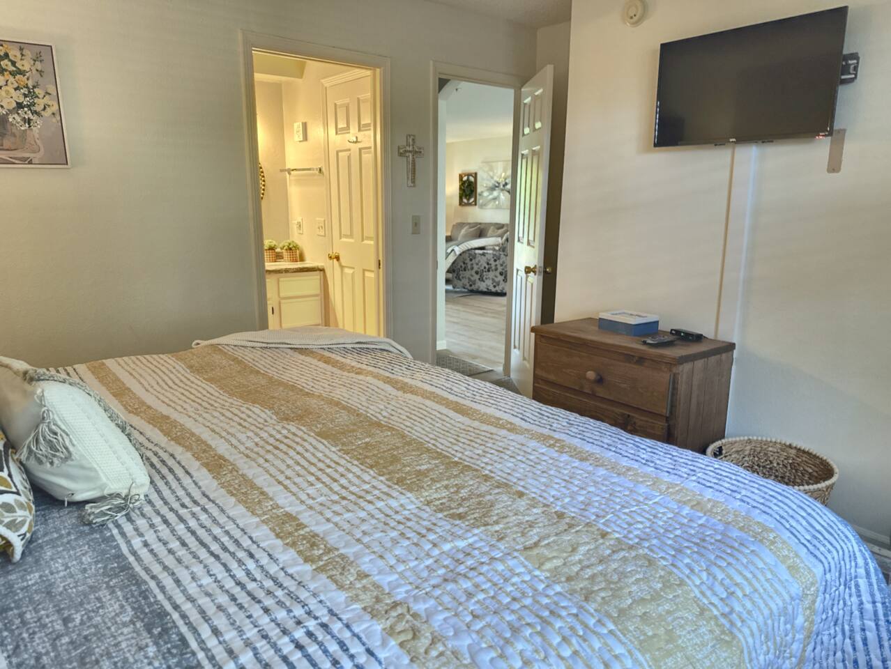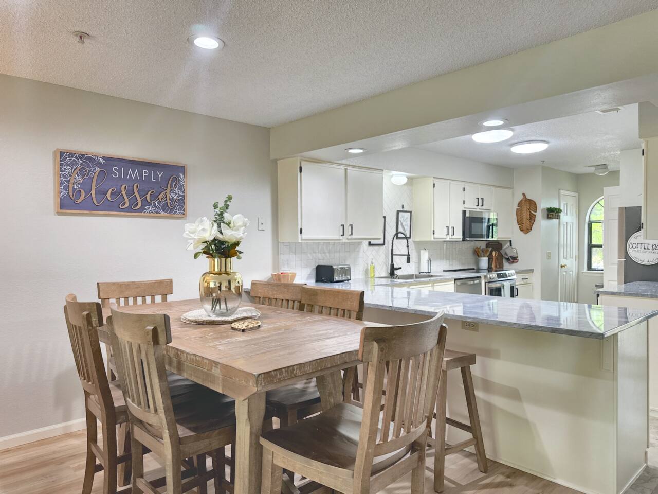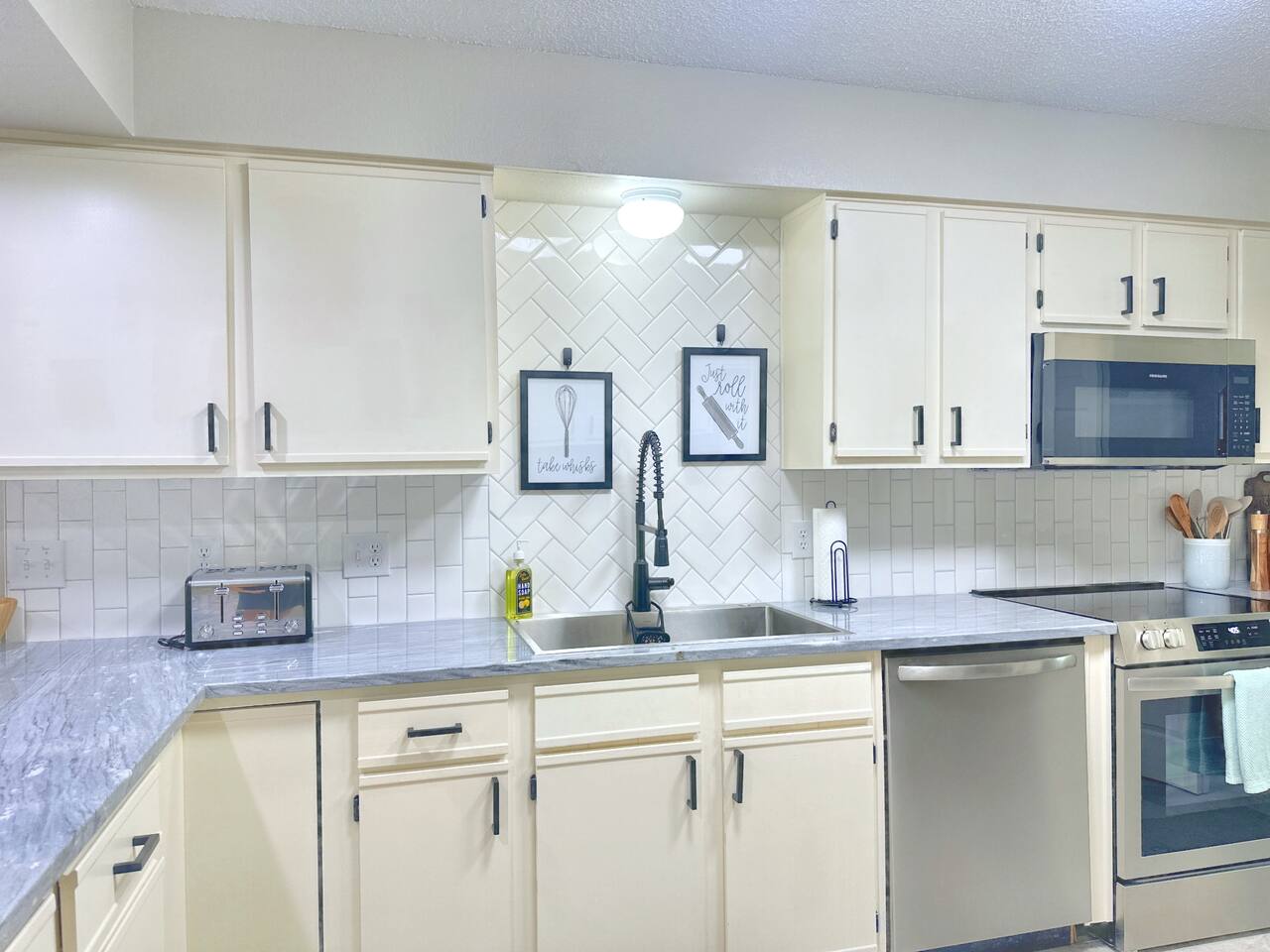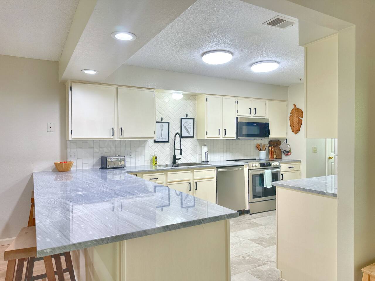 Enjoy Branson and relax in this fully remodeled and completely newly furnished (8/2024) spacious condo loaded with amenities at the popular Thousand Hills Golf Resort. Elegance and luxury awaits you in this stunning condo that provides you with comfort, beautiful décor, furnishings, upscale amenities, and the perfect location in the Heart of Branson just behind the famous 76 Strip. The condo is just minutes away from everything Branson has to offer for your memorable vacation. Our condo is fully equipped with all the comforts of home including a 55' HDTV in the living area, electric fireplace, cable and WIFI, comfortable king beds, a fully equipped kitchen with marble and stainless appliances, and a lovely patio with seating next to green space for you to relax on after a fun day in Branson. This condo is a very large two-bedroom with two king beds, two attached bathrooms, a large living/dining room, and kitchen. We also have a high-quality brand new sofa sleeper that can be utilized to sleep two additional guests for a total of 6. The condo has 2 upholstered rockers, a beautiful dining area and a large well equipped kitchen with everything you might need to prepare and enjoy a meal. The condo is spacious; just under 1,400 sq. ft. which will give your group plenty of room to spread out and enjoy both time together and apart during your vacation. We are also located across the lawn area from the clubhouse which includes an indoor-outdoor pool, sauna, Jacuzzi, and fitness area. This is a can't miss opportunity and condo for the entire family that promises not to disappoint. CONDO FEATURES * A fully equipped kitchen with Granite Countertops and stainless appliances * Keurig, coffee and sugar * Three Flat Screen HDTV's, board games * Cable TV and High Speed Internet with WIFI *Walk in shower in the Master Bath *Private full-size washer and dryer *Great location in the 'Heart of Branson' just behind the Strip Resort Amenities (all located across the lawn from the patio) *Heated Indoor and Outdoor Pools *Hot Tub / Jacuzzi *Sauna *Fitness Center *Clubhouse w/Kitchen