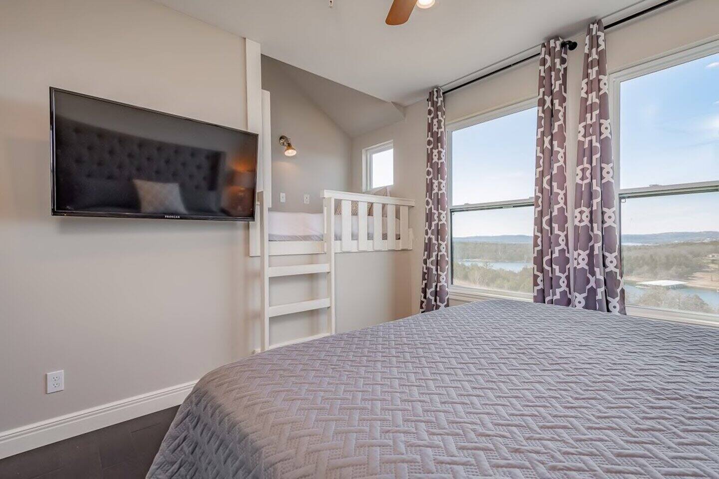 Welcome to Southern Comfort, the ultimate Branson vacation rental, where breathtaking lake views greet you. Perched on a ridge overlooking Table Rock Lake, this spacious home is perfect for large gatherings or a peaceful retreat with friends. Enjoy an open floor plan, gourmet kitchen, and multi-tier deck. Each of the 5 bedrooms (two with fun bunks!) comes with its own bathroom and TV, ensuring everyone has their own space to unwind. Make unforgettable memories in this serene, inviting getaway.