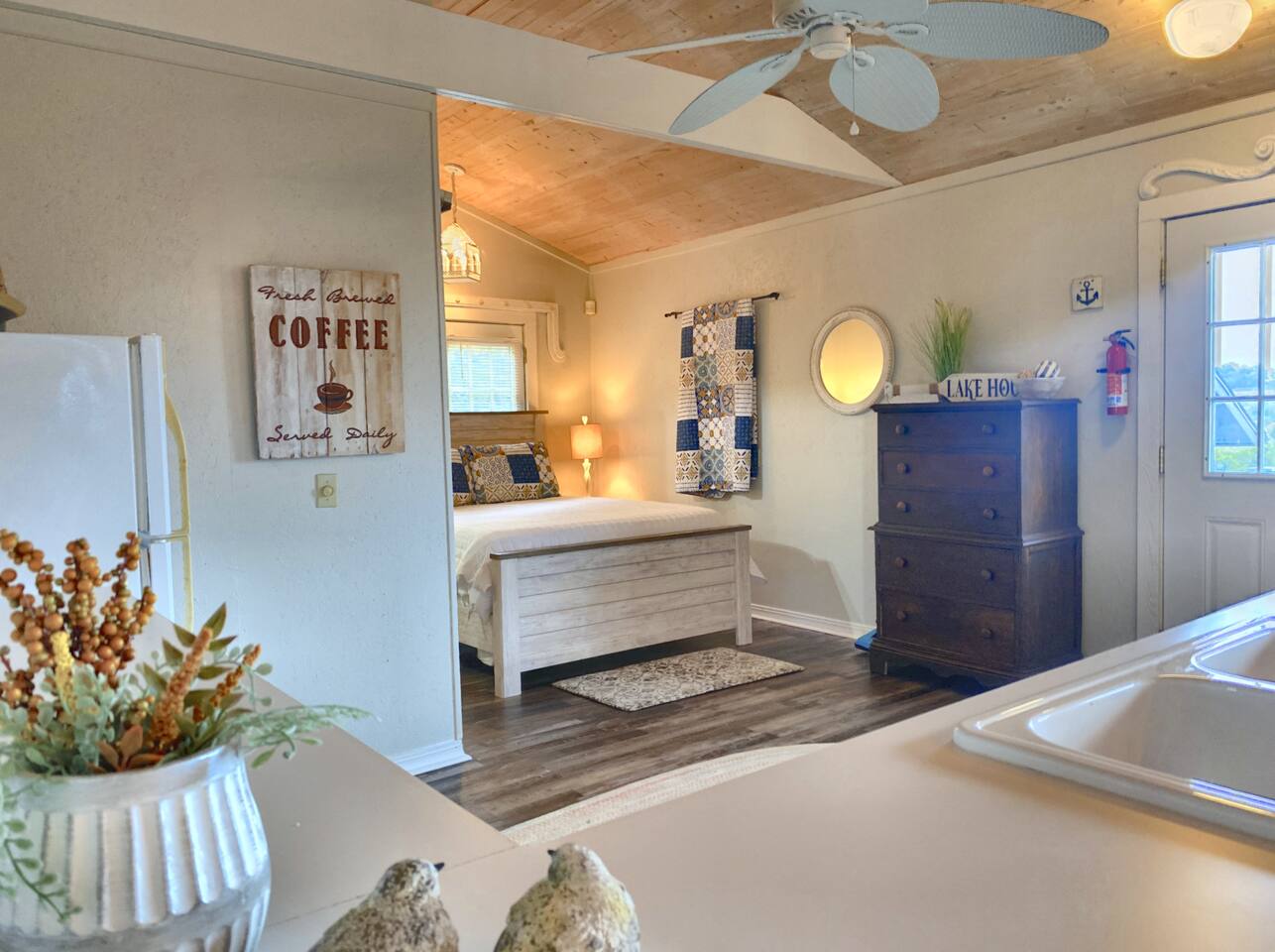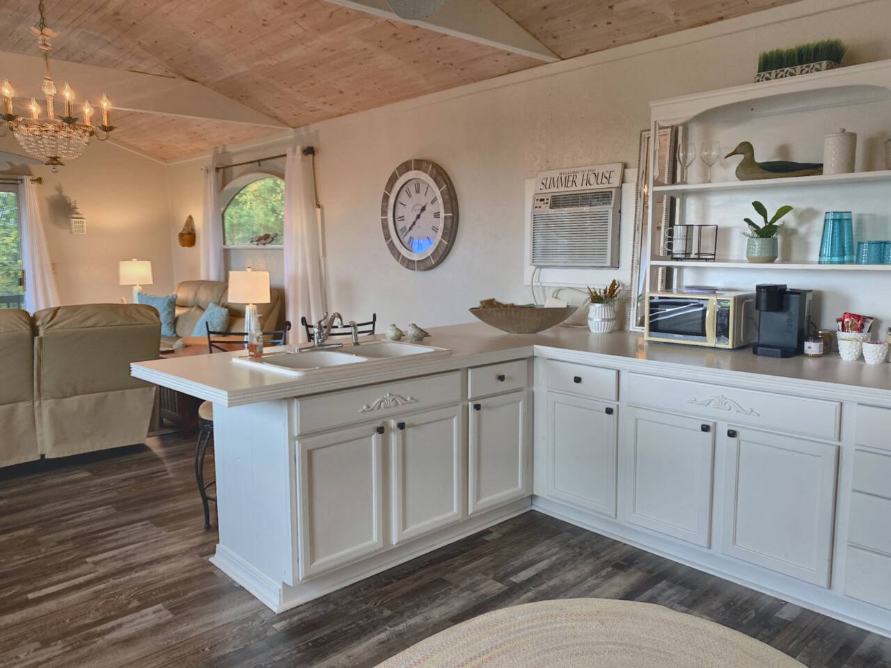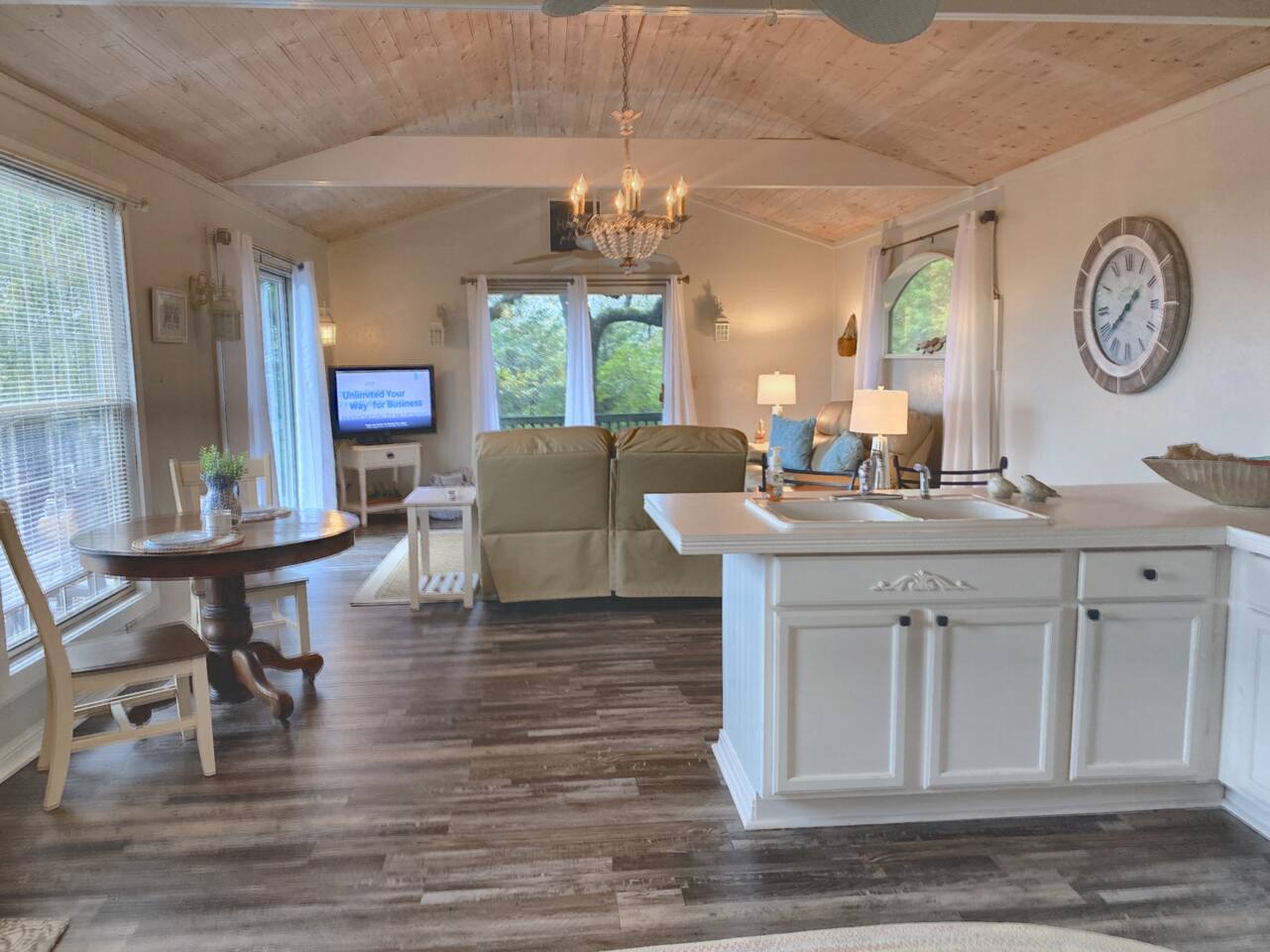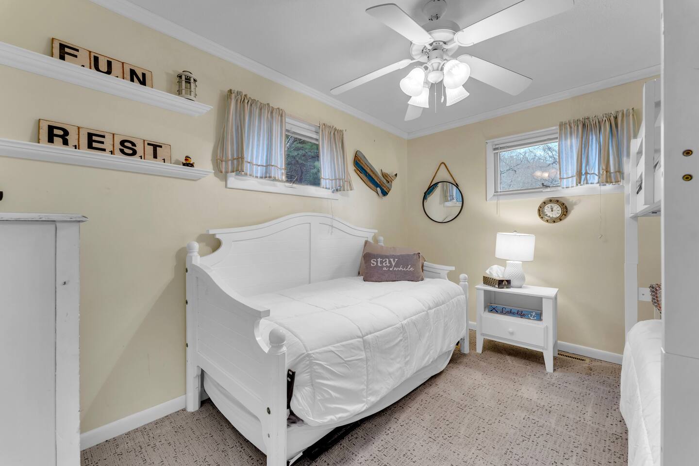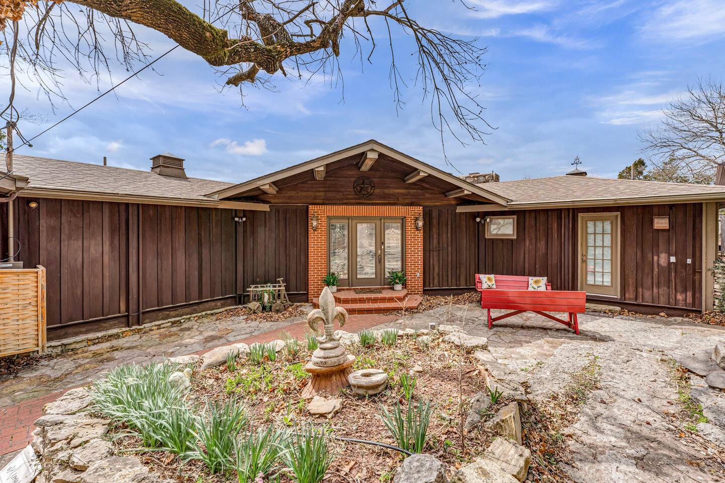 Experience Nature's Beauty and Lakefront Leisure at Our Charming Table Rock Lake Retreat in the Ozark Mountains! Step into the great outdoors and relish in the serene beauty of the deck and fenced yard, where you might even catch a glimpse of the local wildlife roaming the gardens. Ample parking awaits your group, with room to accommodate your boat(s) for a truly adventurous escape. Large driveway and newly paved road for easy access. Yearning for more space? Discover our adjacent house across the street, also available for rent. Unwind by the built-in fire pit on the back deck and relax in abundant seating, perfect for your entire group to savor the breathtaking views after a thrilling day on the lake. Only 10 minutes away, Kimberling City Marina beckons you for endless lake adventures, while a mere 5-minute drive leads you to the Joe Bald Boat Ramp and day-use area, ideal for launching your boat or renting one for an action-packed day on the water. And for family fun, Silver Dollar City is just a 20-minute drive away. Head to Branson for a delightful show or explore the vibrant Branson Strip, and then return to our splendid home to luxuriate in its abundant comforts. Our main home boasts four bedrooms, with the master suite offering spacious comfort, an attached walk-in cedar-lined closet, and an en suite bathroom complete with a jetted tub and shower. Two additional bedrooms feature cozy queen beds, while a bunk room awaits the kids with a single bed and trundle, plus a bunk bed for added fun. Relax in two distinct living areas, with the main floor living room featuring vaulted cedar ceilings, a charming wood stove insert, and plenty of plush seating. The sofa also folds out into a queen sleeper. The open floor plan living and dining room offers a grand custom dining table where the whole family can gather. Venture downstairs to a cozy movie room with deep seating. We've even provided a popcorn machine, games, and puzzles to make your stay truly unforgettable. The fourth bedroom downstairs features a comfy queen bed. Discover the cottage, an open-concept living, kitchen, and bedroom space with a separate enclosed bathroom. Located off the back deck and accessible via a small staircase, it boasts its own private deck with delightful views. The property features expansive outdoor spaces and a fenced yard off the back deck for added convenience. Rest assured, cleanliness is a top priority, and we strive to provide you with everything you need to feel at home, from quality towels and linens to a well-stocked kitchen and comfortable living spaces. We take pride in going above and beyond to offer those special touches you may not find elsewhere. Please note that we do not permit pets, events, or parties of any kind, and we kindly ask that you respect both the home and the neighborhood. For your peace of mind and security, we have exterior cameras on the front door and garage. Quiet hours from 10:00 PM to 8:00 AM are to be strictly observed, and we are always nearby and available to assist with any questions or concerns. Connect with us on social media @branson_rentals and discover Branson Lakes Lodging for your next unforgettable getaway!