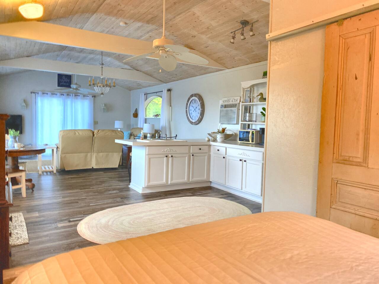 The entire home and cottage is available for your use. The only area that is unavailable is the garage. We do have outdoor only cameras in order to monitor the outside entrances to the home.