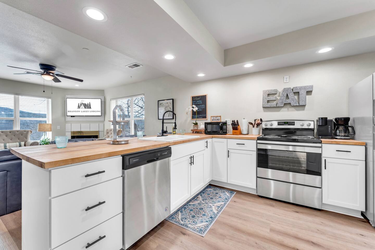 Please note: this condo is up one flight of stairs (about 14 steps), plus two steps from the parking area to the stairway. Once inside, you’ll be rewarded with comfort, style, and quick access to Branson fun! Spend the day at Silver Dollar City, cruise Table Rock Lake, or catch a live show on the famous 76 Strip—then come back to your cozy retreat to relax and recharge.