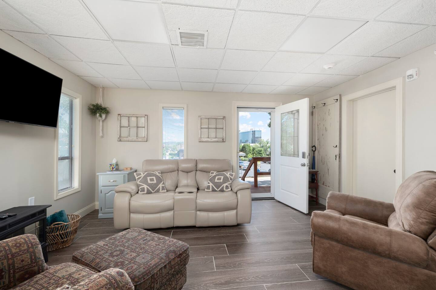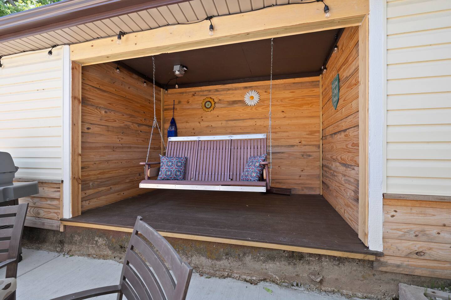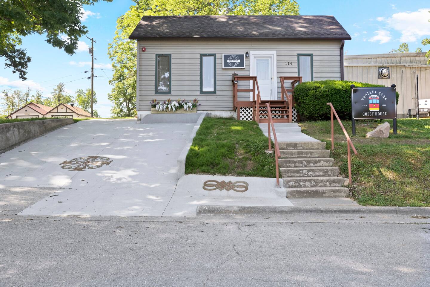 Branson's Best Location: Located just a stone's throw away from the bustling Branson Landing and the serene shores of Lake Taneycomo, our home places you in the center of it all. Explore a variety of shops, restaurants, and entertainment options at Branson Landing, or enjoy fishing, kayaking, and scenic walks by Lake Taneycomo. And the best part? Our home is situated on a free Branson trolley stop, making it incredibly easy to get around and see all the sights without the hassle of driving! Comfortable and Stylish Accommodations: Step inside to find a beautifully decorated interior that exudes warmth and style. Our charming and remodeled Branson home is one of the original downtown homes and has a few charming quirks that you would expect in an old home. 1 and 1/2 bathroom, with one full size shower. The living area is perfect for relaxing after a day of sightseeing, with cozy seating and a flat-screen TV for movie nights. The fully equipped kitchen has everything you need to whip up delicious meals, which you can enjoy in the adjacent bar dining area. Outdoor Delights: Embrace the great outdoors in our lovely outdoor dining space, perfect for al fresco meals under the stars. Fire up the gas BBQ and savor a grilled feast, then challenge your friends or family to a friendly game of corn hole. The extra porch with a swing is ideal for morning coffee or evening relaxation, providing a peaceful spot to unwind and take in the fresh air. As an added feature, you can also park and gain direct access to the backyard. This parking area is gravel and flat, making accessibility a breeze. Comfortable Bedrooms: Our home features two cozy bedrooms, each designed with your comfort in mind. The master bedroom has a plush king-sized adjustable bed and an en-suite bathroom with shower for added privacy. The second bedroom offers a cozy queen-sized bed, and there's a 1/2 bathroom to ensure everyone has ample space and convenience. Why Branson? Branson is a vibrant destination known for its lively entertainment scene, stunning natural beauty, and endless activities for all ages. From world-class shows and theme parks to hiking trails and water sports, there's something for everyone to enjoy. Book Your Stay Today! Experience the best of Branson from the comfort of our delightful home right on the Branson Trolley Stop. Whether you're planning a family vacation, a romantic getaway, or a fun trip with friends, our home is the perfect base for your adventures. We can't wait to host you and help you create unforgettable memories in Branson! Amenities: • Free Branson Trolley Stop right in front of the home • Outdoor dining space • Extra porch with swing • Gas BBQ • Corn hole game • Fully equipped kitchen • Comfortable living area with flat-screen TV • Master bedroom with king-sized adjustable bed and en-suite bathroom • Second bedroom with queen-sized bed and en-suite half bathroom • Super close to the Branson Landing, downtown Branson, and Lake Taneycomo Book now and start planning your perfect Branson getaway!