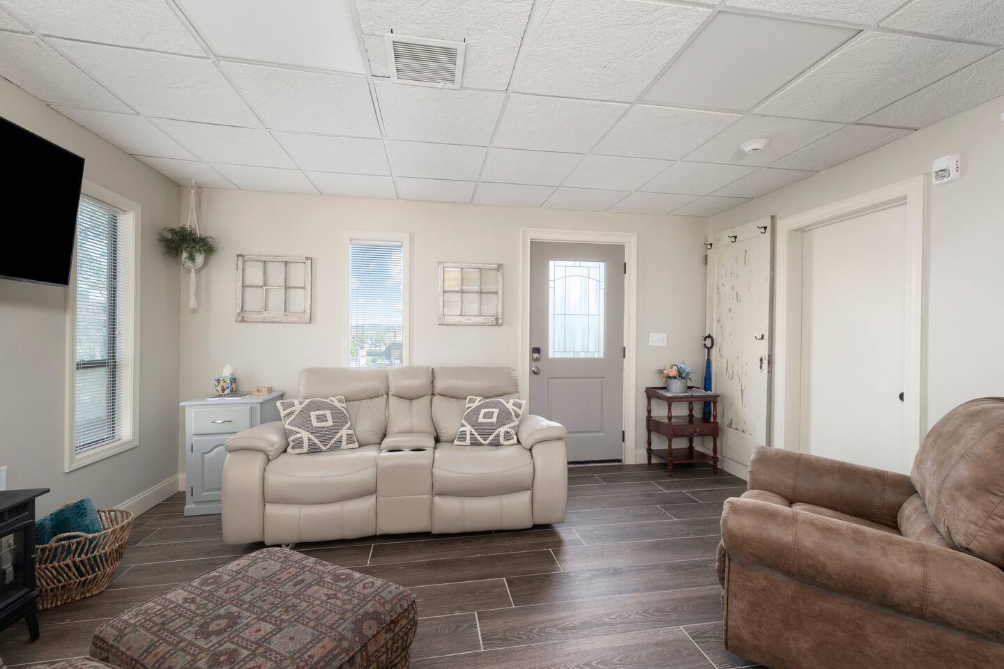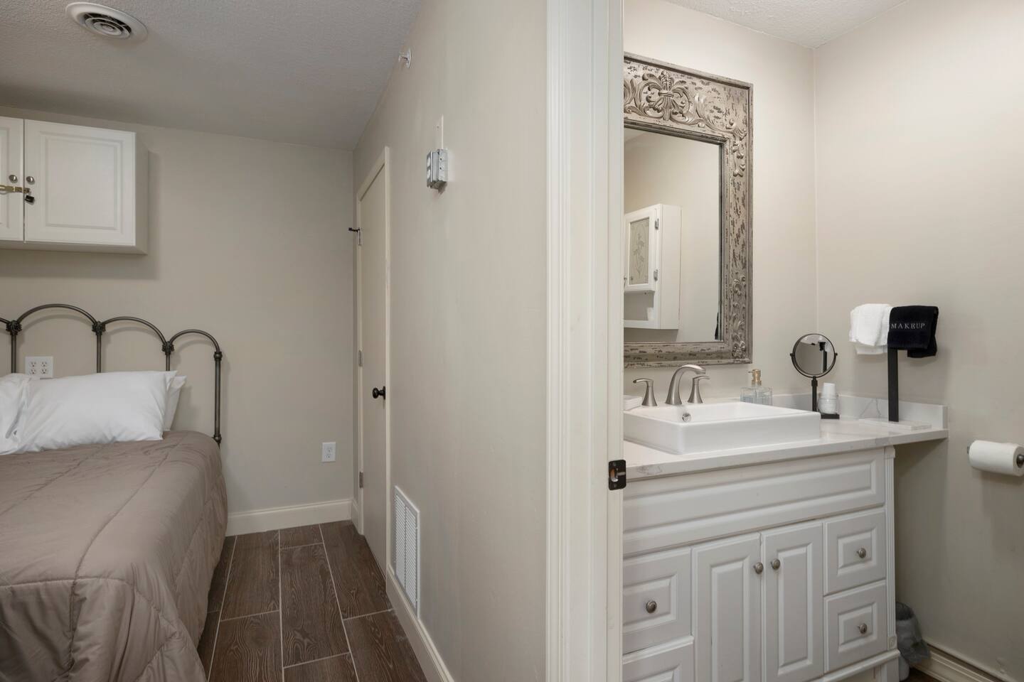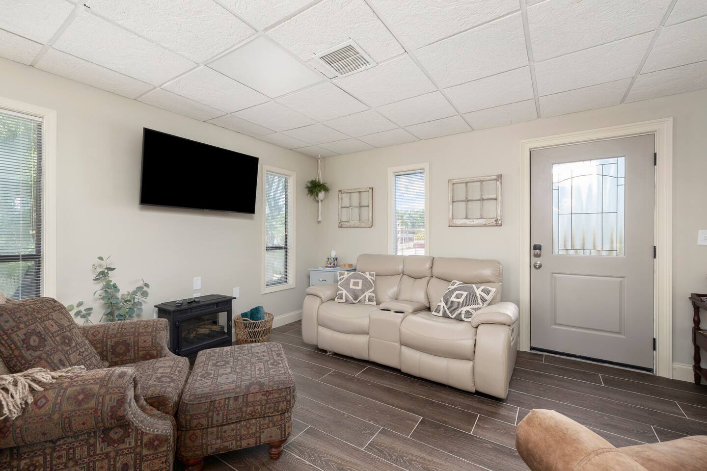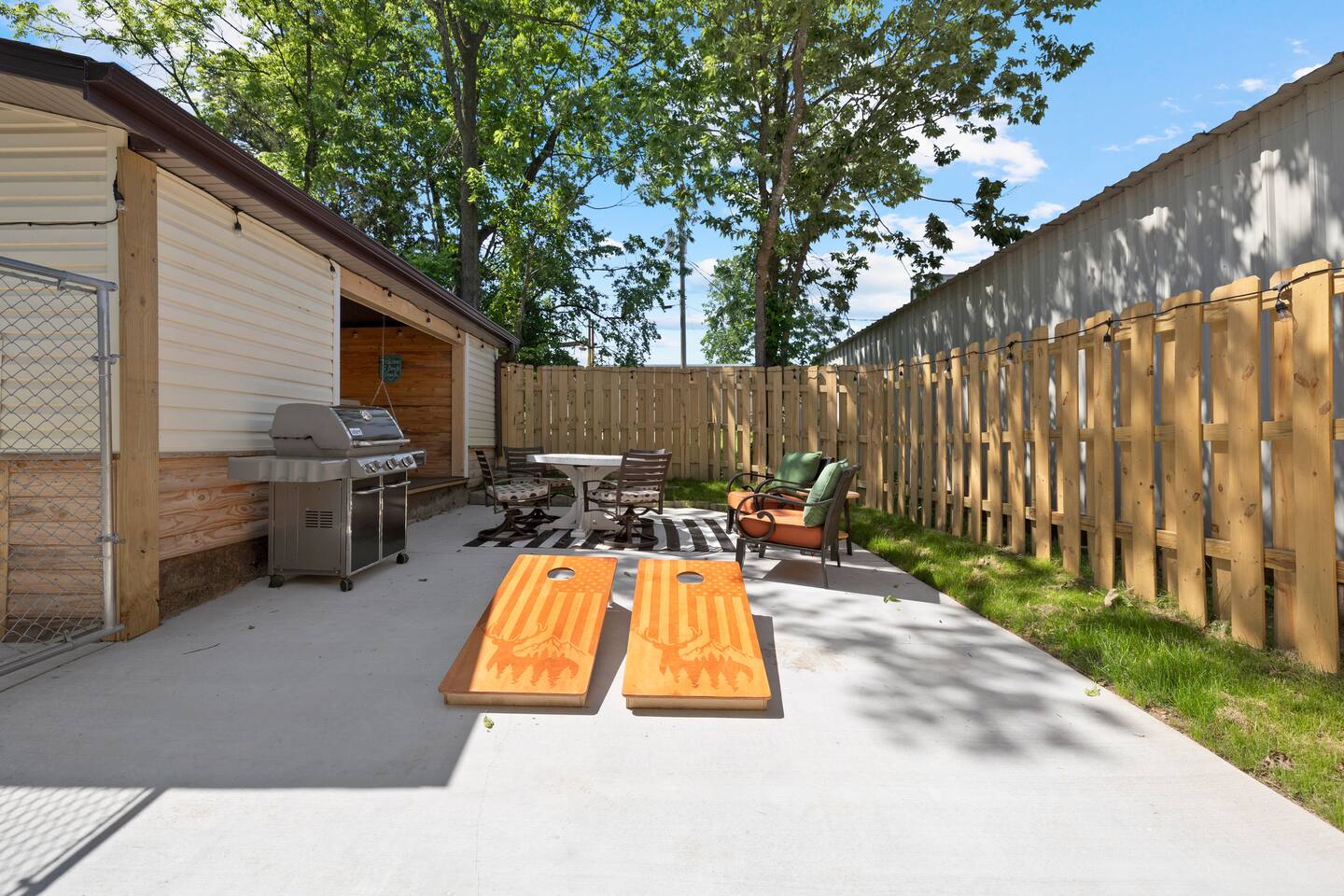 Branson's Best Location: Located just a stone's throw away from the bustling Branson Landing and the serene shores of Lake Taneycomo, our home places you in the center of it all. Explore a variety of shops, restaurants, and entertainment options at Branson Landing, or enjoy fishing, kayaking, and scenic walks by Lake Taneycomo. And the best part? Our home is situated on a free Branson trolley stop, making it incredibly easy to get around and see all the sights without the hassle of driving! Comfortable and Stylish Accommodations: Step inside to find a beautifully decorated interior that exudes warmth and style. Our charming and remodeled Branson home is one of the original downtown homes and has a few charming quirks that you would expect in an old home. 1 and 1/2 bathroom, with one full size shower. The living area is perfect for relaxing after a day of sightseeing, with cozy seating and a flat-screen TV for movie nights. The fully equipped kitchen has everything you need to whip up delicious meals, which you can enjoy in the adjacent bar dining area. Outdoor Delights: Embrace the great outdoors in our lovely outdoor dining space, perfect for al fresco meals under the stars. Fire up the gas BBQ and savor a grilled feast, then challenge your friends or family to a friendly game of corn hole. The extra porch with a swing is ideal for morning coffee or evening relaxation, providing a peaceful spot to unwind and take in the fresh air. As an added feature, you can also park and gain direct access to the backyard. This parking area is gravel and flat, making accessibility a breeze. Comfortable Bedrooms: Our home features two cozy bedrooms, each designed with your comfort in mind. The master bedroom has a plush king-sized adjustable bed and an en-suite bathroom with shower for added privacy. The second bedroom offers a cozy queen-sized bed, and there's a 1/2 bathroom to ensure everyone has ample space and convenience. Why Branson? Branson is a vibrant destination known for its lively entertainment scene, stunning natural beauty, and endless activities for all ages. From world-class shows and theme parks to hiking trails and water sports, there's something for everyone to enjoy. Book Your Stay Today! Experience the best of Branson from the comfort of our delightful home right on the Branson Trolley Stop. Whether you're planning a family vacation, a romantic getaway, or a fun trip with friends, our home is the perfect base for your adventures. We can't wait to host you and help you create unforgettable memories in Branson! Amenities: • Free Branson Trolley Stop right in front of the home • Outdoor dining space • Extra porch with swing • Gas BBQ • Corn hole game • Fully equipped kitchen • Comfortable living area with flat-screen TV • Master bedroom with king-sized adjustable bed and en-suite bathroom • Second bedroom with queen-sized bed and en-suite half bathroom • Super close to the Branson Landing, downtown Branson, and Lake Taneycomo Book now and start planning your perfect Branson getaway!