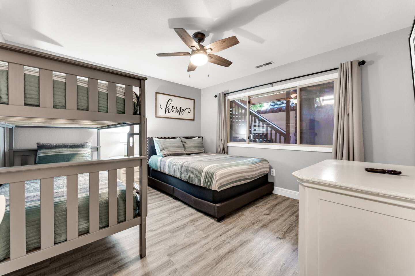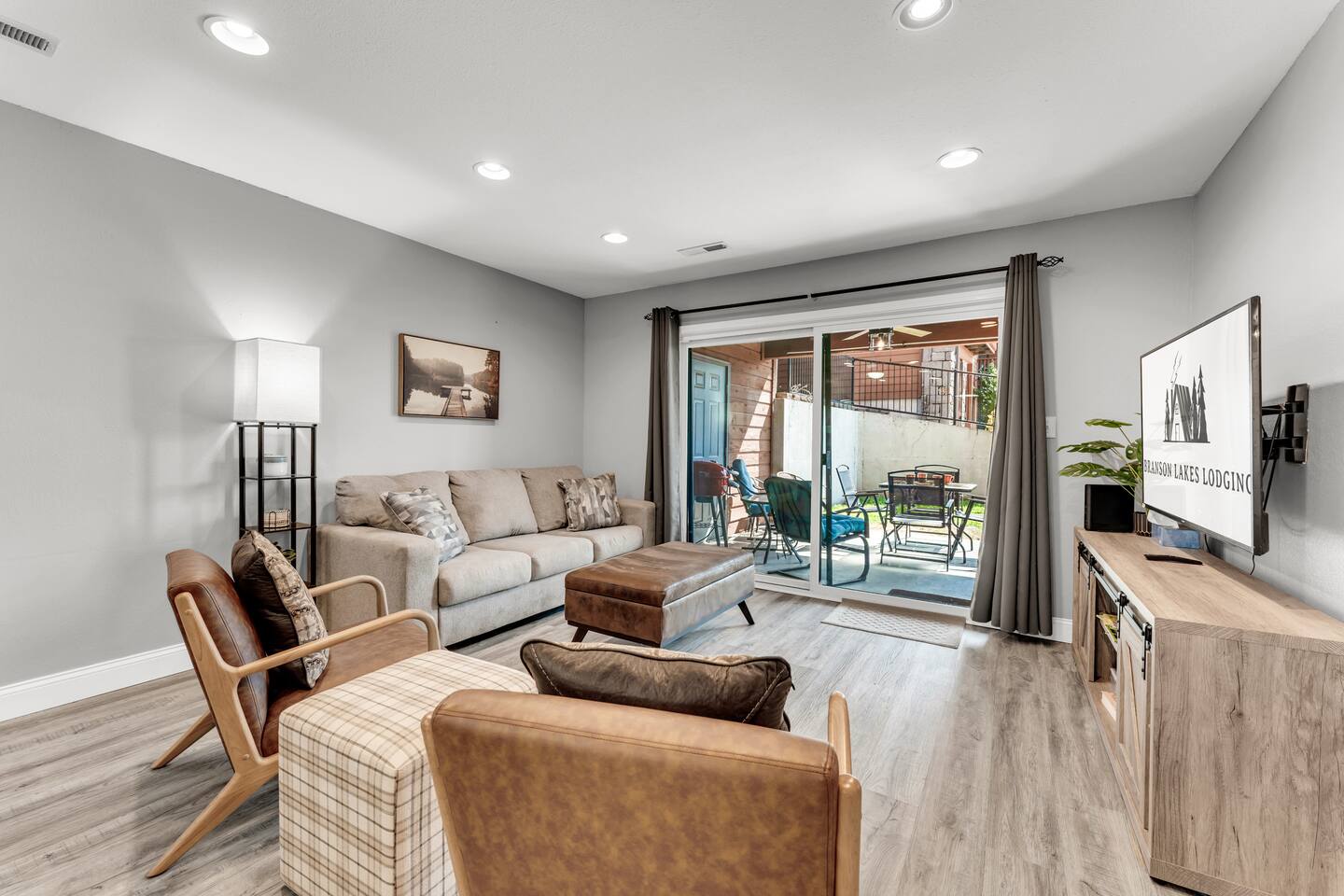 🏡 Family-Friendly Condo in Gated Resort – Steps to Pool, Playground & Sand Volleyball! 🏊♀️🌳 Welcome to our beautifully decorated and fully remodeled 2-bedroom, 2-bathroom condo in the gated community of Pointe Royale Resort in Branson! This inviting space is perfect for families looking to relax, play, and explore everything Branson has to offer. 🛌 Comfortable Sleeping Arrangements Primary Suite: Features a plush King bed and a fully updated attached bathroom with jetted tub. Second Bedroom: Includes a Twin-over-Twin bunk bed and a cozy Queen bed with an adjacent full bathroom. 🌳 Perfect for Families! This condo backs onto a grassy area and is just steps from: 🏊♂️ Outdoor Pool behind the condo (Memorial through Labor Day) 🛝 Playground 🏐 Sand Volleyball Court Let the kids play while you relax and unwind! Staying at this condo means access to all the fantastic amenities that Pointe Royale Golf Resort has to offer: 🏊♂️ 3 Pools: Beautiful outdoor pool for sunny days. OPEN YEAR ROUND indoor heated pool and hot tub. 🏌️♂️ Championship Golf Course: Enjoy discounted golf rates and stunning fairways right outside your door. 🎾 Sports Facilities: Tennis courts, basketball courts, and walking trails. 🐾 Dog-Friendly Community: Two dog parks, including one conveniently located near the condo. 🎣 Lake Taneycomo Access: Perfect for trout fishing and scenic walks along the shoreline. 🍽️ On-Site Dining: Clubhouse restaurant and banquet hall for easy meals and events. 🛡️ 24-Hour Gated Security: Peace of mind with a staffed guardhouse for entry and exit. 📍 Why Stay in Branson, Missouri? Branson is the Entertainment Capital of the Ozarks and offers something for everyone: 🎭 Live Shows & Theaters: Just minutes from Branson’s famous 76 Strip, featuring attractions like: Dolly Parton’s Stampede The Haygoods Sight & Sound Theatre 🎢 Family Attractions: Thrill rides at Silver Dollar City Interactive fun at the Titanic Museum and WonderWorks 🌊 Outdoor Adventures: Boating and water sports at Table Rock Lake Hiking and nature trails in the beautiful Ozark Mountains 🛍️ Shopping & Dining: Branson Landing for waterfront shopping and dining Grand Village Shops for unique boutiques and cafes 🐾 Dog-Friendly Stay We welcome your furry friends with some requirements (see the House Rules for details). With two dog parks nearby, your pup will have plenty of space to play and explore! ✨ Why Guests Love Our Condo ✅ Prime Location: Minutes from Branson’s top attractions, yet tucked away in a peaceful resort community. ✅ Fully Equipped: Everything you need for a comfortable and enjoyable stay – quality linens, a stocked kitchen, and entertainment options. ✅ Exceptional Service: We go above and beyond to ensure your stay exceeds expectations, with attention to detail and thoughtful extras. 🚀 Book Your Branson Escape Today! Don’t miss out on this cozy, updated condo with stunning access directly from the condo, views on the drive in and top-tier resort amenities. Whether you’re planning a family vacation, golf trip, or romantic getaway, this is the perfect place to relax and make memories. 🔗 Reserve Your Stay Now – Your Branson adventure awaits! 🗝️🏡