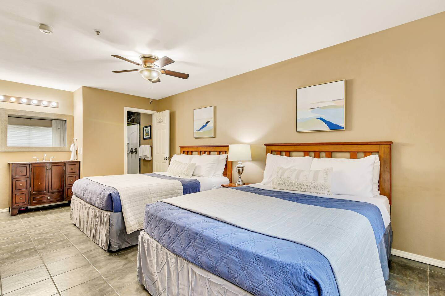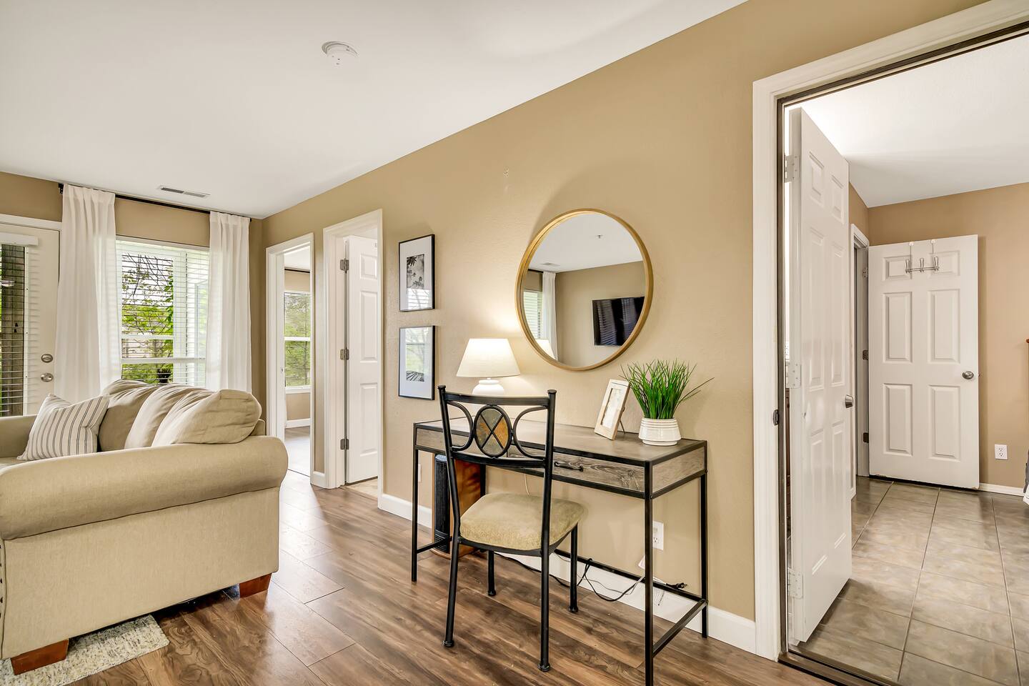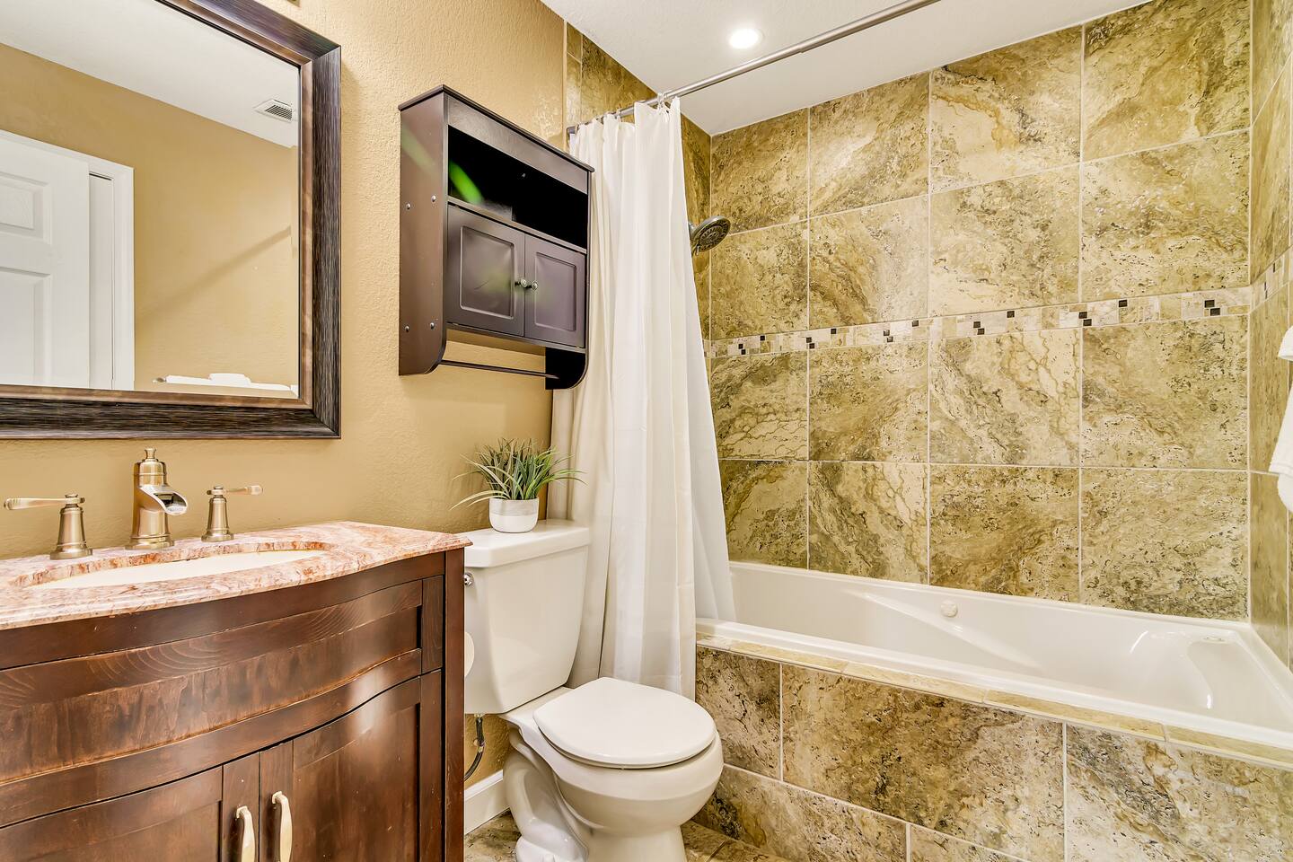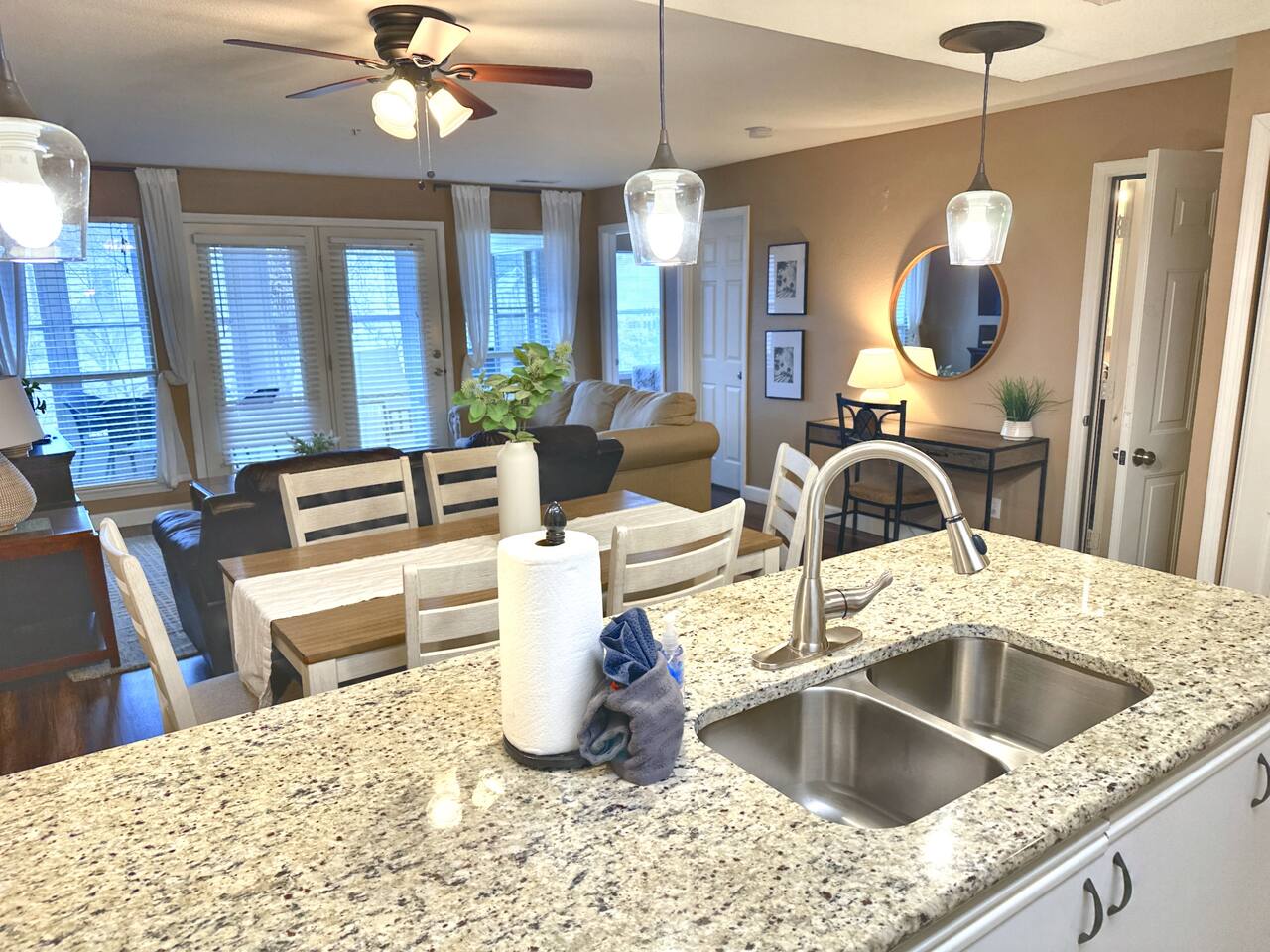 🛌 Comfortable Sleeping Arrangements Bedroom 1 • Two comfortable Queen beds — perfect for kids or friends traveling together Bedroom 2 • Private King bedroom for restful nights Bathrooms • Two full bathrooms so everyone can get ready easily Sleeps up to 6 guests comfortably ☀️ Bright Sunroom One of the best features of the condo is the beautiful climate-controlled sunroom. This relaxing space is perfect for: • Morning coffee • Reading a book • Evening wine after a day exploring Branson Large windows bring in natural light and views of the surrounding greenery. 🍳 Fully Equipped Kitchen The kitchen has everything you need to cook during your stay: • Coffee maker • Keurig • Blender • Crockpot • Wine glasses • Cookware and baking supplies 🛋 Comfortable Living Room Relax on the comfortable reclining sofa and enjoy: • Smart TV • Fast Wi-Fi • Board games and family time The open layout makes it easy for everyone to spend time together. 📍 Prime Branson Location Located inside Thousand Hills Golf Resort, you are just minutes from Branson's best attractions. 3 minutes → Branson 76 Strip 10 minutes → Table Rock Lake 12 minutes → Silver Dollar City 5 minutes → Branson Landing shopping & restaurants Nearby attractions include: • Titanic Museum • WonderWorks • Aquarium at the Boardwalk • Live music shows • Mini golf and go-karts 🏊 Resort Amenities Guests also enjoy access to: • Outdoor pool located next door to the building (seasonal) • Beautiful Thousand Hills Golf Course • Quiet resort atmosphere 👍 Why Guests Love This Condo • Spacious layout for families and groups • Bright relaxing sunroom • Pool next door • Minutes from the Strip • Comfortable beds • Fully equipped kitchen Guest Access Guests have full access to the entire condo including: • Living room • Kitchen • Sunroom • Washer and dryer • Pool access next door Entry requires one flight of stairs down to the front door. From Memorial Day to Labor Day, guests can park by the pool and walk through for step-free access.