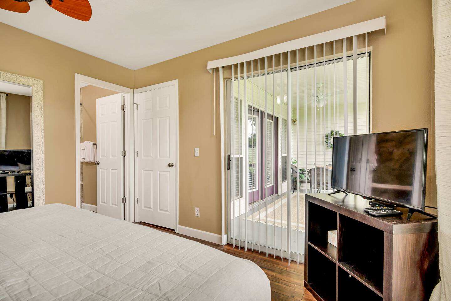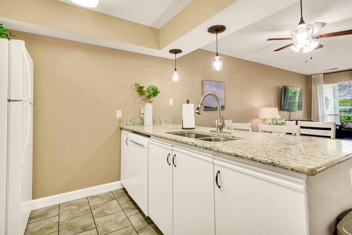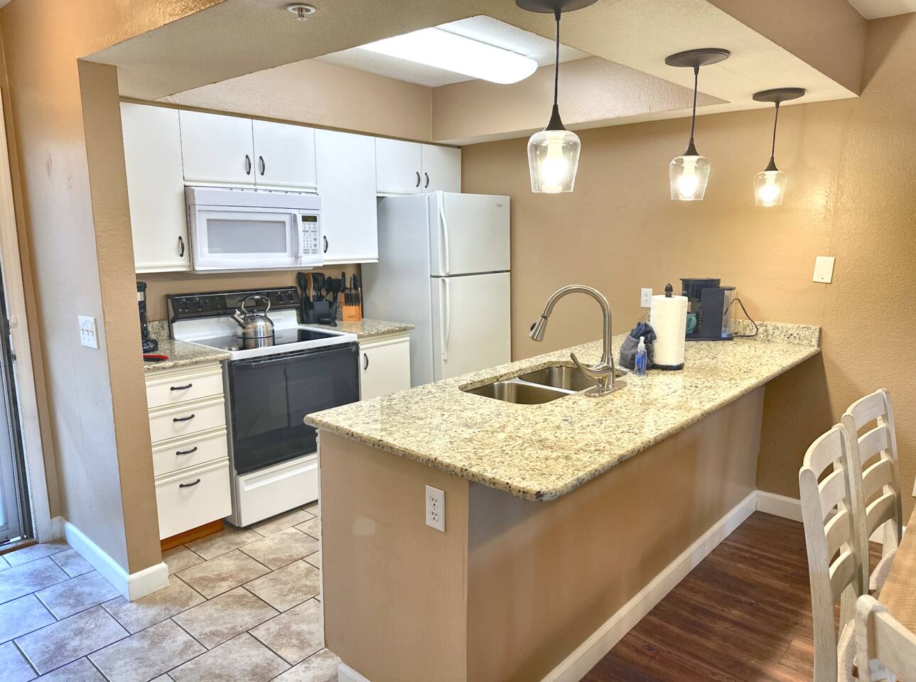 There is a flight of stairs down to reach the front door of this condo or you can park by the pool and walk-through for no stair access from Memorial to Labor Day. You will have access to the entire condo, sunroom and the onsite pool located directly next door to the building.
