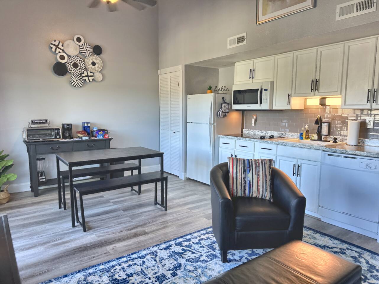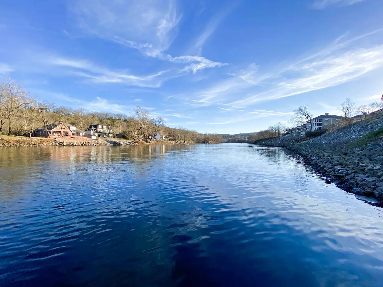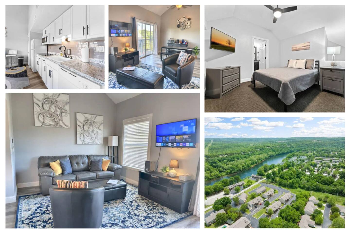Beautifully updated space in a bright corner unit with two queen bedrooms and two bathrooms. The sofa also folds out into a queen bed for two (best suited for children, new foam mattress). The bedroom upstairs is a loft style space with a half wall for privacy. This is an open concept space decorated with your comfort in mind. The condo has been completely updated, and all of the comforts of home have been provided. All spaces are updated, and linens are new. We work hard to ensure cleanliness and to provide our guests with everything they need to feel comfortable; quality towels and linens, a well-stocked kitchen, and a comfortable living space. We pride ourselves on going above and beyond your expectations to provide the little extras that you may not find at other vacation rental properties. We have a Keurig and regular coffee pot, table settings for 8, wine glasses, pots and pans, and cooking utensils. We are dog-friendly and welcome your furry friend. The resort has a 40lb restriction on dogs, and we must adhere to that guideline. There is a $75 pet fee per stay, just choose the pet option when booking, and it will be added to your reservation. Please let us know about your dog when booking. The wonderful Fall Creek Marina is only a 5-minute walk from the condo - enjoy all that Lake Taneycomo has to offer. You can fish, go boating, hike, and take in the beauty of the lake. Fall Creek Marina is located on the upper end of Lake Taneycomo, about 2 miles from Table Rock Dam. Lake Taneycomo is one of the world's premier year-round trout fishing lakes in the country. Socials: Branson_rentals Branson Lakes Lodging
