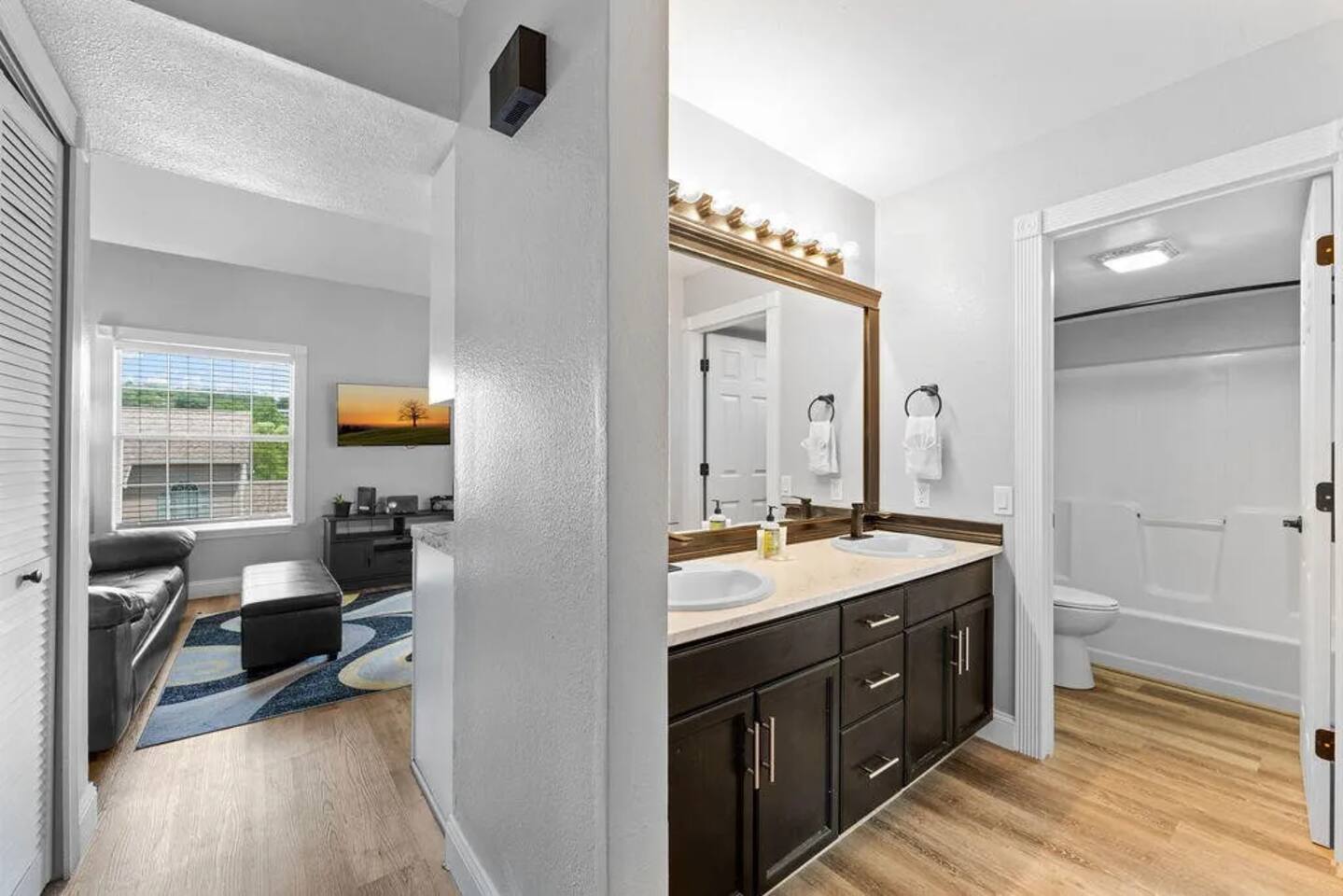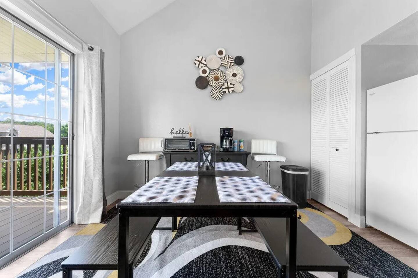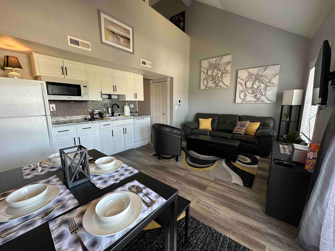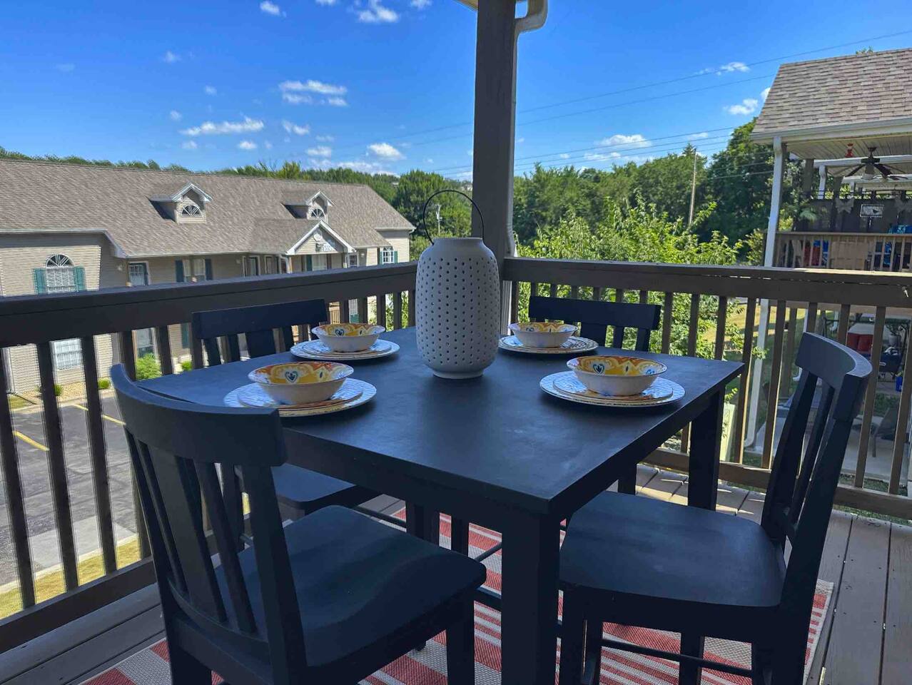 Beautifully updated space in a bright corner unit with two queen bedrooms and two bathrooms. The sofa also folds out into a queen bed for two (best suited for children, new foam mattress). The bedroom upstairs is a loft style space with a half wall for privacy. This is an open concept space decorated with your comfort in mind. The condo has been completely updated, and all of the comforts of home have been provided. All spaces are updated, and linens are new. We work hard to ensure cleanliness and to provide our guests with everything they need to feel comfortable; quality towels and linens, a well-stocked kitchen, and a comfortable living space. We pride ourselves on going above and beyond your expectations to provide the little extras that you may not find at other vacation rental properties. We have a Keurig and regular coffee pot, table settings for 8, wine glasses, pots and pans, and cooking utensils. We are dog-friendly and welcome your furry friend. The resort has a 40lb restriction on dogs, and we must adhere to that guideline. There is a $75 pet fee per stay, just choose the pet option when booking, and it will be added to your reservation. Please let us know about your dog when booking. The wonderful Fall Creek Marina is only a 5-minute walk from the condo - enjoy all that Lake Taneycomo has to offer. You can fish, go boating, hike, and take in the beauty of the lake. Fall Creek Marina is located on the upper end of Lake Taneycomo, about 2 miles from Table Rock Dam. Lake Taneycomo is one of the world's premier year-round trout fishing lakes in the country. Socials: Branson_rentals Branson Lakes Lodging