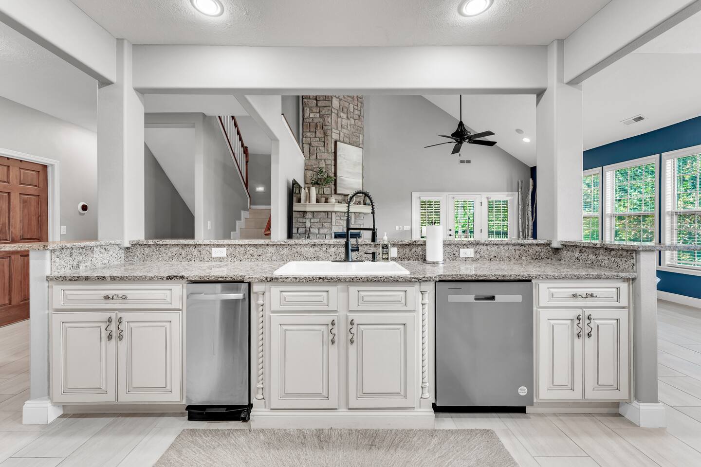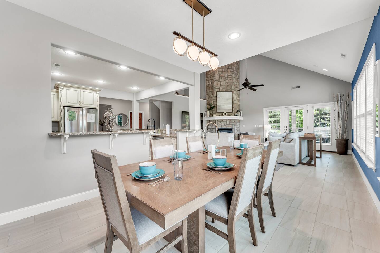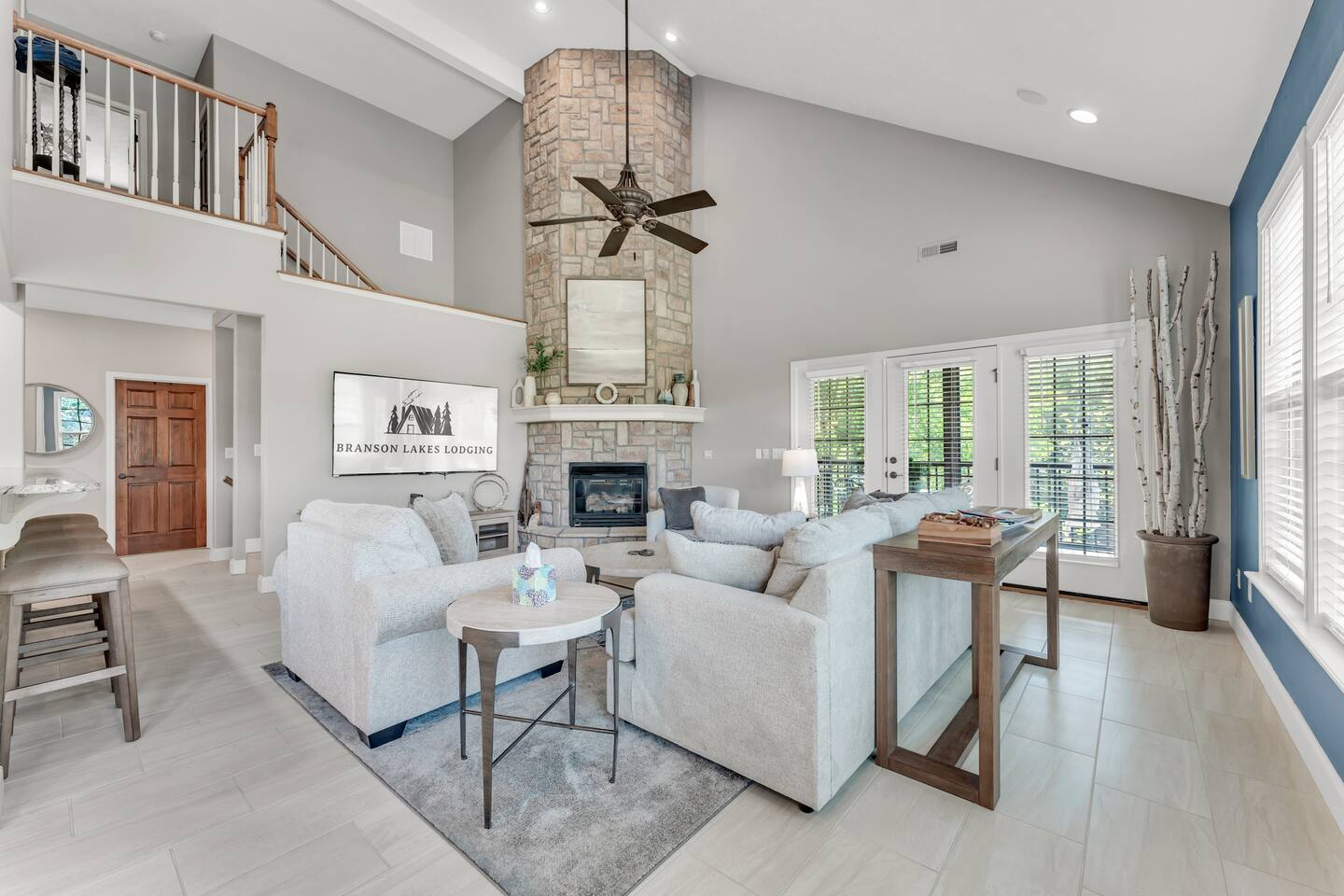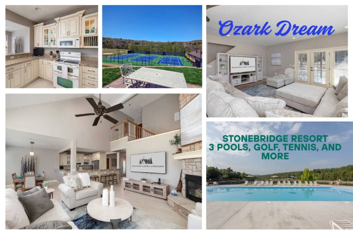 Luxurious NEW renovation, 4 bedroom, 4 bath home on the 13th green of Ledgestone golf course in the gated community of Stonebridge. Only a stone's throw away from Silver Dollar City! We have everything you need to make your Branson vacation perfect. Three swimming pools, 3 tennis courts, onsite restaurant-LedgeStone Grille, 3 playgrounds, sand volleyball, basketball court, paved walking path, a lake with fountain, banquet facilities, 24 hours gated security, and stocked, catch and release lake!