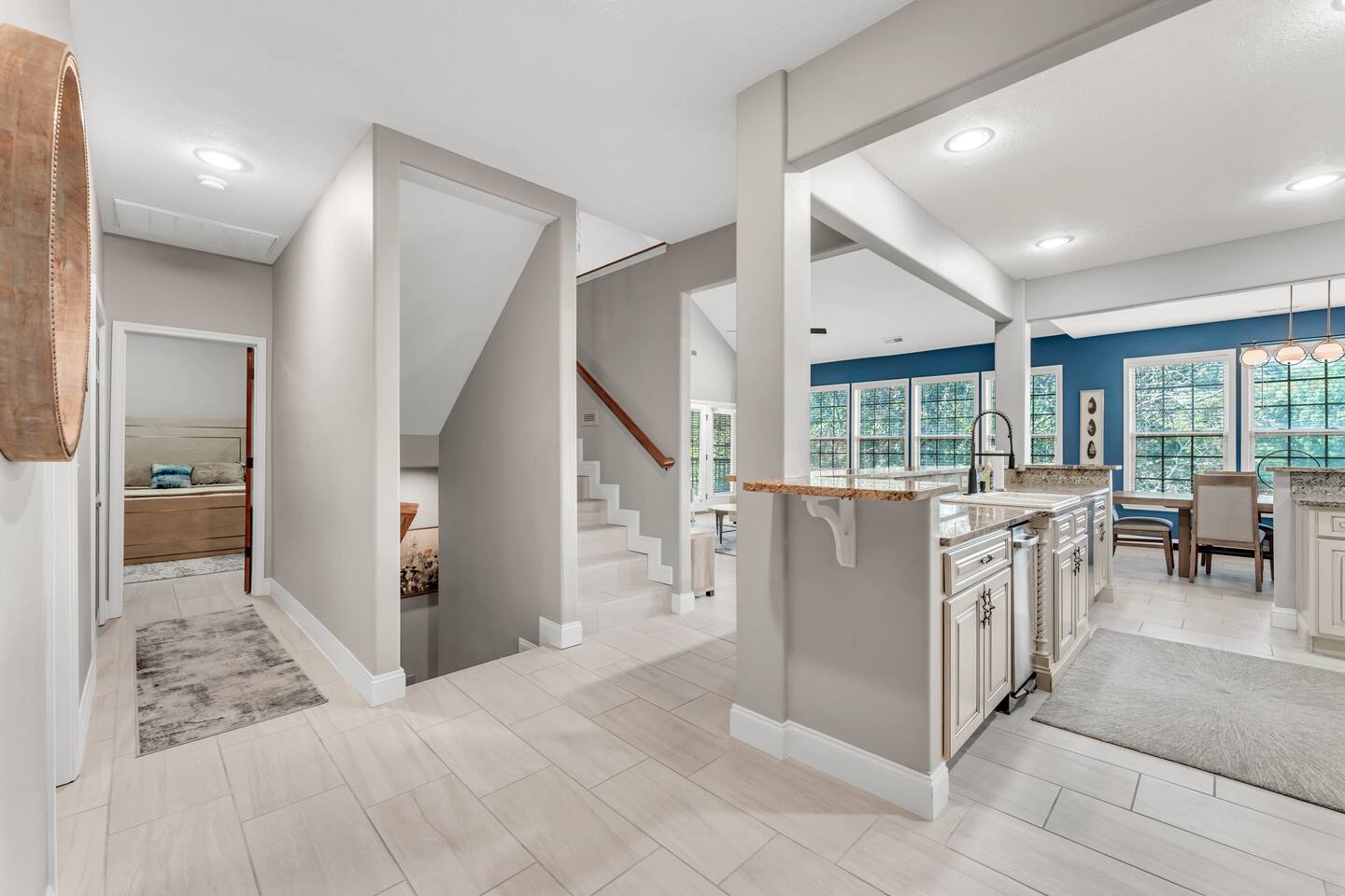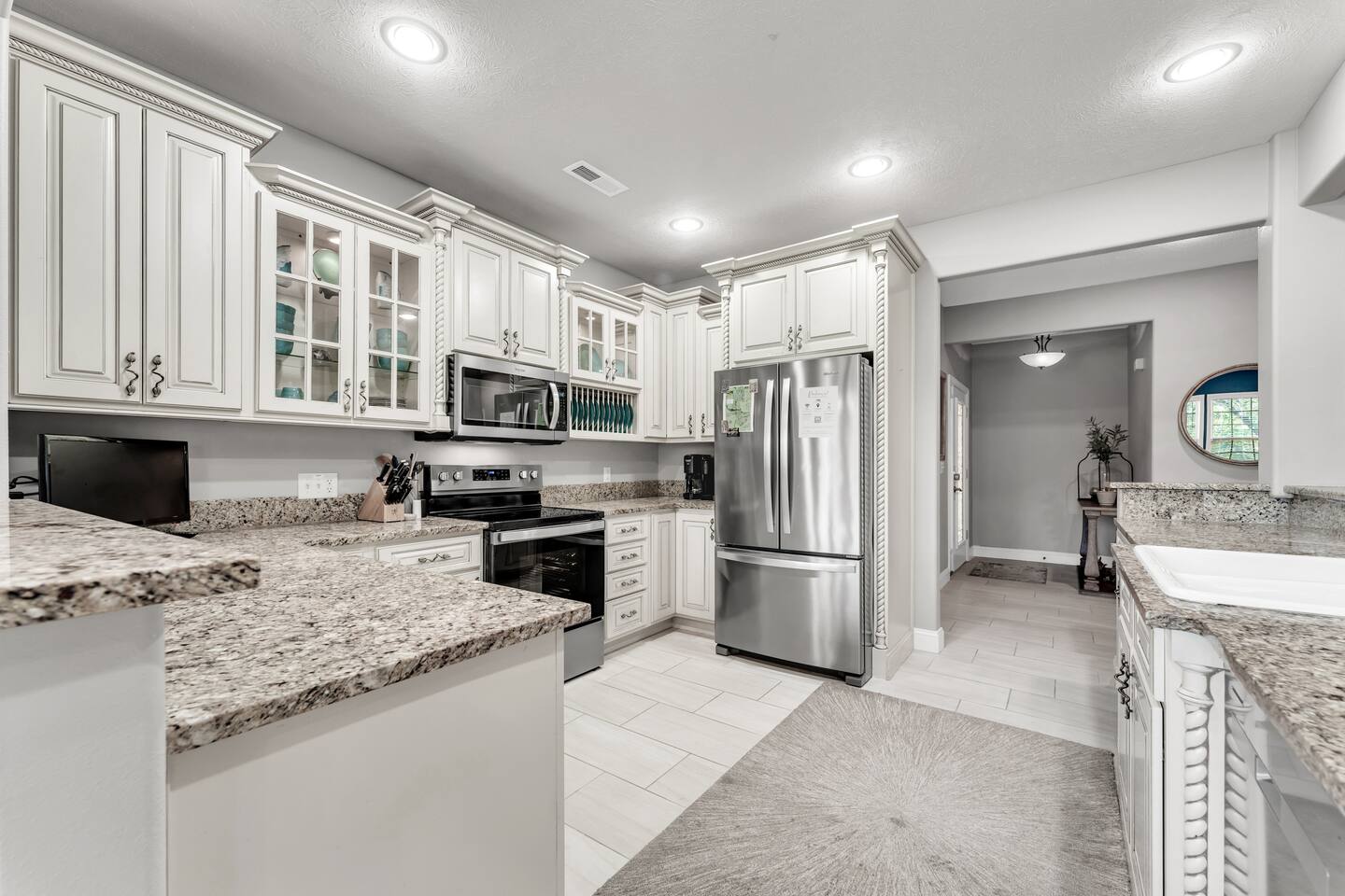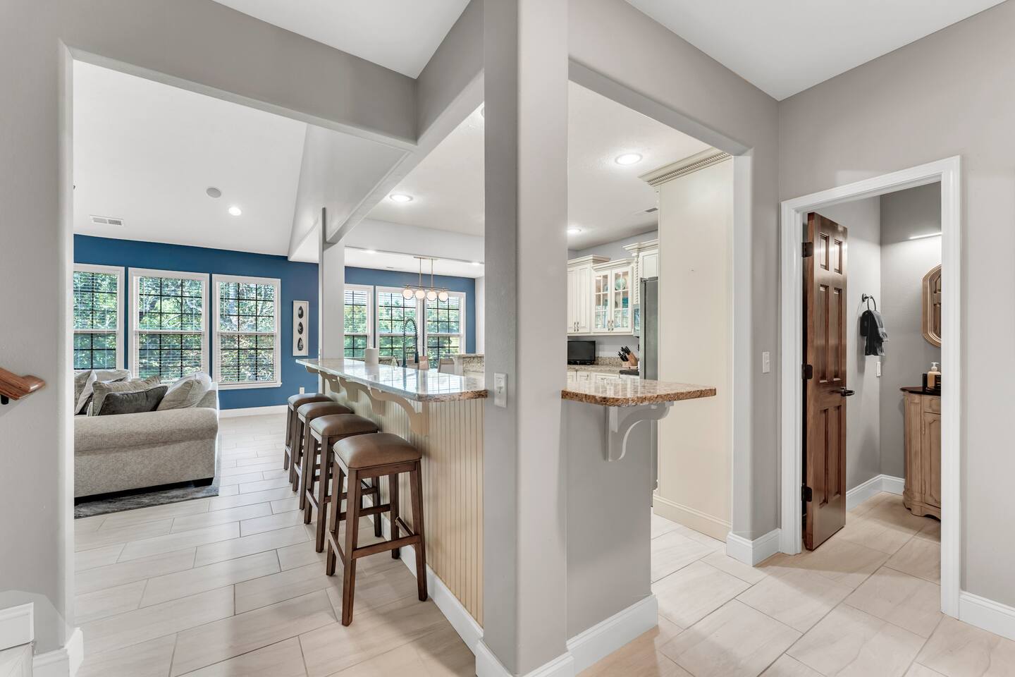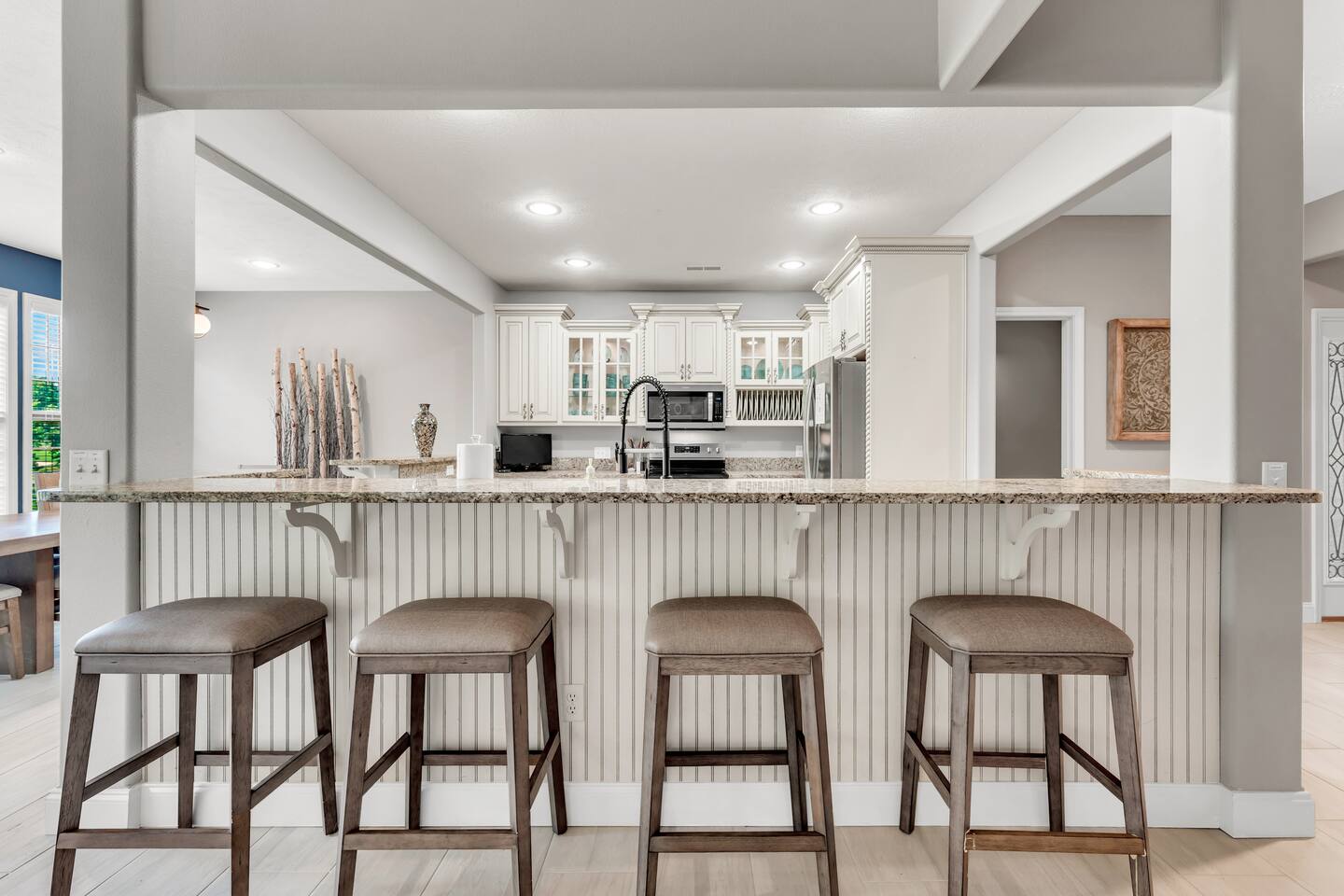 Luxurious NEW renovation, 4 bedroom, 4 bath home on the 13th green of Ledgestone golf course in the gated community of Stonebridge. Only a stone's throw away from Silver Dollar City! We have everything you need to make your Branson vacation perfect. Three swimming pools, 3 tennis courts, onsite restaurant-LedgeStone Grille, 3 playgrounds, sand volleyball, basketball court, paved walking path, a lake with fountain, banquet facilities, 24 hours gated security, and stocked, catch and release lake!