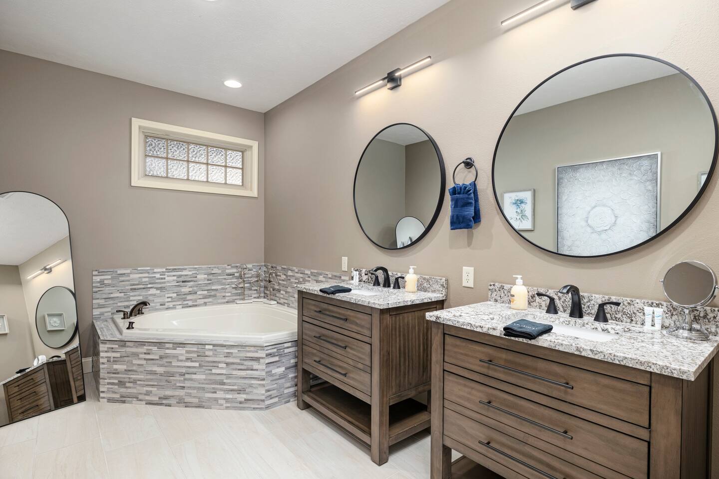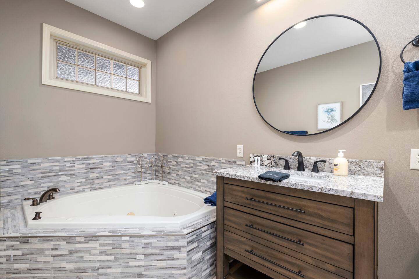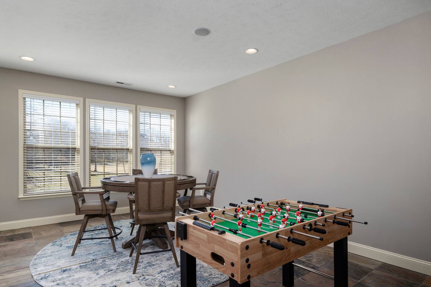 Sit back and relax in serenity when you rent this impeccable 4 bedroom 3 level vacation rental in picturesque Stonebridge Resort! Feel like royal company as you step into the front door of this residence and find everything you need for your perfectly posh vacation right at your fingertips. Mix up a meal fit for a king in the fantastic full-sized kitchen, or take a seat in one of two living areas. Take the time to stretch out and catch up on all your favorite shows on the huge flat screen TVs. And when you're ready to sit and plan all the fun activities you have ahead during your stay, take a moment and step out on the backyard patio or the screened balcony to let the fresh breeze stir your vacation imagination! This majestic base in the perfect place to return to after a long, fun-filled day in the Ozarks. No need to worry about dirtied clothes, it's just as easy as tossing them in your own private washer-dryer unit. Tension can really put a sore spot on a vacation, but it will melt away with ease after a quick dip in the elegantly designed master bathtub, complete with water jets. A perfect day turns into a perfect night when you curl up next to the fireplace and share all your memories of the day with your loved ones and the night rolls by. You may never want to leave once you see the game set up in the large three car garage. We have cornhole, darts, shuffleboard, basketball Pop a Shot, giant Jenga and a wall mounted Connect Four game.