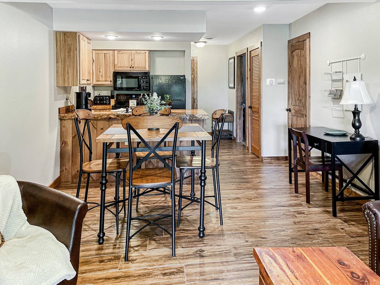 📝 Other Things to Note: There is a seasonal (unheated) outdoor pool available for guest use. Charcoal grills are conveniently located near the building and by the pool areas—perfect for a summer cookout! The trail to the private catch-and-release lake begins next to the right-side pool on Notch Lane. A basketball court is located at the end of Notch Lane, near the resort office. This is a self-catering property, so we provide starter supplies to get you going, including: Coffee, sugar, salt & pepper Toilet paper, hand soap, shampoo & conditioner Basic cleaning supplies If you need additional quantities, several grocery and convenience stores are located nearby for your convenience. We’ll send your full address and door code the day before check-in. Most property details can also be found right here in the listing or in the Airbnb app for easy reference.