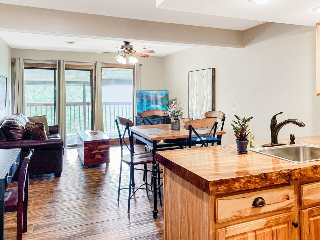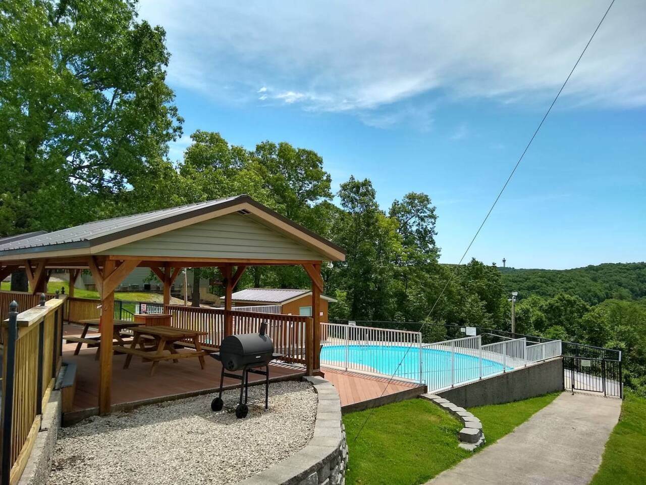 ✨ Updated 2BR/2BA Condo | Near Silver Dollar City | Pools | Fishing | Family Friendly! 📲 Follow us @branson_rentals 🏡 Managed by Branson Lakes Lodging – Local, Trusted & Friendly Relax, recharge, and make memories in the heart of the Ozarks! This beautifully updated 2-bedroom, 2-bath condo in Branson, Missouri is perfect for families, couples, and adventure-seekers. Just one mile from Silver Dollar City and minutes from Table Rock Lake, you’ll be close to all the best attractions—yet tucked away in a peaceful, wooded resort. 🏡 Condo Features: 🛏️ 2 Spacious Bedrooms & 2 Full Bathrooms 🍳 Fully Equipped Kitchen with full-size brand new appliances, including a coffee maker, toaster, crockpot, and more. No dishwasher. ☕ Complimentary coffee, sugar, and basic cooking essentials 📺 Three Flat Screen Smart TVs with cable, plus family board games & a fun kids’ tent 🚿 Fresh linens, towels, and essentials provided 📶 Free High-Speed WiFi & Cable TV 🌅 Private back deck with outdoor dining and serene views of the Ozark Hills 🅿️ Plenty of parking right in front + boat & trailer parking (rare in Branson condo resorts!) 🌟 Resort Amenities – Just a Short Walk Away: 🏊 2 Outdoor Pools (seasonal), including a zero-entry pool for little ones 🎣 Private Catch & Release Lake – free access, no fishing license required 🏀 Sports Court + Playground 🚶 Scenic Hiking Trails throughout the resort 🧺 Community Laundry Room with full-size washers & dryers 🗺️ Unbeatable Location: 🎢 1 Mile to Silver Dollar City – you can even hear the iconic train whistle from the deck! 🚤 5 Minutes to Table Rock Lake – great for boating, fishing, and water fun 🎭 10 Minutes to the Branson Strip – live shows, dining, shopping, and family attractions 🎯 Near marinas, golf courses, restaurants, and more! 🌳 Why Guests Love It: From the moment you arrive, you'll feel right at home. Whether you're sipping coffee on the back deck while listening to the birds, playing games with the kids, or exploring the trails and lake, this condo has something for everyone. It’s clean, cozy, well-stocked, and thoughtfully designed to help you unwind and enjoy all that Branson has to offer—without the crowds. 🐟 Please note: The walk back from the private fishing lake is steep, but the view is worth every step!