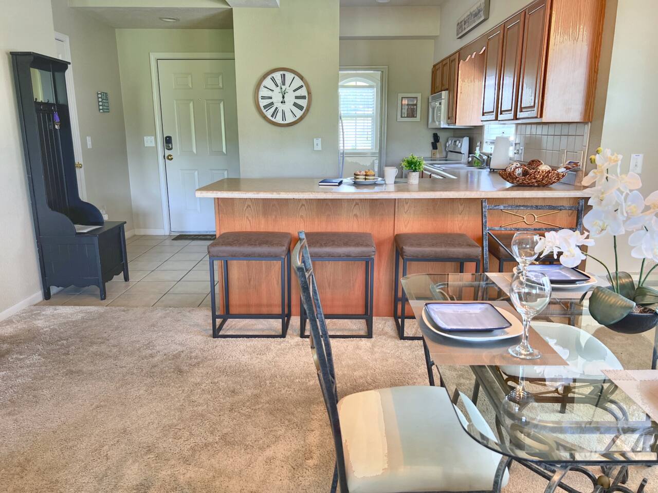 This is an open-concept space decorated with your comfort in mind. The condo has been completely updated and all of the comforts of home have been provided. All spaces are updated and linens are new. We work hard to ensure cleanliness and to provide our guests with everything they need to feel comfortable; quality towels and linens, a well-stocked kitchen, and a comfortable living space. We pride ourselves on going above and beyond your expectations to provide the little extras that you may not find at other vacation rental properties. We are dog-friendly and welcome your furry friend. The resort has a 50lb restriction on dogs and we must adhere to that guideline. There is a $75 pet fee per stay, just choose the pet option when booking and it will be added to your reservation. Please let us know about your dog when booking.