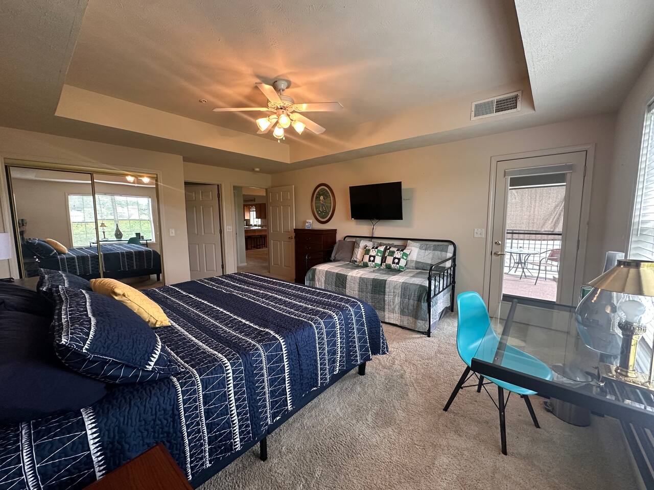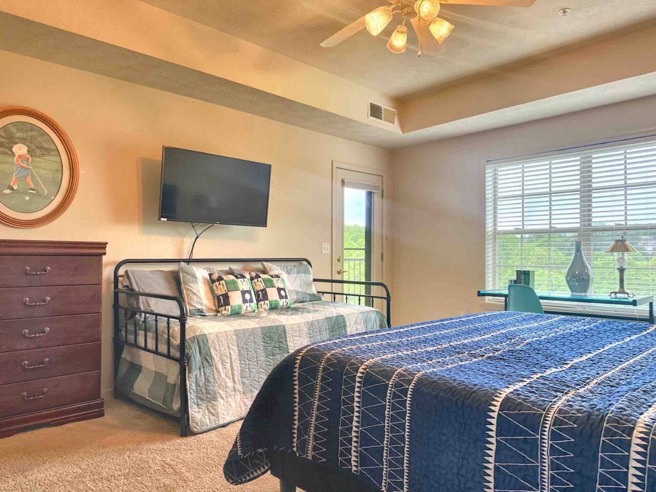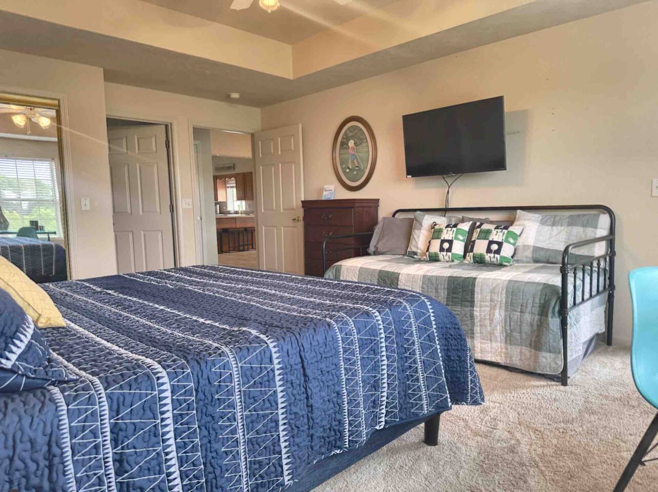 🏡 Top-Floor Condo in Stonebridge Resort | Near Silver Dollar City & Table Rock Lake Welcome to your perfect Branson getaway in the heart of Stonebridge Village Resort! This bright and spacious 2-bedroom, 2-bath condo offers peaceful golf course views, resort amenities, and everything you need for a comfortable and unforgettable stay. 🛏️ Sleeping Arrangements: Bedroom 1: King bed + twin trundle, work desk, private porch access, and an ensuite bath with deep jetted tub and double vanity Bedroom 2: Queen bed with attached full bath (tub/shower combo) 🌅 Why You’ll Love It: Top-floor unit with no neighbors above or on one side Covered patio with beautiful views of LedgeStone Golf Course Easy access – only one flight of stairs to the entrance Washer/dryer, high-speed WiFi, and a fully equipped kitchen 🎯 Stonebridge Resort Amenities: 3 Outdoor Pools (open Memorial Day – Labor Day) Tennis courts, playgrounds, basketball court Catch-and-release lake for family fishing Gated 24/7 security for peace of mind Onsite LedgeStone Grille and paved walking trails 🌟 Nearby Attractions: Just minutes to Silver Dollar City Close to Table Rock Lake, Moonshine Beach & Indian Point Marina Short drive to the Branson Strip with live shows, shopping, museums & go-karts