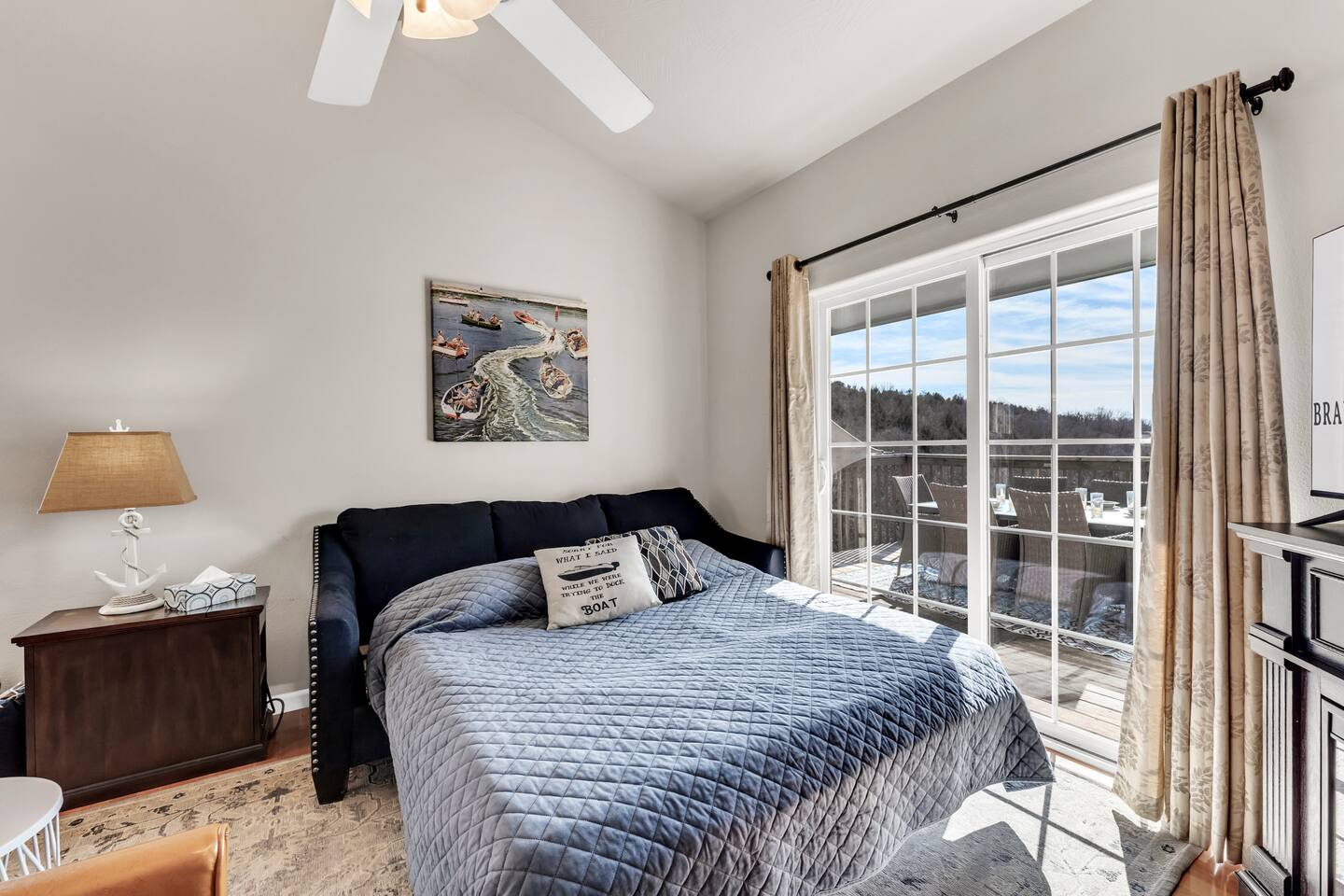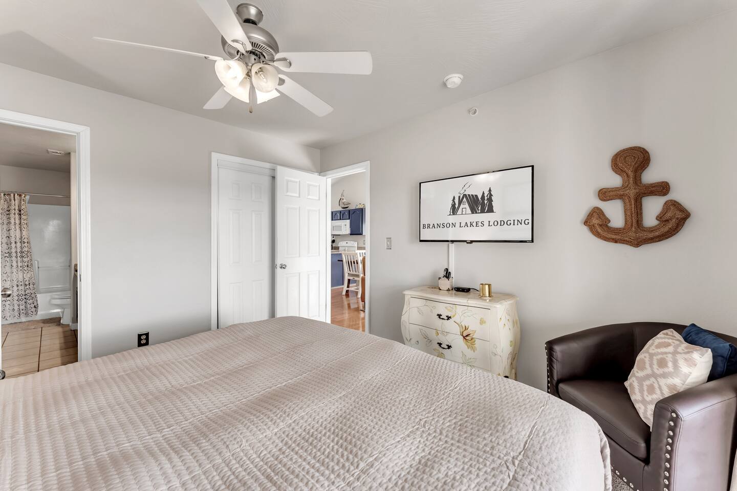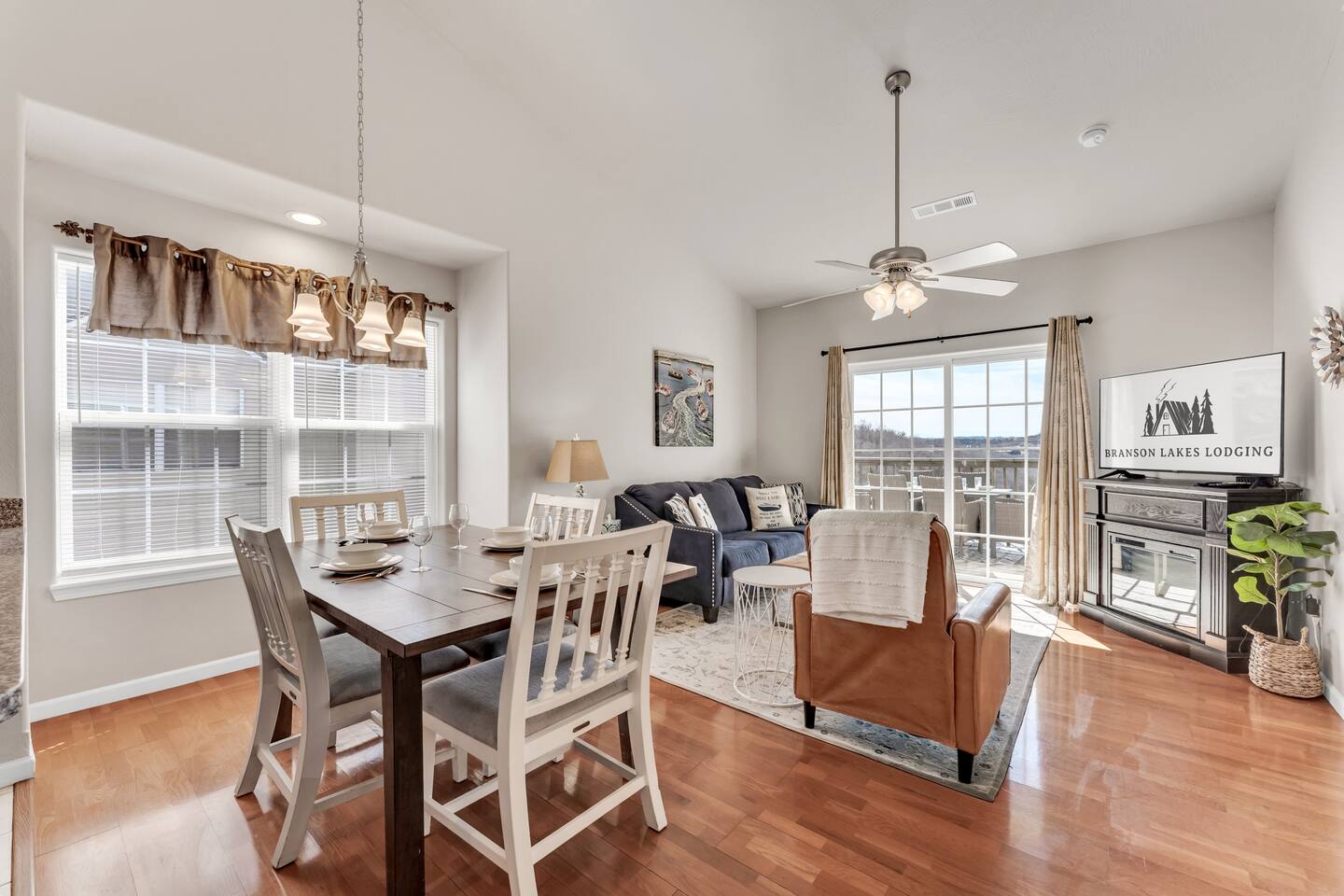 SDC Minutes Away | Lake Traveler Favorite | King Suite + Queen Bunks | Pool | Trail to Table Rock Lake Looking for the perfect Branson, MO lake getaway? Welcome to your Branson Lakes Lodging retreat — just minutes from Silver Dollar City, steps from Table Rock Lake, and designed with lake travelers and families in mind. Whether you're here for boating, shows, golf, or a relaxing Ozark escape, this beautifully updated 2BR/2BA condo checks every box. 🛏 Sleeping Arrangements – Brand New Beds & Linens We’ve just upgraded the sleeping experience! • Brand new King bed in the primary suite • Brand new Queen-over-Queen bunk bed (perfect for families or adult groups) • Pullout sofa with fresh new linens (best suited for kids) Everyone gets comfortable, quality bedding so you wake up refreshed and ready for a day on the lake. 🏡 Condo Highlights • 2 Bedrooms | 2 Full Bathrooms • Fully equipped kitchen (dishwasher, icemaker, flat-top stove, microwave, blender, coffee maker & more) • 3 Flat Screen HDTVs with cable + streaming • High-speed WiFi • Board games & family-friendly touches • Private washer & dryer • Vaulted ceilings (top-floor unit) • Just one easy flight of stairs to enter The decor features a warm lake-inspired style that feels cozy, clean, and welcoming — perfect for your Branson lake vacation. 📍 Prime Branson Location for Lake Travelers You’re in one of the most sought-after areas of Branson: • Minutes to Silver Dollar City • Close to Indian Point Marina & Table Rock Lake boat access • Short drive to the Branson Strip & shows • Easy access to Branson Landing shopping & dining • Near Ledgestone Golf Course Spend your mornings on the water and your evenings at a show — without long drives. 🌊 Resort-Style Amenities Just steps from the condo: • Outdoor swimming pool • Playground • Pickleball & tennis courts • Shared charcoal grills & picnic area • Natural walking trail with lake access It’s ideal for families, couples, or lake groups wanting space and fun without leaving the property. 🐾 Dog Friendly We welcome small dogs (up to 50 lbs) with a $75 per-pet fee — because lake trips are better when the whole family comes along. Perfect For: • Branson lake vacations • Silver Dollar City trips • Family reunions • Golf weekends • Fishing getaways • Fall foliage trips to the Ozarks Discover why guests love staying with Branson Lakes Lodging. Clean, comfortable, and professionally managed — with local support if you need us. Book your Branson lake escape today and follow us for updates and special offers: @Branson_rentals
