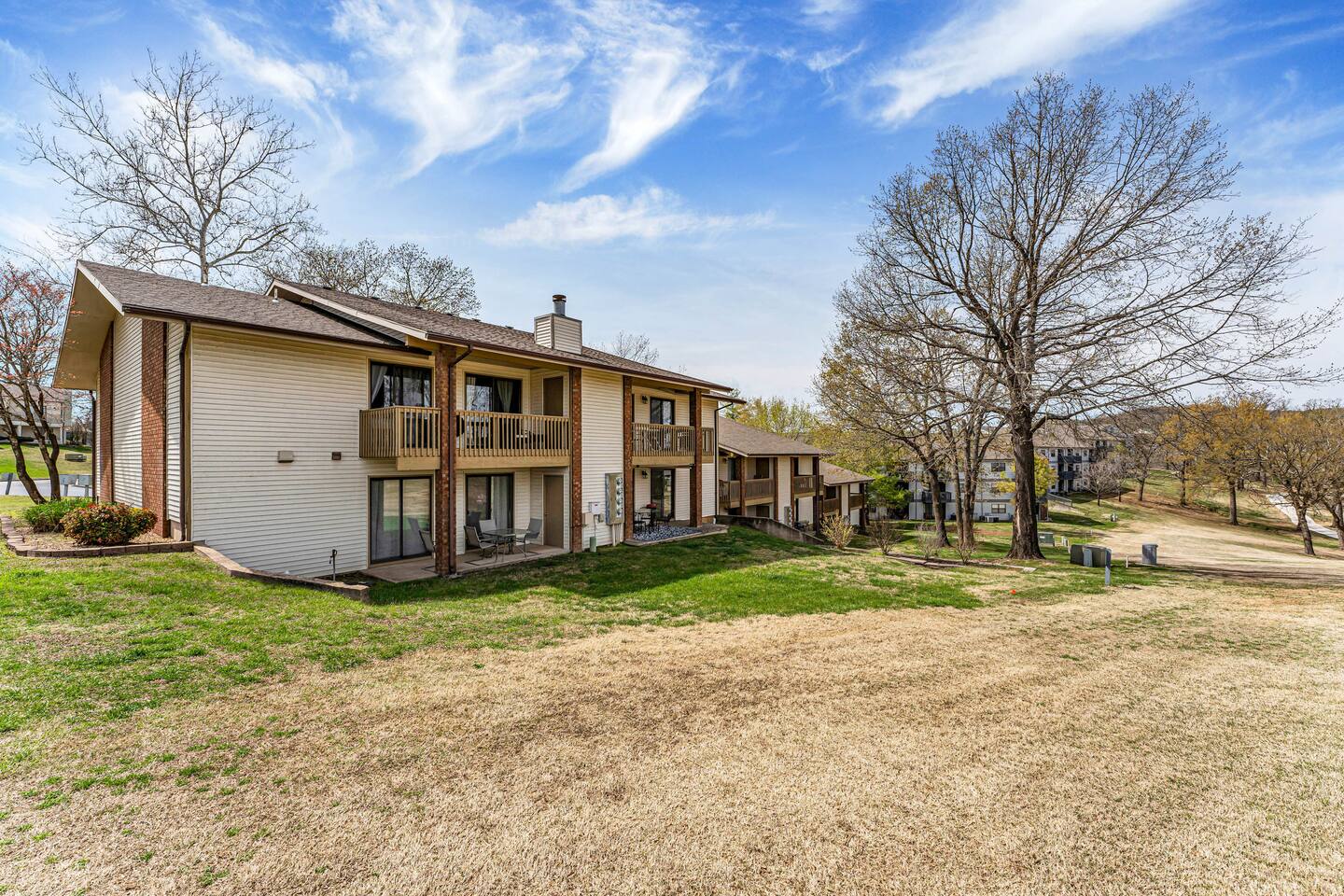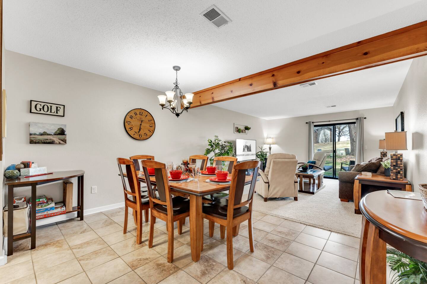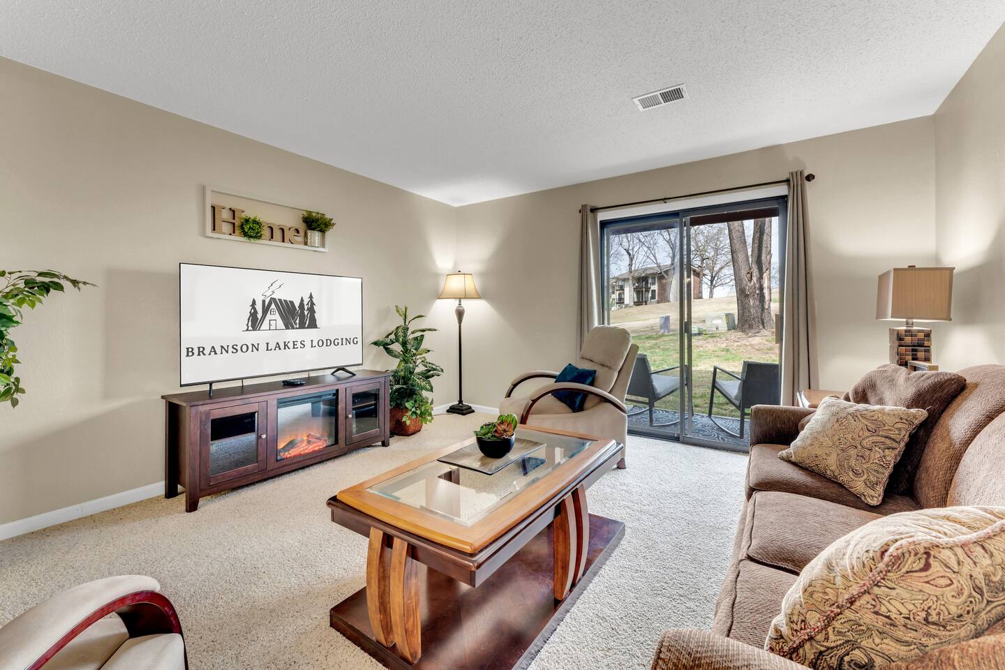 Book with us and stay at our updated walk-in condo (only three steps total along the walkway) in the wonderful gated resort community of Pointe Royale. It will be a hit for your next vacation! We provide all of the comforts of home so you can relax and unwind after a fun-filled day in Branson. Relax with a cup of morning coffee on your back porch and enjoy the golf course views. An outfitted kitchen, Laundry, Wi-Fi, cable, Smart TVs, and games are waiting to make you feel right at home during your stay. The condo features two bedrooms; one with a king bed, and the second has a queen bed. There is also a lazy boy sofa sleeper and bedding (best suited for children or one adult). CONDO FEATURES * 2 bedroom/2 bathroom * A fully equipped kitchen * Keurig, coffee and sugar * Three Flat Screen HDTV's, board games * Cable TV and High Speed Internet with WIFI * Porch dining and an Electric Grill * Private full-size washer and dryer * Great location in the 'Heart of Branson' and close to shows and attractions 🏖️ Resort Amenities – A Short Walk from the Condo 🎾 Sports Courts 🛝 Playground and Dog Parks 🏊♂️ Heated Indoor Pool (Year-Round) & Outdoor Pools 🛁 Hot Tub/Jacuzzi (Year-Round) 🏋️ Fitness Center 🎣 Resort Park on Lake Taneycomo with Easy Fishing Access 🍽️ Clubhouse with Restaurant & Bar 🍹 Seasonal Poolside Tiki Bar Guests can use the indoor and outdoor pools, hot tub, fitness center, basketball/tennis courts, and a nice park area that has charcoal grills with picnic tables, a playground, and gentle lakeside access to Lake Taneycomo for fishing. The hot tub and heated indoor pool are open year-round. We do accept dogs under 50 pounds as long as they stay off of furniture and you let us know you are bringing them when booking. We charge a $75 pet fee per stay. You will have access to all of the wonderful Pointe Royale Resort amenities, including the beautiful outdoor pool, year-round indoor heated pool, hot tub, tennis and basketball courts, golf, a restaurant and banquet hall, playground, Lake Taneycomo shoreline access for fishing, and walking paths on the beautifully maintained grounds! The condo is located on the 10th Green, across from the Clubhouse and resort amenities. This fun and beautiful community has a 24-hour guardhouse for entry and exit. We provide a pack-n-play, high chair, kids play tent, and some toys and books to make your stay easy! We work hard to ensure cleanliness and to provide our guests with everything they need to feel comfortable: quality towels and linens, a well-stocked kitchen, and a comfortable living space. We pride ourselves on exceeding your expectations to provide the little extras you may not find at other vacation rental properties. Socials: @Branson_rentals Branson Lakes Lodging