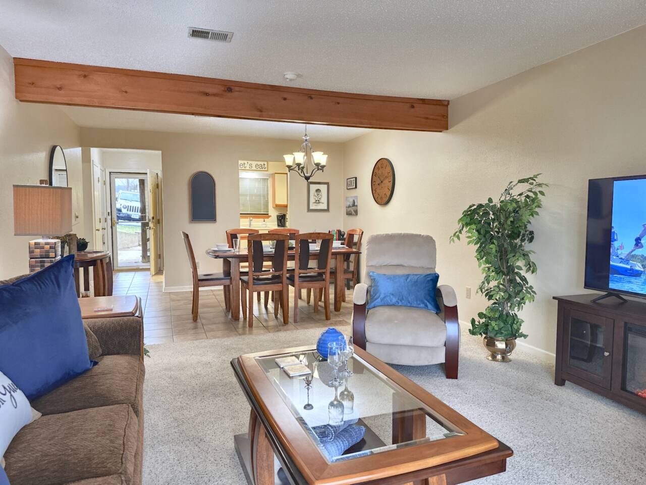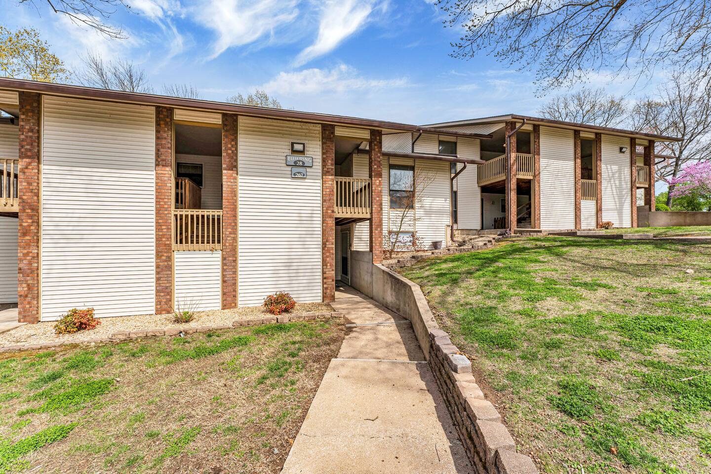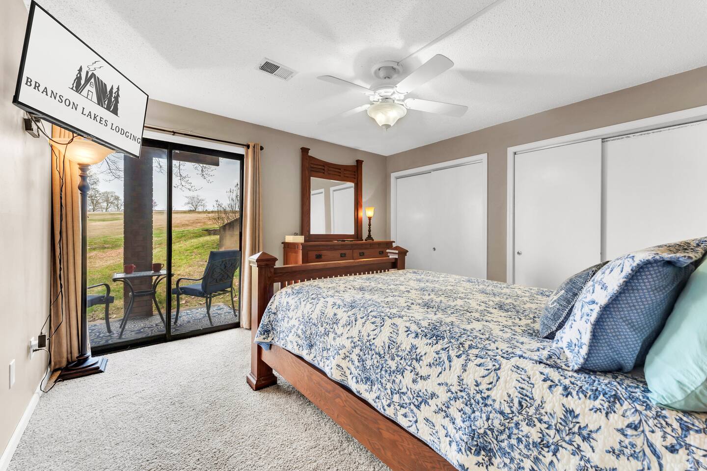 Book with us and stay at our updated walk-in condo (only three steps total along the walkway) in the wonderful gated resort community of Pointe Royale. It will be a hit for your next vacation! We provide all of the comforts of home so you can relax and unwind after a fun-filled day in Branson. Relax with a cup of morning coffee on your back porch and enjoy the golf course views. An outfitted kitchen, Laundry, Wi-Fi, cable, Smart TVs, and games are waiting to make you feel right at home during your stay. The condo features two bedrooms; one with a king bed, and the second has a queen bed. There is also a lazy boy sofa sleeper and bedding (best suited for children or one adult). CONDO FEATURES * 2 bedroom/2 bathroom * A fully equipped kitchen * Keurig, coffee and sugar * Three Flat Screen HDTV's, board games * Cable TV and High Speed Internet with WIFI * Porch dining and an Electric Grill * Private full-size washer and dryer * Great location in the 'Heart of Branson' and close to shows and attractions 🏖️ Resort Amenities – A Short Walk from the Condo 🎾 Sports Courts 🛝 Playground and Dog Parks 🏊♂️ Heated Indoor Pool (Year-Round) & Outdoor Pools 🛁 Hot Tub/Jacuzzi (Year-Round) 🏋️ Fitness Center 🎣 Resort Park on Lake Taneycomo with Easy Fishing Access 🍽️ Clubhouse with Restaurant & Bar 🍹 Seasonal Poolside Tiki Bar Guests can use the indoor and outdoor pools, hot tub, fitness center, basketball/tennis courts, and a nice park area that has charcoal grills with picnic tables, a playground, and gentle lakeside access to Lake Taneycomo for fishing. The hot tub and heated indoor pool are open year-round. We do accept dogs under 50 pounds as long as they stay off of furniture and you let us know you are bringing them when booking. We charge a $75 pet fee per stay. You will have access to all of the wonderful Pointe Royale Resort amenities, including the beautiful outdoor pool, year-round indoor heated pool, hot tub, tennis and basketball courts, golf, a restaurant and banquet hall, playground, Lake Taneycomo shoreline access for fishing, and walking paths on the beautifully maintained grounds! The condo is located on the 10th Green, across from the Clubhouse and resort amenities. This fun and beautiful community has a 24-hour guardhouse for entry and exit. We provide a pack-n-play, high chair, kids play tent, and some toys and books to make your stay easy! We work hard to ensure cleanliness and to provide our guests with everything they need to feel comfortable: quality towels and linens, a well-stocked kitchen, and a comfortable living space. We pride ourselves on exceeding your expectations to provide the little extras you may not find at other vacation rental properties. Socials: @Branson_rentals Branson Lakes Lodging
