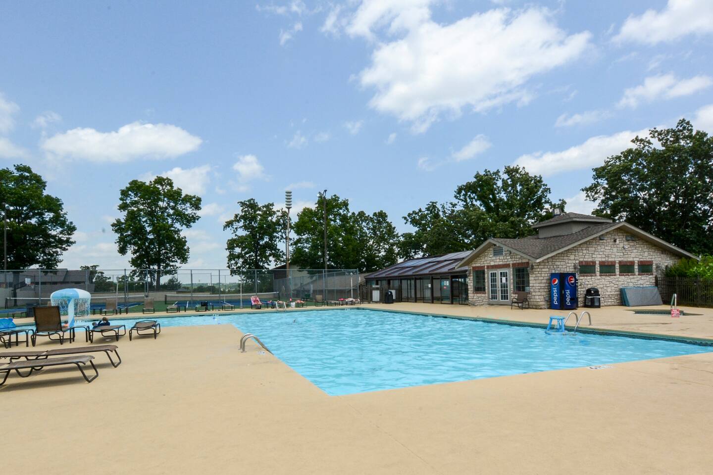 Tucked into serene Pointe Royale Golf Village, this two bed, two bath condo comfortably sleeps 6. Pointe Royale offers both an indoor and outdoor pool, hot tub, fitness center, tennis, pickle ball and a championship golf course. The location is convenient to Silver Dollar City , Hwy 76, Table Rock Lake, Lake Taneycomo, hiking and much more! Exploring the natural beauty of the Ozarks is just moments away. The Shepherd of the Hills Trout Hatchery located just to our west has a nature trail along Lake Taneycomo and The Dewey Short Visitors Information Center at Table Rock Dam begins another adventure along the shores of Table Rock Lake. Enjoy a heated indoor pool, two outdoor pools, a hot tub, and a kiddie pool, with patio areas for swimming and relaxing while getting that tan. Outdoor pools are open from Memorial Day through Labor Day Weekends. The indoor pool is open year round. There are two lighted tennis courts next to the clubhouse and main pool area. Equipment rental is available at the front desk. Rainbow and Brown Trout can be landed with artificial lures at the lakeside park on Lake Taneycomo. Pointe Royale is located on the trophy fishing area of the upper end of the lake near Table Rock Dam. For bait fishing, you can go to Branson’s public docks, where you may also rent a boat.