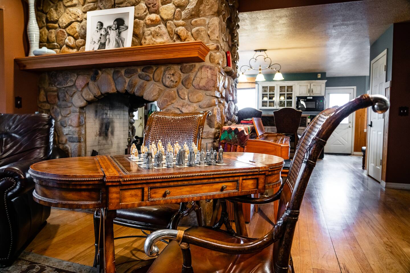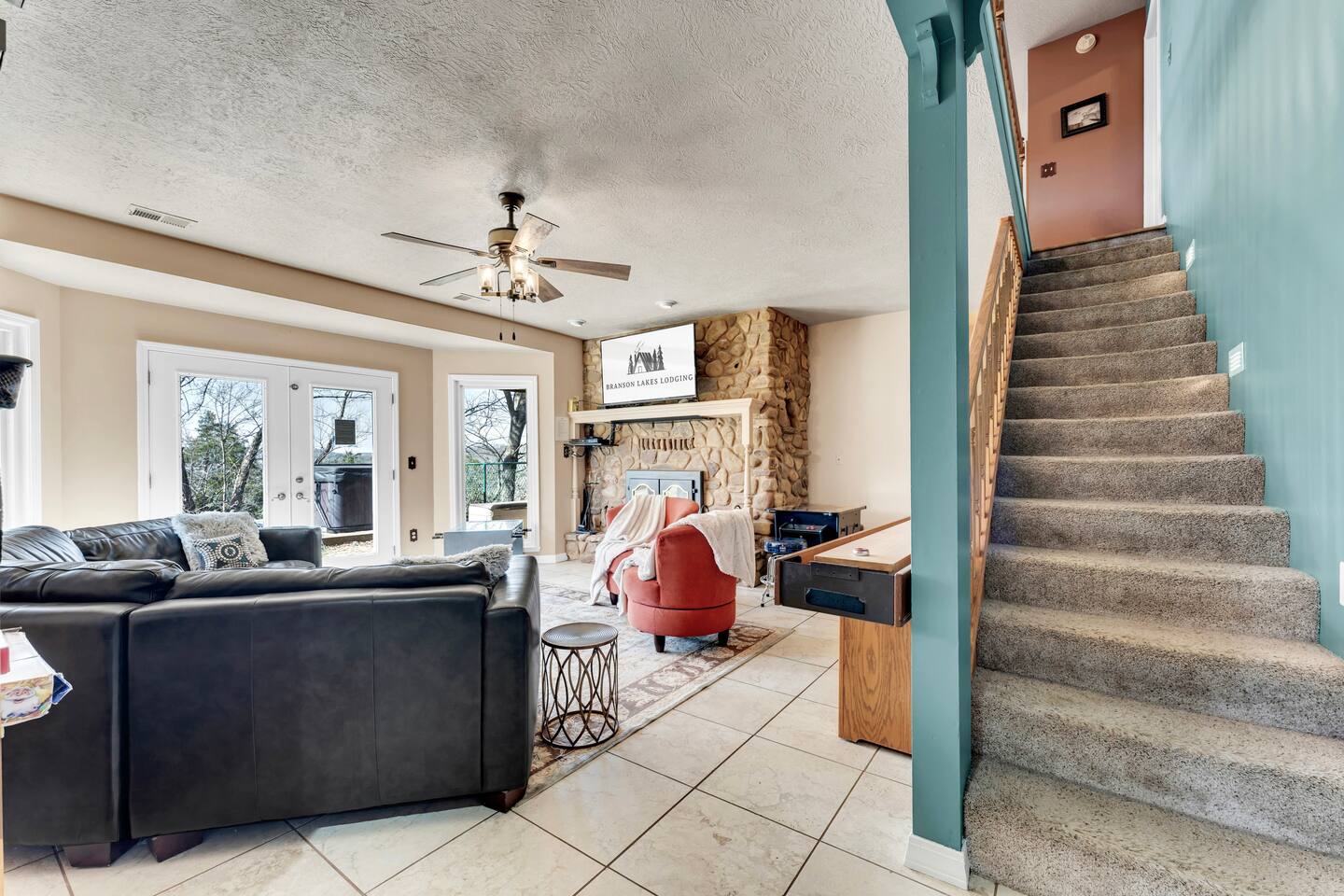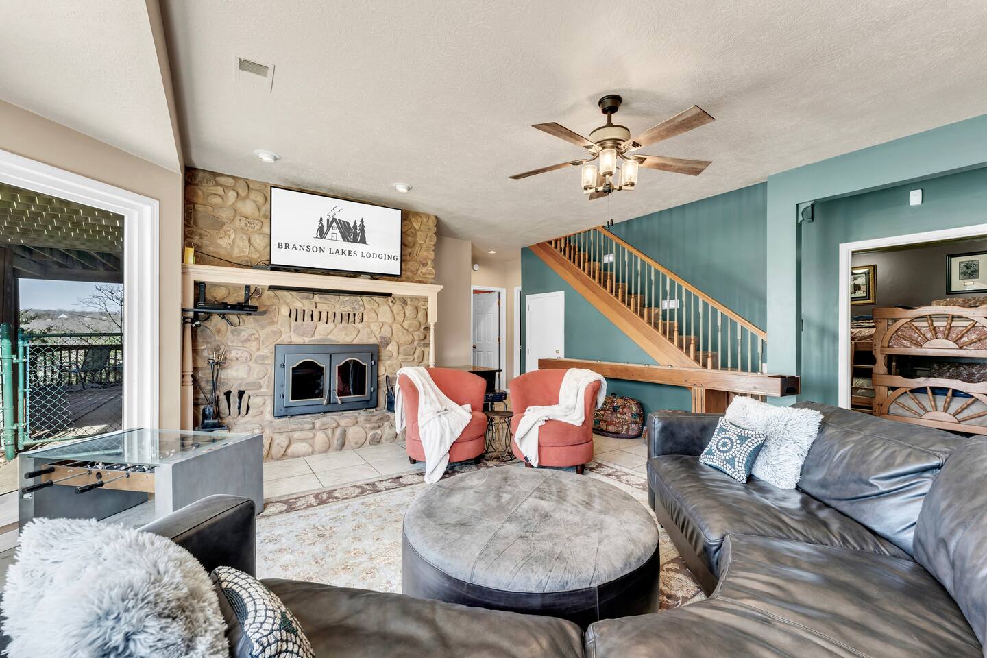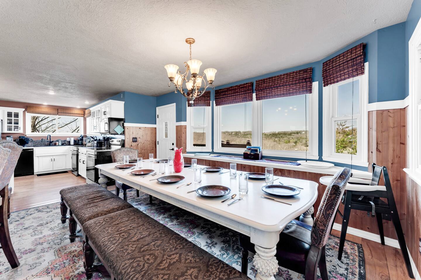 Rivendell Retreat – Your Private Getaway in Branson, MO 🏡✨ Welcome to Rivendell, a peaceful retreat perched on a bluff overlooking Lake Taneycomo. Perfect for family reunions, staff retreats, golf trips, prayer retreats, or simply escaping the hustle, this serene home offers the privacy and comfort you’re looking for in Branson, MO. Wake-up in your comfy bedroom (each one has a different theme!) to watch the deer in the morning. Warm-up to winter seated fireside by the Lord of the Rings chess set. Take a nature hike with loved ones. Enjoy laughter with family and friends around a grand dining table, over a game of shuffleboard, table bowling, foosball, arcade games, or with the Wii. Why Choose Rivendell? Space & Privacy: 🌲 Nestled on 8+ wooded acres with Lake Taneycomo on one side and trees on the other three, Rivendell provides complete seclusion with no neighbors or traffic—just peace and nature. 🦌 Ideal Location: 📍 While tucked away, Rivendell is just 3.5 miles from Hwy 76, 6 miles from Branson Landing, and minutes from top attractions. 🎢 Family-Friendly Fun: 🎮 Enjoy indoor and outdoor games like shuffleboard, foosball, arcade classics, and table bowling. Explore private hiking trails, roast marshmallows at the firepit, and relax in the 8-person hot tub. 🔥🛁 Sleeping Arrangements 🛏️ Our spacious retreat comfortably accommodates groups with uniquely themed bedrooms: Gentle Whisper: 💤 1 King Bed For those who love sleeping in, this lavender and silver windowless room features a lavish king bed with Simmons world class pillow-top mattress, the art of Gavyn Sky, a luscious reading chair and glass-top desk, and private bathroom. Green Pastures: 🌾 Bunk Room A tiny 4-bed bunkroom for children and teens with a golfing theme in honor of Alicia’s daddy, this room is normally used for retreats that overflow the other six bedrooms. Living Waters: 💧 1 King bed This earthy room features a king bed with Simmons world class pillow-top mattress, a chair worthy of your favorite read, a Narnian wardrobe, a half-circle writing desk, a private full bathroom, and a view of the woods. New Creation: ✨ 1 Queen Bed An inspiring room of salmon and crème, New Creation features an ornate queen bed with a Simmons world-class mattress, a purple-chocolate velvet chaise, and a spacious leather-topped writing desk. A full bathroom is just outside the door in the hallway. New Creation is our only bedroom with a private deck overlooking the lake. Restoration: 🕊️ 1 King Bed and 2 Twin Beds Rivendell’s Master Suite features a king carved sleigh bed drenched in chocolate and teal with a memory-foam mattress, private sunroom and deck, view of the woods, ornate French writing desk, reading chaise, TV, Jacuzzi tub, and infrared sauna in the private bathroom. The Scroll: 📜 1 Queen Bed This dramatic room was designed by an author to inspire writers. The Scroll features first floor wheel-chair accessibility, a private bathroom with double-shower heads, poster queen bed with Simmon’s world class firm mattress, and a hand-painted writing desk. Eagles Watch: 1 King Bed Old World charm marks this lake-view room which features an comfortable king bed, a leather chaise, a hand-painted writing desk, a close-to-guaranteed sighting of eagles flying over the tree tops, and a private bathroom (shower only). This room is wrapped in rich browns, warm golds, and blacks. Additional Sleeping Options: 🛋️ Sleeper Sofa, 2 twin inflatable mattresses, and 2 pack n plays for infants Bathrooms 🚿 With six thoughtfully designed bathrooms, your group will have plenty of space to get ready: Master Bathroom: 🛁 Jetted bathtub, shower, and toilet Main Level Bathroom: 🚿 Shower and toilet Hall Bathroom: 🛀 Bathtub/shower combo and toilet Bathroom 4: 🛀 Bathtub/shower combo and toilet Bathroom 5: 🚿 Shower only and toilet Bathroom 6: 🚿 Shower only and toilet Perfect for Every Occasion 🎉 Family Reunions Staff Retreats 🖥️ Girls’ Getaways 💃 Golf Trips ⛳ Nature Lovers 🌳 Fishing Enthusiasts 🎣 Activities to Enjoy 🎲 Hike down to our private dock for trout fishing on Lake Taneycomo. 🐟 Gather around the firepit for s’mores and stories. 🍫🔥 Grill on the deck while soaking in panoramic lake views. 🌅 Unwind in the sauna or relax in the 8-person hot tub after a day of adventure. 🧖♂️🛁 Hang out in the outdoor hammock lounge—perfect for relaxation and reflection. 🌌 A Home for All Seasons 🌞❄️ Start your day with deer sightings from the deck. Cozy up by the fireplace during winter evenings. Watch stunning sunsets over the lake. Every detail at Rivendell is designed to help you relax, recharge, and reconnect. 💖 Welcome to your hidden gem in Branson, MO. At Rivendell, lasting memories and peaceful moments are waiting for you. 🏞️