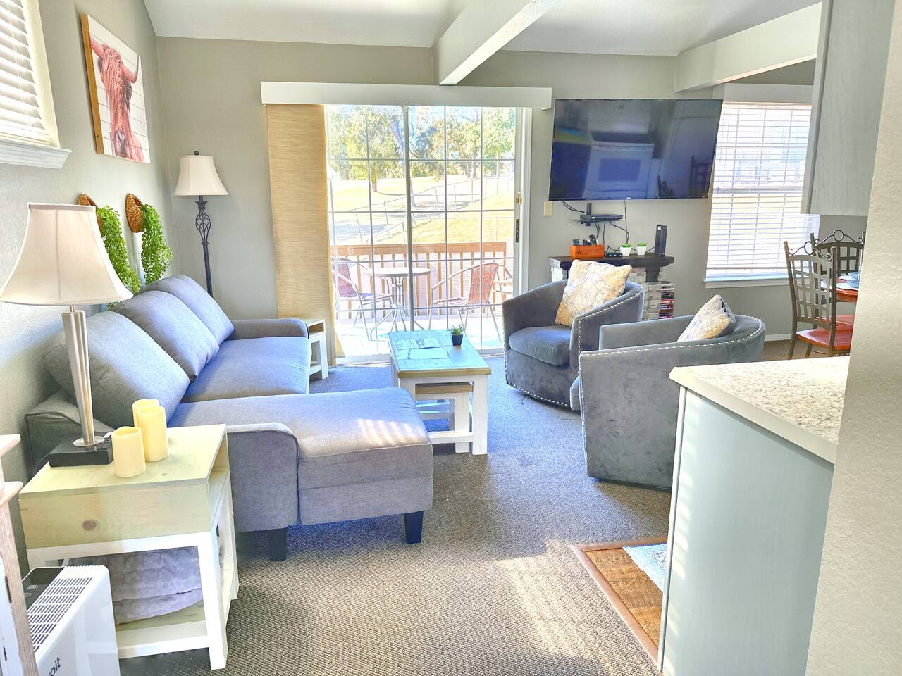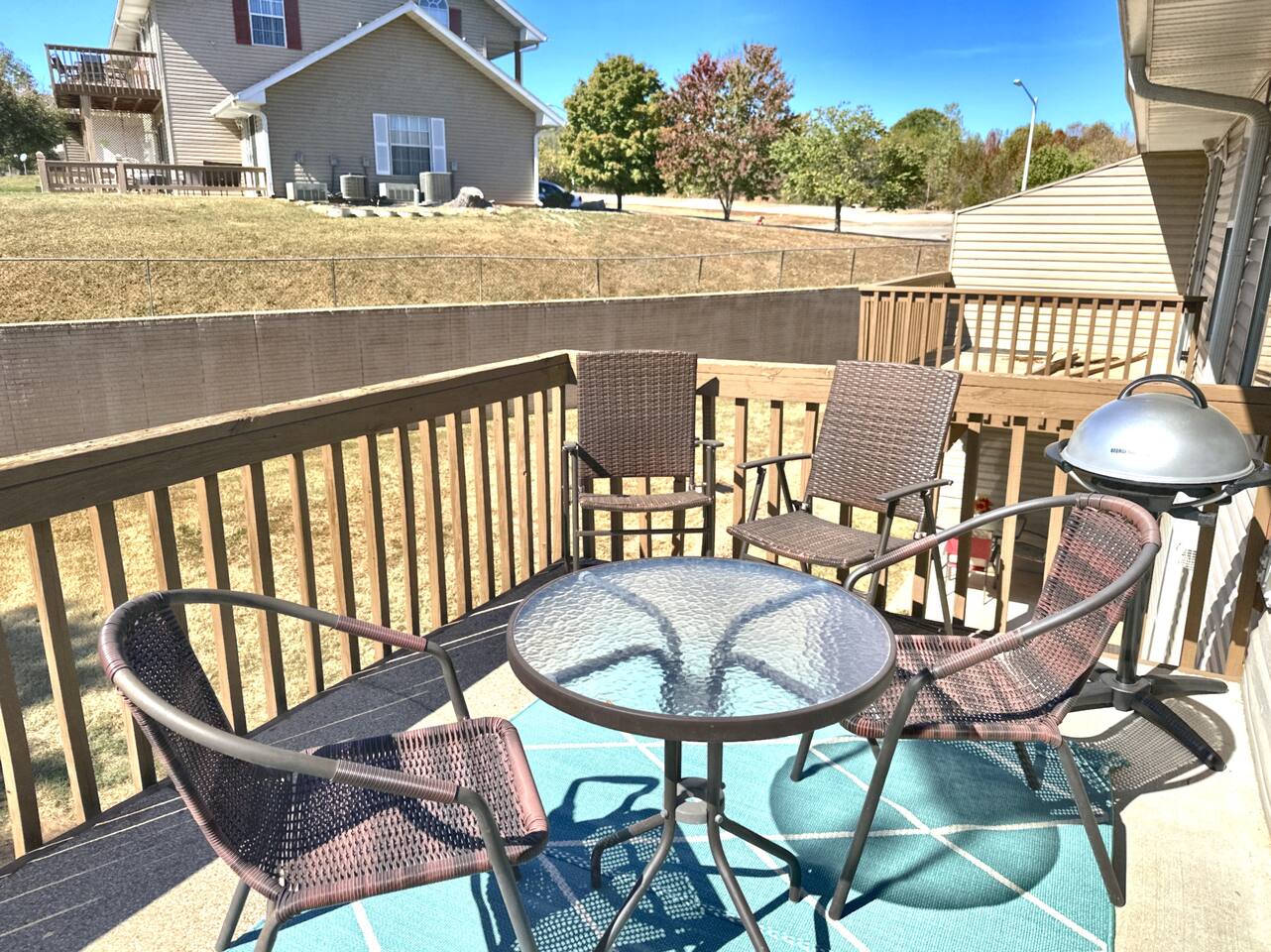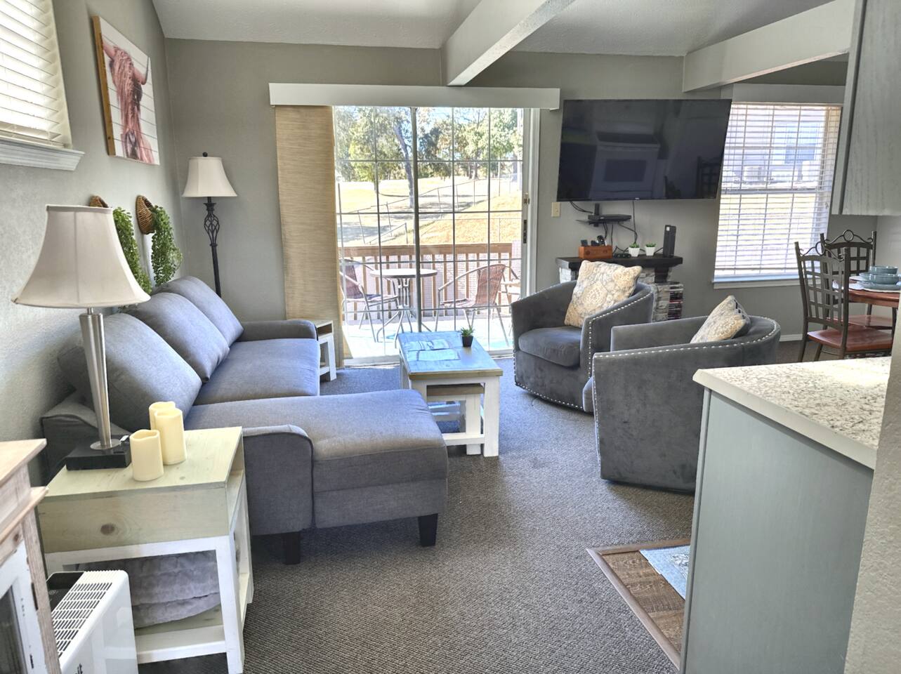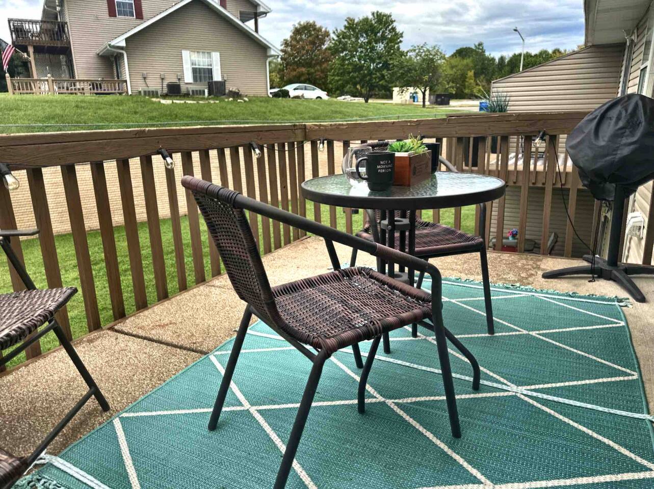 A car is a must when visiting Branson, and there is ample parking in front of the condo. You have full use of the entire condo and private patio. There are shared bbq grills in the complex to which you have full access. Enjoy the grounds with morning walks - the road ends at the beautiful Fall Creek Marina open to the public, and offers boat rentals, fishing pole rentals, and a fantastic deck overlooking Lake Taneycomo.