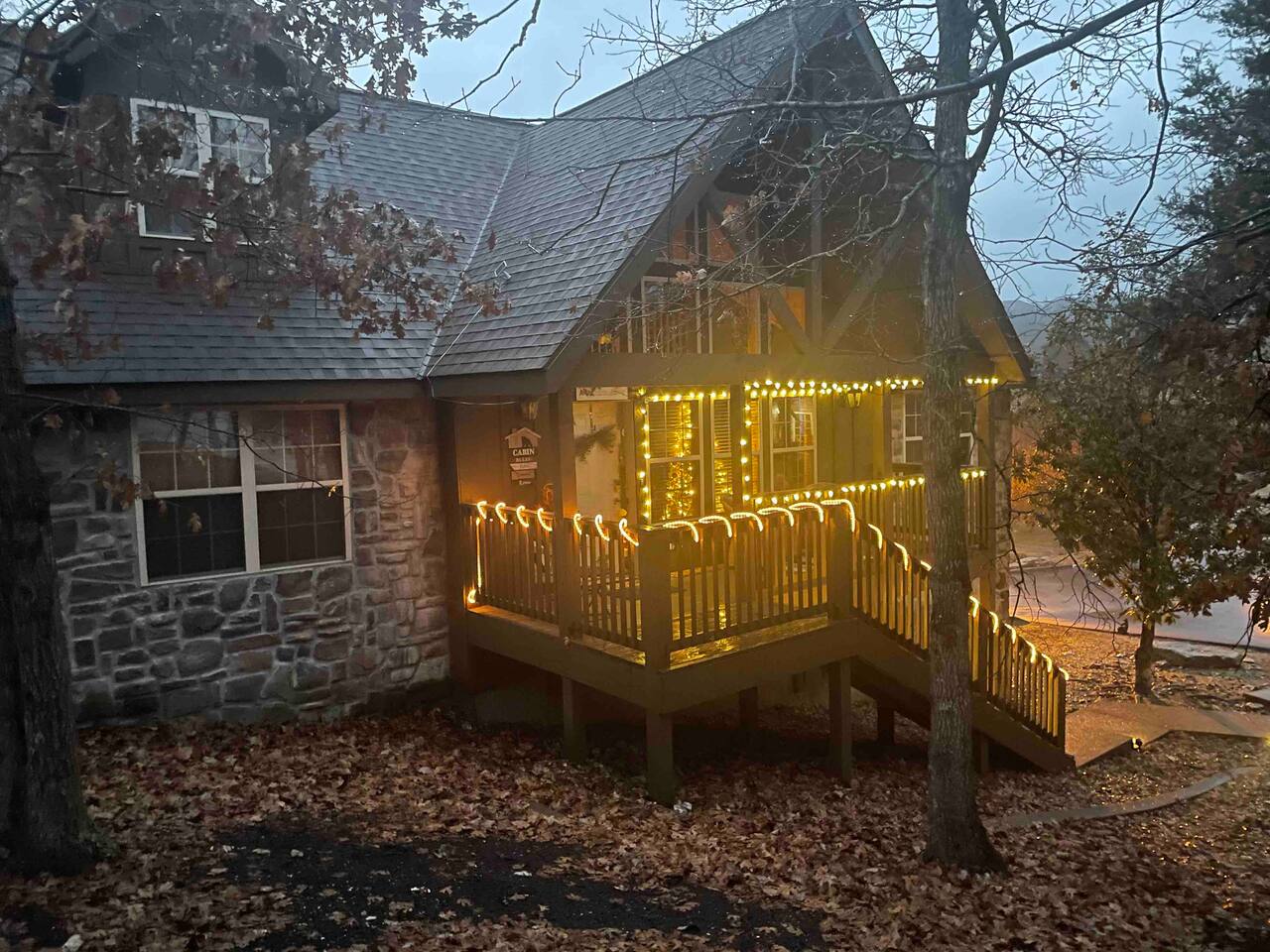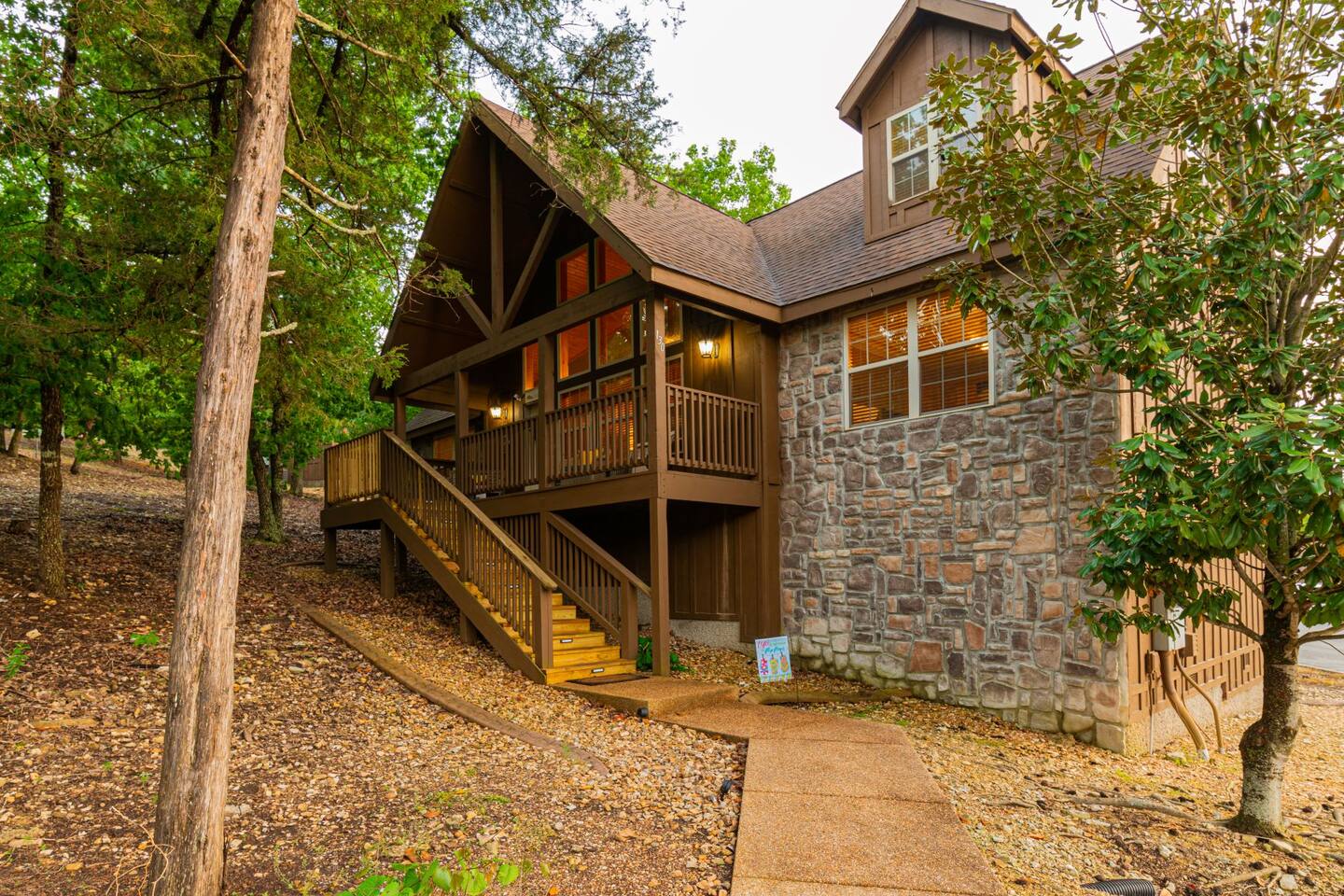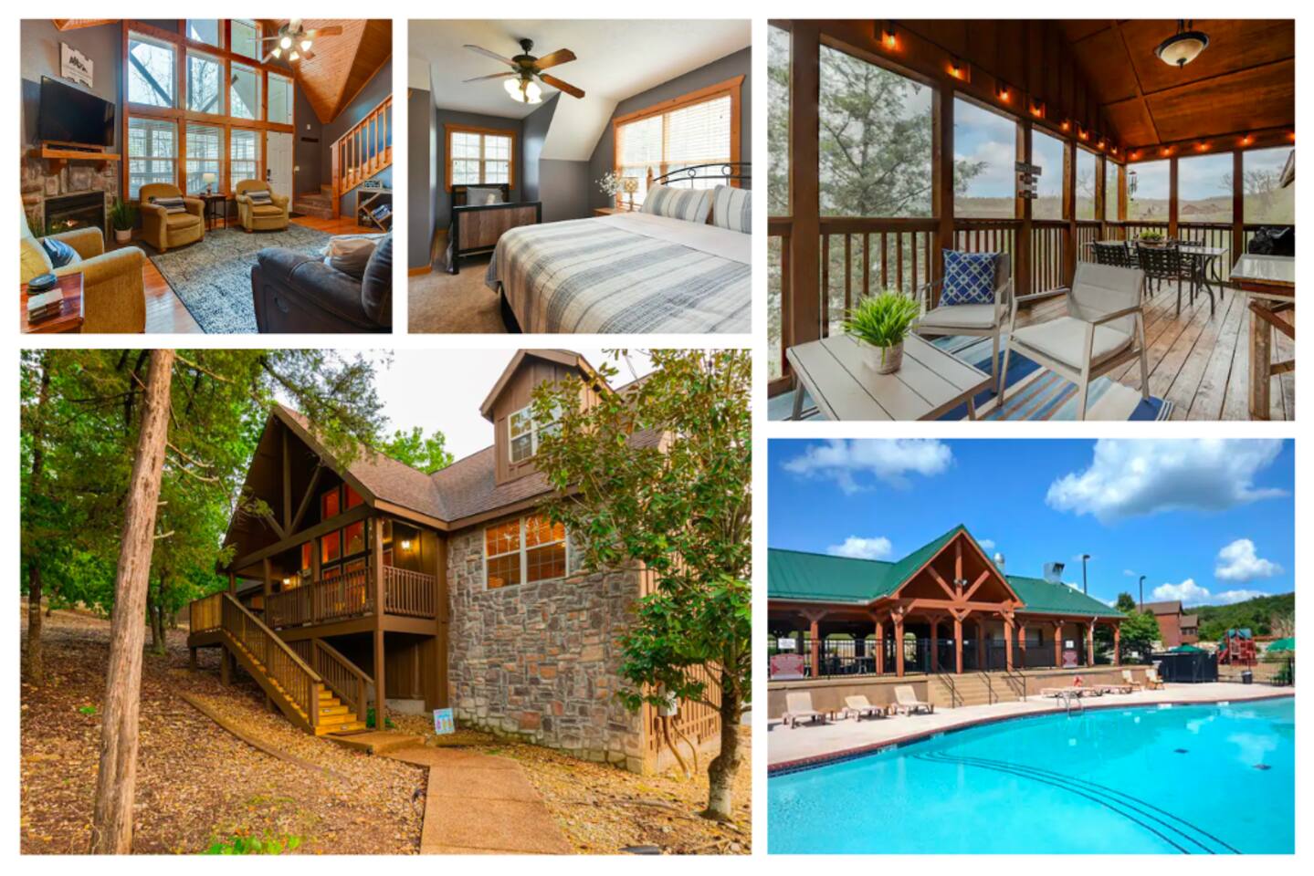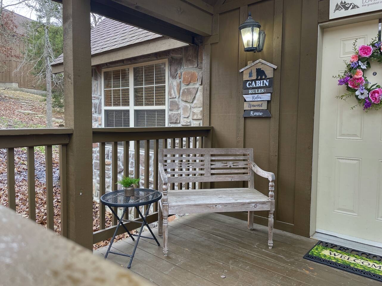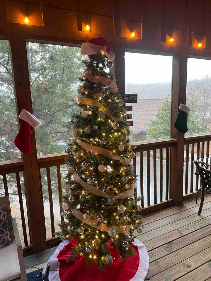 Enjoy the serenity of nature in this beautiful and spacious lodge in the heart of StoneBridge Village in Branson. Experience the best of both worlds - close to Branson, yet in a secluded and gated neighborhood. You will have access to the LedgeStone Golf Course, 3 outdoor pools, playgrounds, sand volleyball, basketball, tennis, and more. This lodge is only a short walk (2-3 minutes) to the Fox Hollow Lake and family-friendly pool with an easy walk-in slope, covered dining areas, basketball, volleyball court, and playground. You will also find a fabulous catch and release lake and walking trail next to the pool and within sight of this cabin. Enjoy the stone fireplace for a cozy evening in, the well-appointed kitchen for preparing meals after a busy day of golf or fun at nearby Silver Dollar City, and sleep well at night in the comfortable king beds. The lodge has free high speed wi-fi and cable tv in each bedroom. The screened and heated patio will be a hit for the whole family and is a great place to have a meal, enjoy that early morning cup of coffee while you watch the wildlife. Wildlife not your game? Catch the action on the 50” streaming tv! The kitchen is well stocked with all of the essentials and extras you would enjoy at home. A drip coffee pot, coffee bean grinder and a Keurig with enough coffee to get your trip started are all provided. There are beautiful views of the trees and changing seasons from the porch and lodge. We also provide an electric grill for your use and there are charcoal grills available throughout the StoneBridge property. We have worked hard to provide everything you need to make your Branson vacation perfect. All new (March 2022) bedding, towels, and linens are provided. There is so much to do while on property - three outdoor swimming pools (open Memorial Day through Labor Day), 3 tennis courts, onsite restaurant-LedgeStone Grille, 3 playgrounds, sand volleyball, basketball court, paved walking path, a lake with fountain, banquet facilities, 24 hours gated security, and a stocked, catch and release lake! We are located about 5 minutes from the famous Branson Strip so that you have quick and easy access to all of the shows, family entertainment (The Track go-karts, mini-golf, Titanic, Wonderworks, Ripleys, and so much more!), outlet mall and restaurants. We are three miles from Moonshine Beach, where you can play on a sandy beach next to Table Rock Lake. State Park Marina and Indian Point Marina are only 5 miles away - launch your boat or rent one and enjoy our beautiful lake. We allow up to two dogs under 40lbs - there is an additional $75 pet cleaning fee per stay. This is a NON SMOKING unit. We do not allow smoking in the home or on the porches. *The Stonebridge Village Welcome center charges a $5 per vehicle, per night resort fee. This fee is payable directly to the Stonebridge Village Welcome Center at the time of entry.