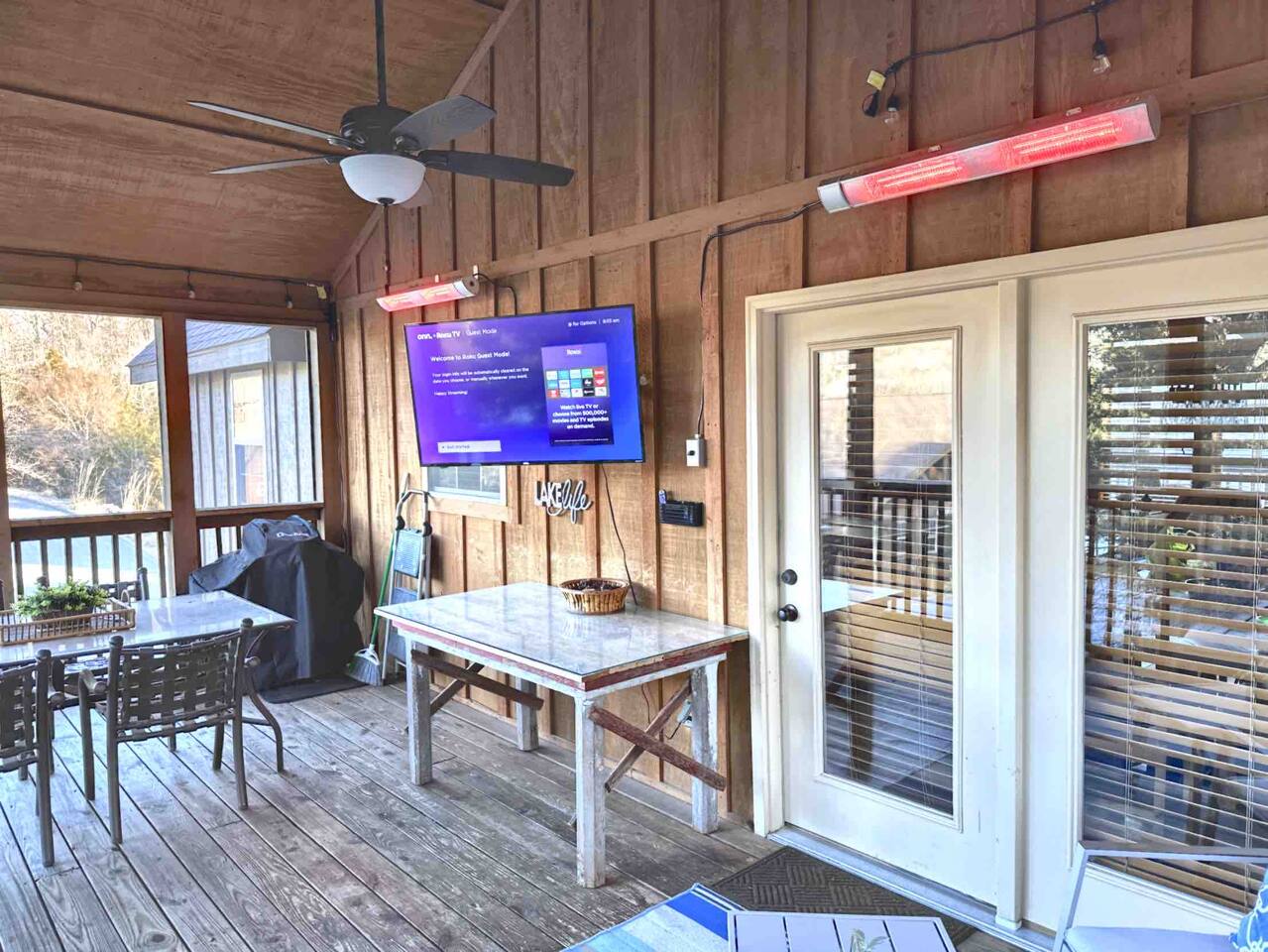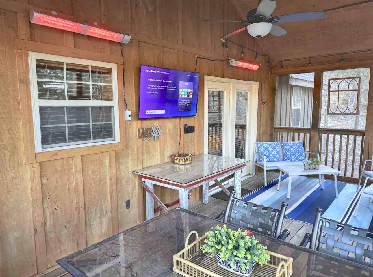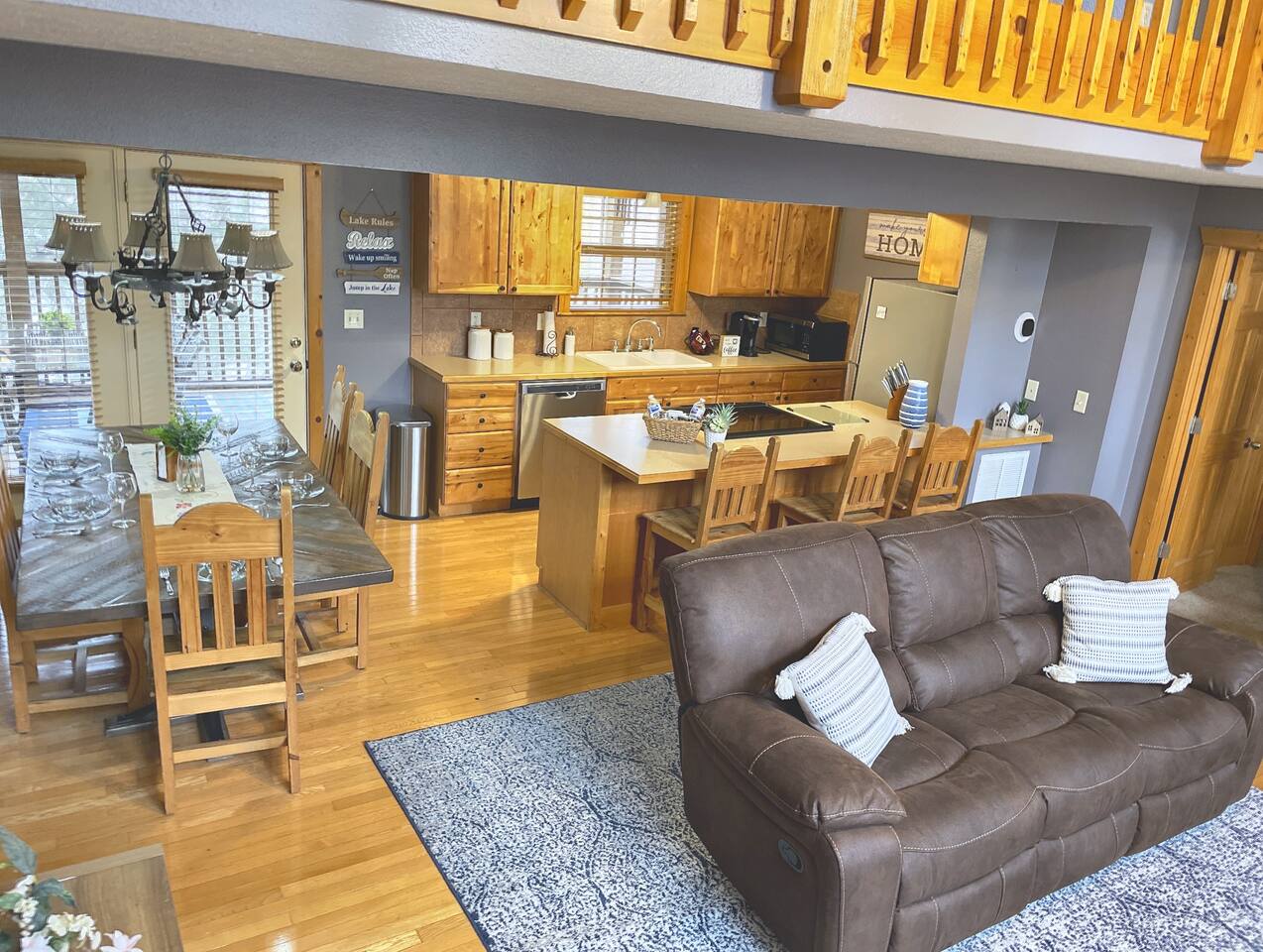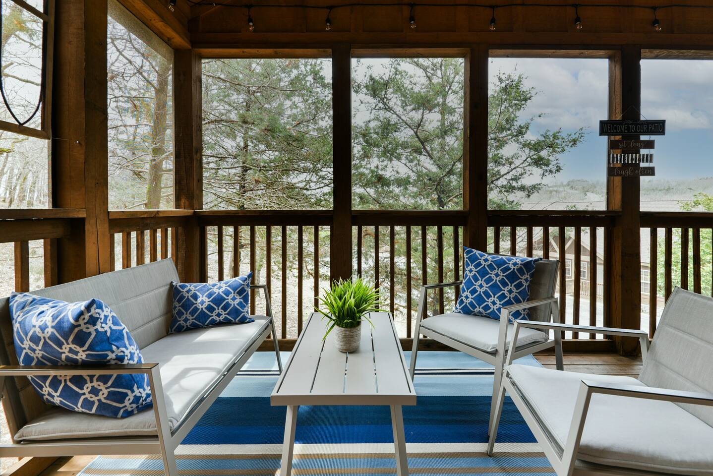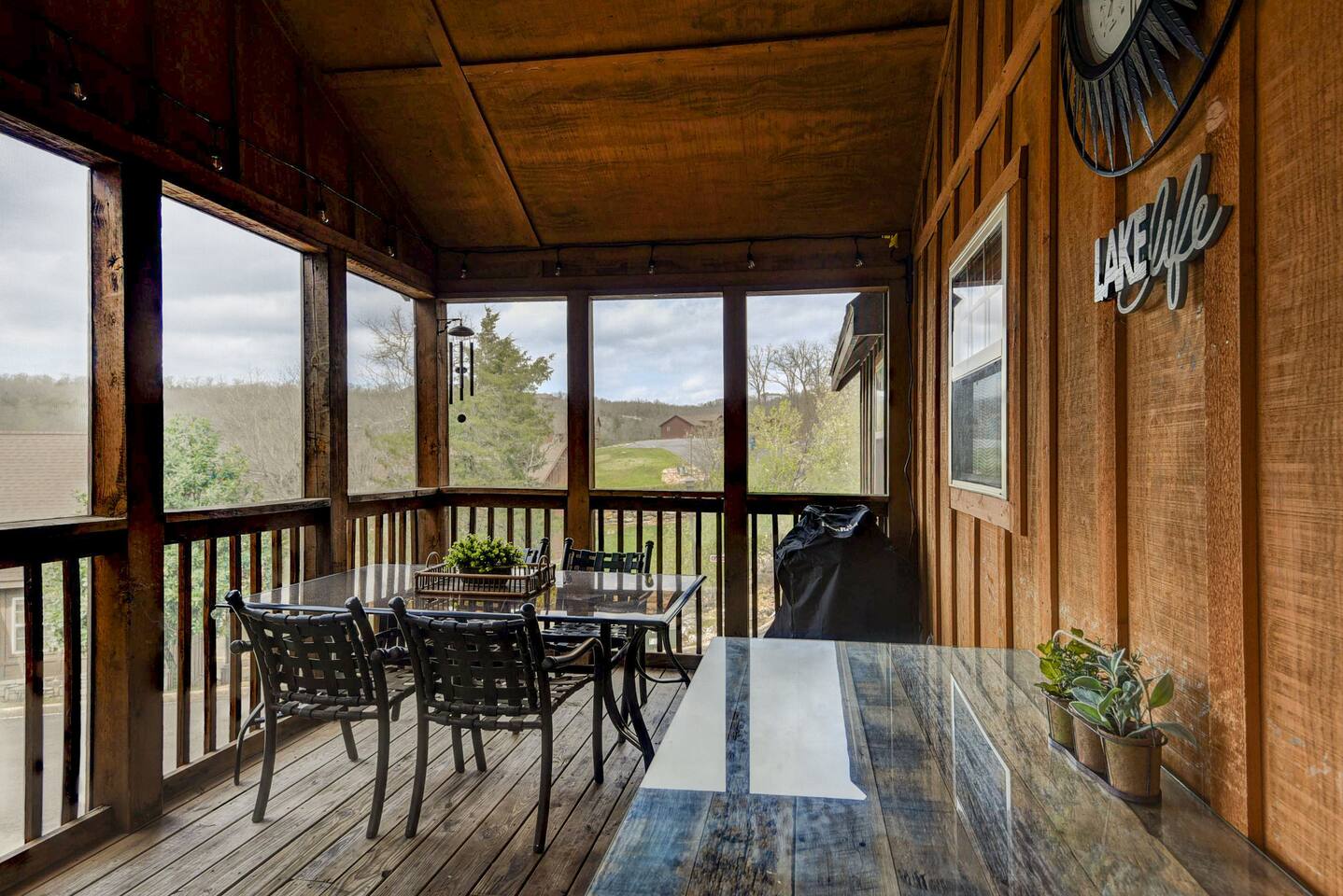 Enjoy the serenity of nature in this beautiful and spacious lodge in the heart of StoneBridge Village in Branson. Experience the best of both worlds - close to Branson, yet in a secluded and gated neighborhood. You will have access to the LedgeStone Golf Course, 3 outdoor pools, playgrounds, sand volleyball, basketball, tennis, and more. This lodge is only a short walk (2-3 minutes) to the Fox Hollow Lake and family-friendly pool with an easy walk-in slope, covered dining areas, basketball, volleyball court, and playground. You will also find a fabulous catch and release lake and walking trail next to the pool and within sight of this cabin. Enjoy the stone fireplace for a cozy evening in, the well-appointed kitchen for preparing meals after a busy day of golf or fun at nearby Silver Dollar City, and sleep well at night in the comfortable king beds. The lodge has free high speed wi-fi and cable tv in each bedroom. The screened and heated patio will be a hit for the whole family and is a great place to have a meal, enjoy that early morning cup of coffee while you watch the wildlife. Wildlife not your game? Catch the action on the 50” streaming tv! The kitchen is well stocked with all of the essentials and extras you would enjoy at home. A drip coffee pot, coffee bean grinder and a Keurig with enough coffee to get your trip started are all provided. There are beautiful views of the trees and changing seasons from the porch and lodge. We also provide an electric grill for your use and there are charcoal grills available throughout the StoneBridge property. We have worked hard to provide everything you need to make your Branson vacation perfect. All new (March 2022) bedding, towels, and linens are provided. There is so much to do while on property - three outdoor swimming pools (open Memorial Day through Labor Day), 3 tennis courts, onsite restaurant-LedgeStone Grille, 3 playgrounds, sand volleyball, basketball court, paved walking path, a lake with fountain, banquet facilities, 24 hours gated security, and a stocked, catch and release lake! We are located about 5 minutes from the famous Branson Strip so that you have quick and easy access to all of the shows, family entertainment (The Track go-karts, mini-golf, Titanic, Wonderworks, Ripleys, and so much more!), outlet mall and restaurants. We are three miles from Moonshine Beach, where you can play on a sandy beach next to Table Rock Lake. State Park Marina and Indian Point Marina are only 5 miles away - launch your boat or rent one and enjoy our beautiful lake. We allow up to two dogs under 40lbs - there is an additional $75 pet cleaning fee per stay. This is a NON SMOKING unit. We do not allow smoking in the home or on the porches. *The Stonebridge Village Welcome center charges a $5 per vehicle, per night resort fee. This fee is payable directly to the Stonebridge Village Welcome Center at the time of entry.