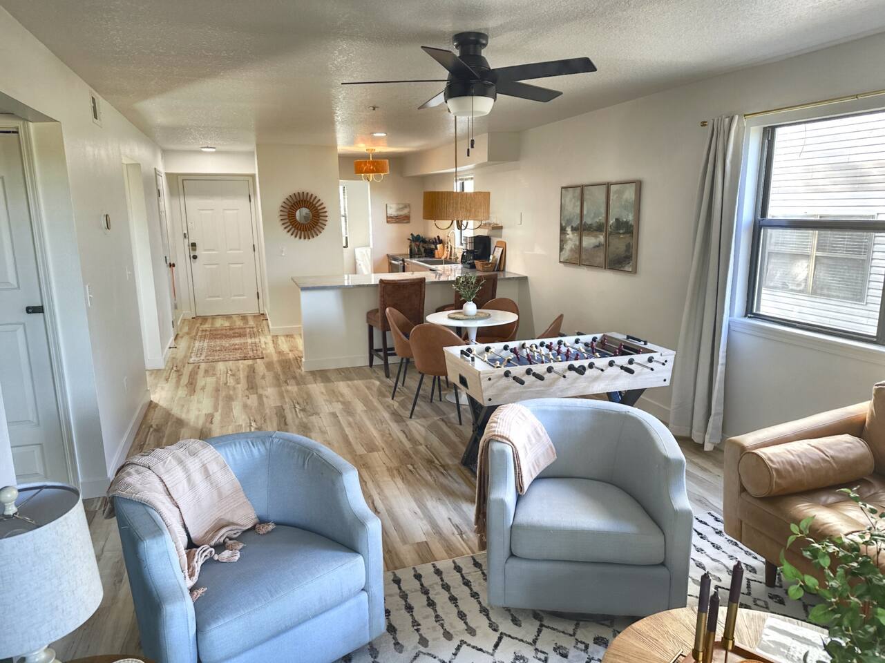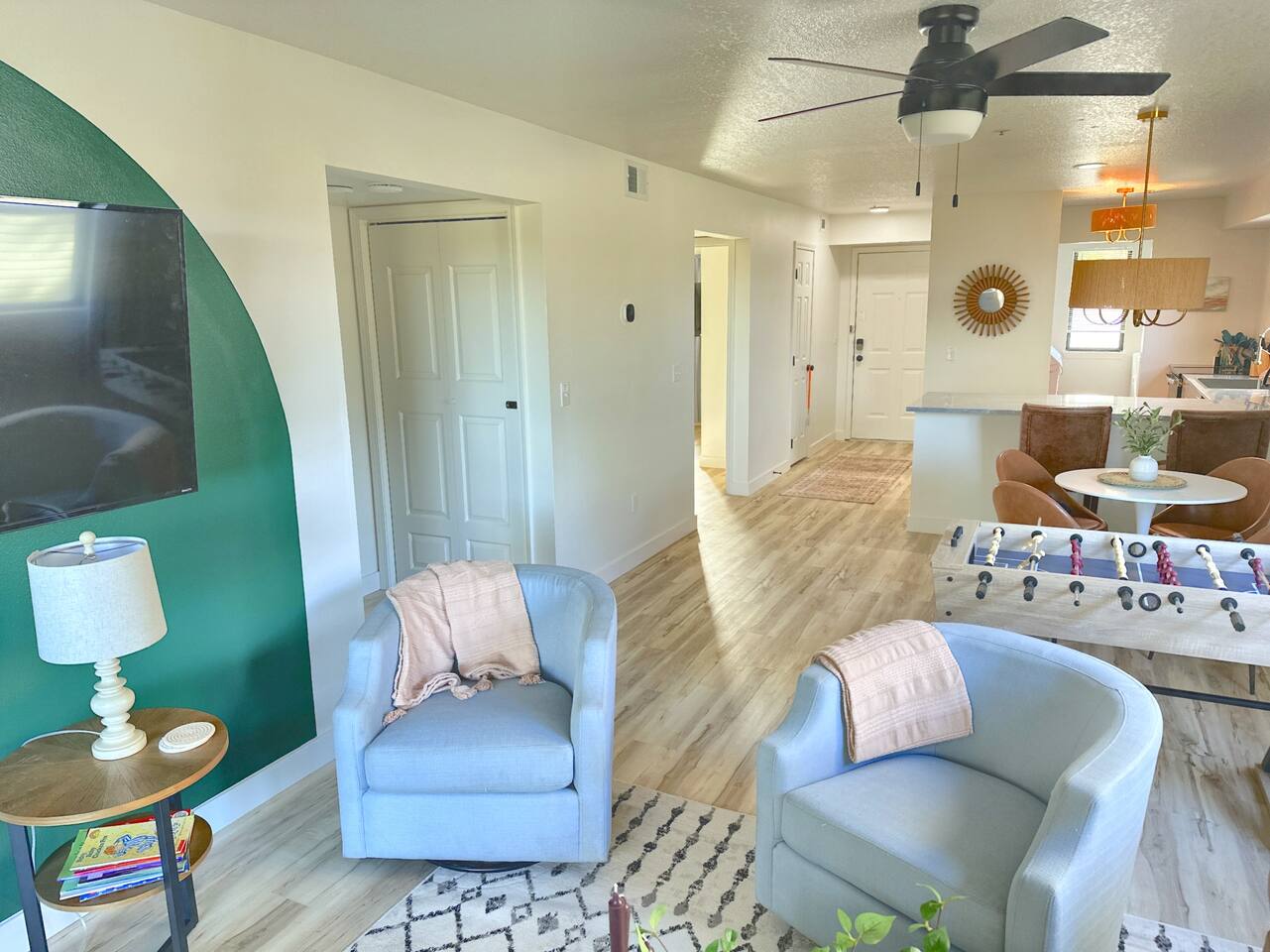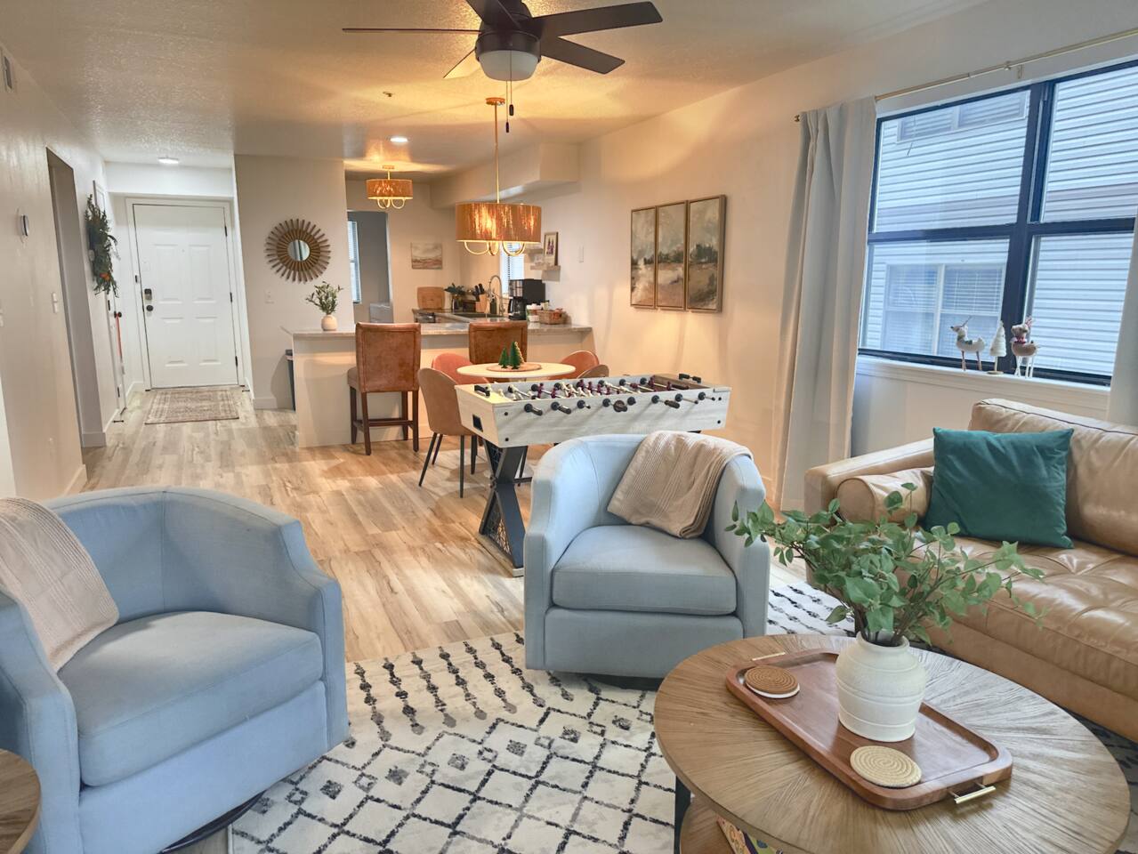 Welcome to your home away from home! This stylish, modern 2-bedroom condo in Pointe Royale, Branson, MO, offers a family-friendly retreat packed with unique touches and fun amenities. The condo’s fresh decor and newly renovated kitchen and bathrooms provide a comfortable and inviting space, with everything you need to make memories with family and friends. The condo is on the 2nd floor of a 2 floor building and you must climb one set of stairs to enter.
