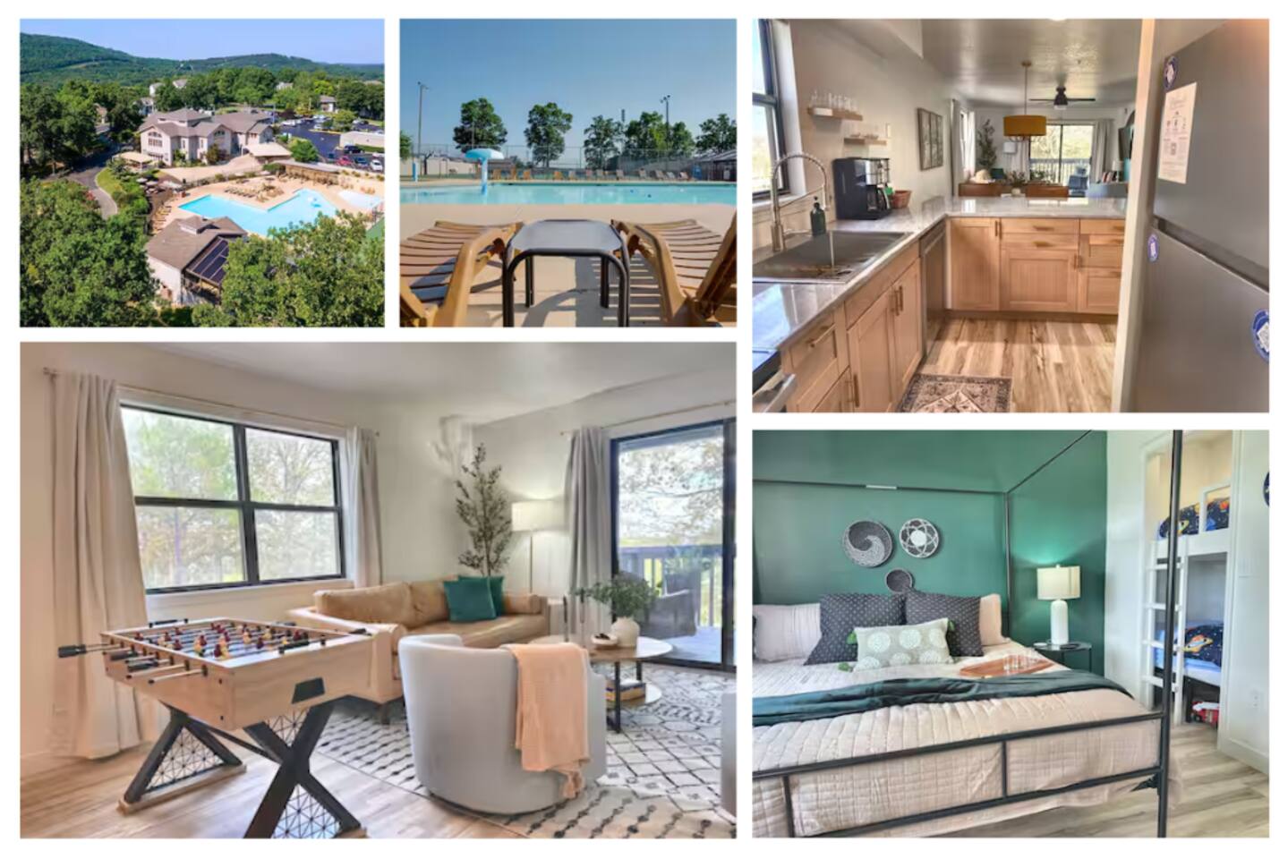 🏡 Modern Family-Friendly Condo in Branson’s Pointe Royale Resort ✨ Welcome to your home away from home! This remodeled condo is stylish and modern. Our 2-bedroom, 2-bathroom condo in the heart of Pointe Royale, Branson, MO, offers the perfect family-friendly retreat with fresh décor, thoughtful touches, and fantastic amenities to make your stay unforgettable. ✨ Condo Features 🛏️ 2 Bedrooms / 2 Bathrooms 🛁 Walk-In Shower & Separate Bathtub – Relax and refresh in comfort. 🛌 Sleeping Arrangements: 2 King Beds – Spacious and cozy for a restful night’s sleep. Built-In Bunk Beds – Two twin beds nestled in their own cozy alcove, perfect for kids! 🍽️ Fully Equipped Kitchen – Everything you need to prepare meals with ease. ☕ Keurig Coffee Maker – Coffee and sugar provided to start your mornings right! 🧸 Kid-Friendly Extras: Games, Toys, and a Play Tent to keep the little ones entertained and happy. 🌟 Comfort & Style for Your Getaway Newly Renovated Kitchen & Bathrooms: Modern, stylish spaces designed for comfort and convenience. Fresh, Inviting Décor: A beautifully styled interior perfect for relaxing and making memories. 🏢 2nd Floor Location: Situated in a two-story building – just one easy flight of stairs to your peaceful retreat. 🌴 Resort Perks & Nearby Fun Staying at Pointe Royale Resort means access to incredible amenities and Branson’s best attractions: 🏊♂️ Pools & Hot Tub: Indoor and outdoor pools for year-round fun. 🎾 Sports Courts: Tennis, pickleball, and basketball courts for active fun. 🏌️♂️ Championship Golf Course: Tee off at the scenic Pointe Royale Golf Course. 🌳 Family-Friendly: Grassy Play Area, Playground, and Sand Volleyball Court just steps from the condo. 🎣 Lake Taneycomo Access: Perfect for fishing and lakeside strolls. 🛍️ Close to Everything: Minutes from Branson’s live shows, shopping, dining, and outdoor adventures at Table Rock Lake. 🗝️ Your Perfect Branson Family Escape This condo is thoughtfully designed with families in mind, offering cozy built-in bunk beds, kid-friendly entertainment, and fantastic resort amenities. Create lasting memories in Branson’s best gated resort community! ✨ Book your Branson getaway today! 🗓️🏡 $50 off rounds of golf. Regular price $109.99, your price $60! We will provide details on how to get this fantastic offer after booking. 📲 Follow Us on Socials: @Branson_Rentals Branson Lakes Lodging