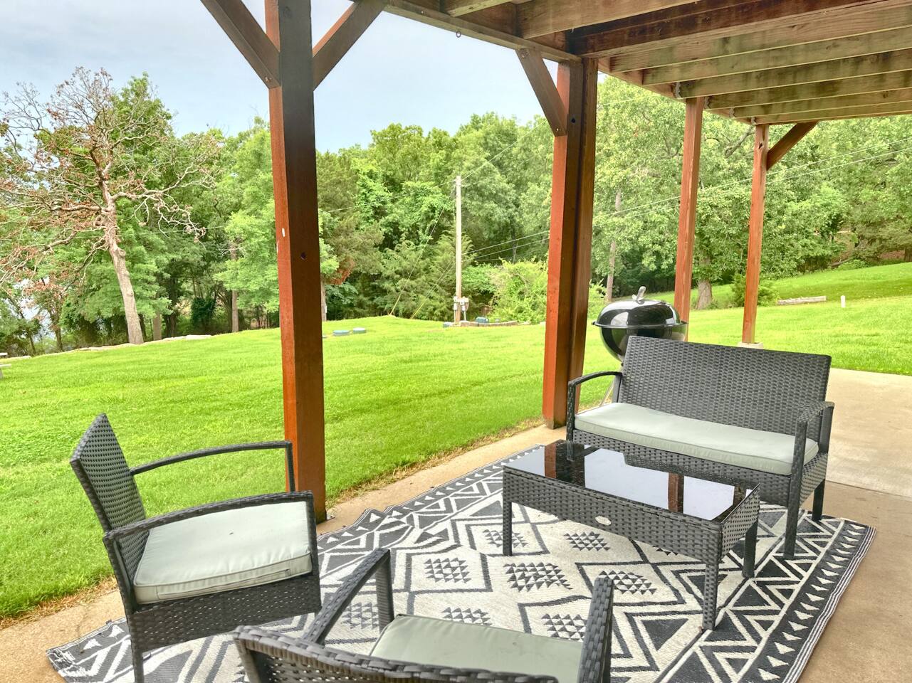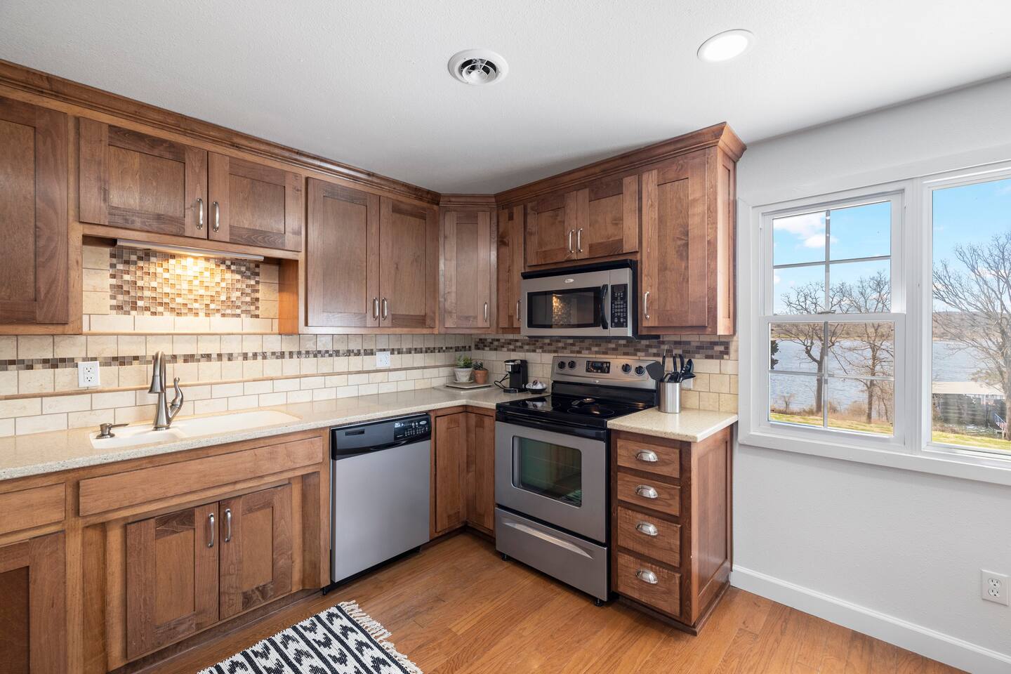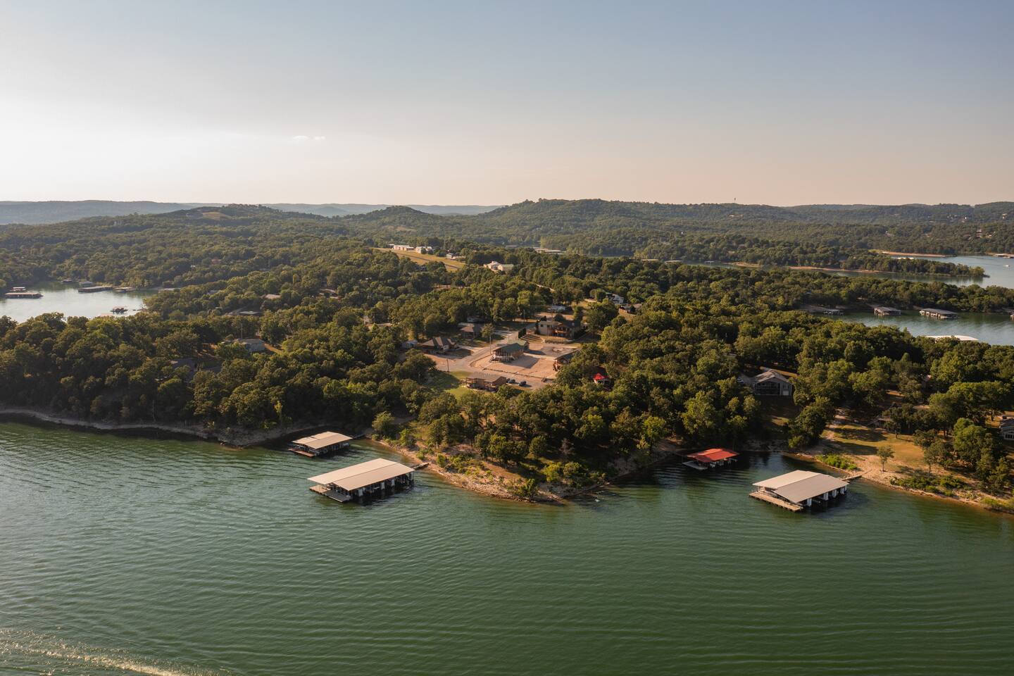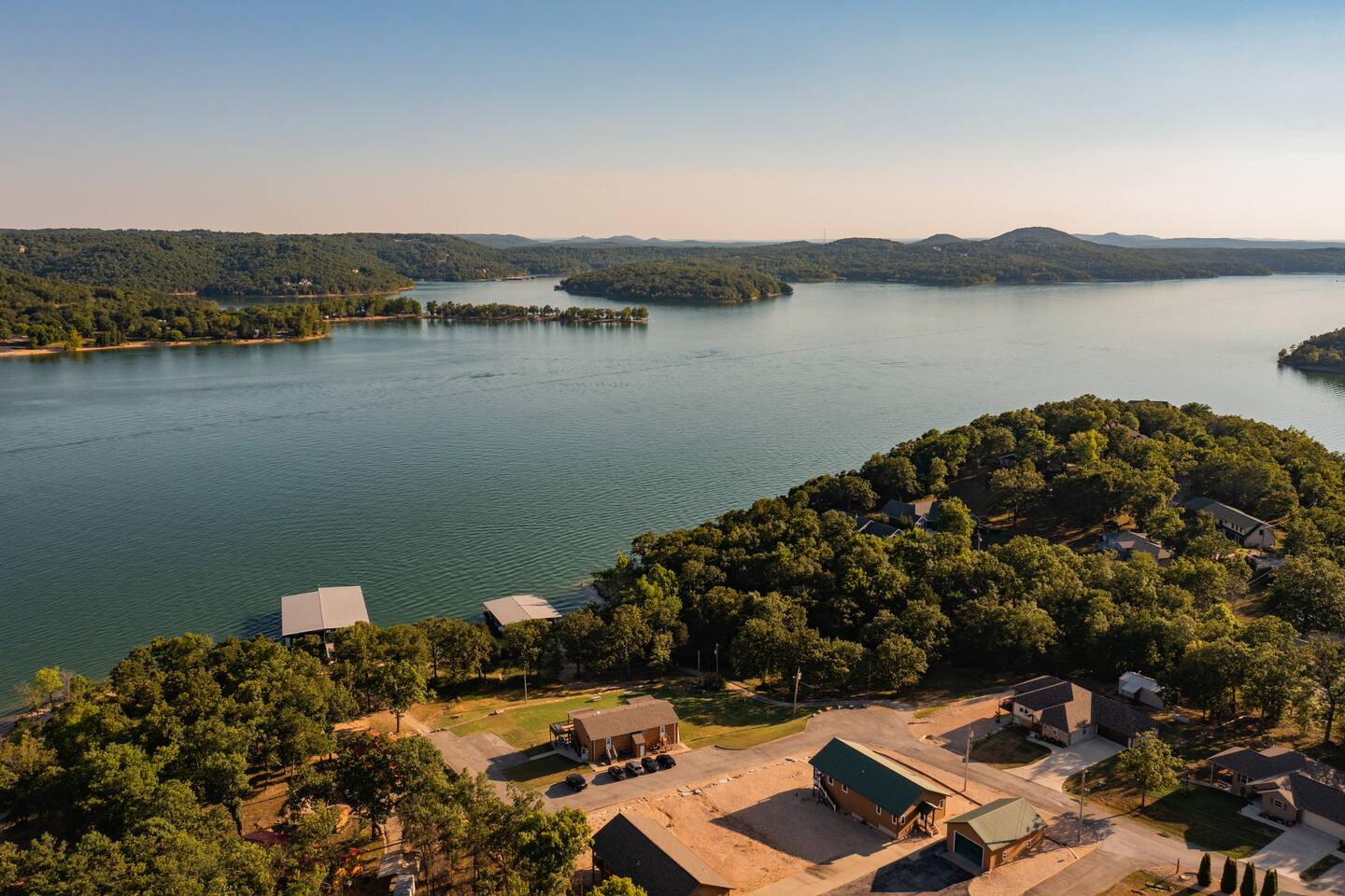 Fun and sun sparkling on the water. Our condo, situated on the bottom level of our two-story property, provides instant access to the lakeshore. Step outside and embrace the tranquility of Table Rock Lake. Need more space? All four units in this building are available. Just click on our hosting profile to see our other units. Convenient Boat Launch: Adventure awaits! Launch your boat just minute away at Joe Bald boat ramp and explore the scenic wonders of Table Rock Lake. Whether you're into fishing, water sports, or simply cruising, this location is a boater's dream. Breathtaking Views: Enjoy panoramic views that will take your breath away. The beauty of Table Rock Lake unfolds before you, creating a picturesque backdrop for your unforgettable stay. Spacious and Inviting: With 1,100 sq ft of living space, this condo offers comfort and style. Two full-sized bathrooms ensure convenience for your entire crew. No need to rush in the morning or wait in line for the shower – we've got you covered! Family-Friendly Retreat: This property is designed with families in mind. The cozy living room features a queen sleeper sofa, perfect for relaxing after a day of lake adventures. Bedroom 1 and Bedroom 2 both boast comfortable queen beds, providing a restful haven for a good night's sleep. Shared Hot Tub: After a day of lake activities, unwind in our 7-person shared hot tub (4 units share the hot tub). Soak away the stresses and enjoy the company of friends and family under the starlit sky – the perfect way to end your day. Most people go to the right of the docks and swim from the rocks. Because it’s an Army Corp lake the shoreline cannot be improved by owners and is natural. If you want a roped off swim area, you can visit Kimberling City Marina, which is just a few minutes away. Book now for a family-friendly, lakefront retreat that promises breathtaking views and endless memories!