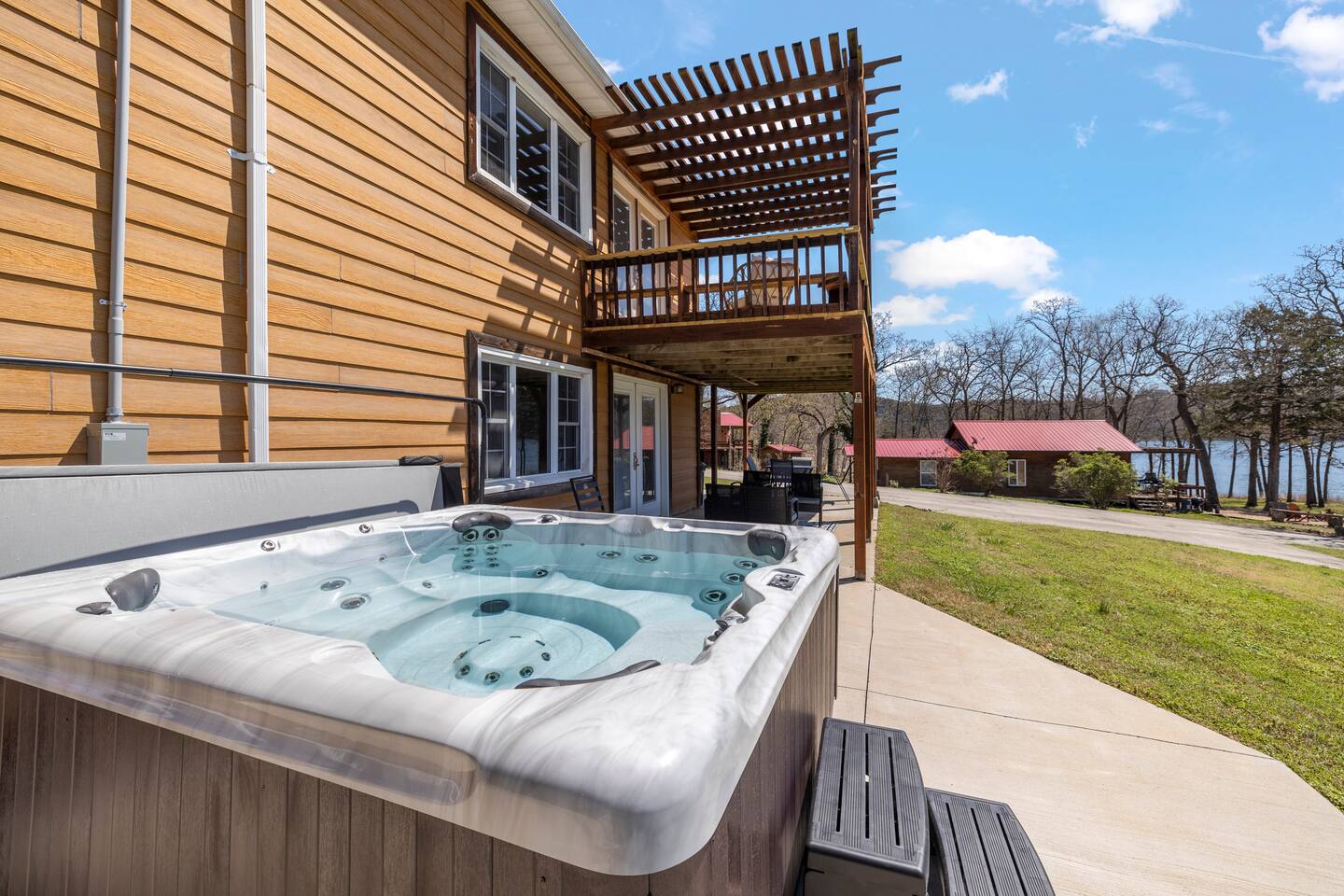 You will have full and private use of your condo and lake facing balcony. The hot tub is shared between 4 units. You have direct lake access from the shore, but there is no available dock on the property.