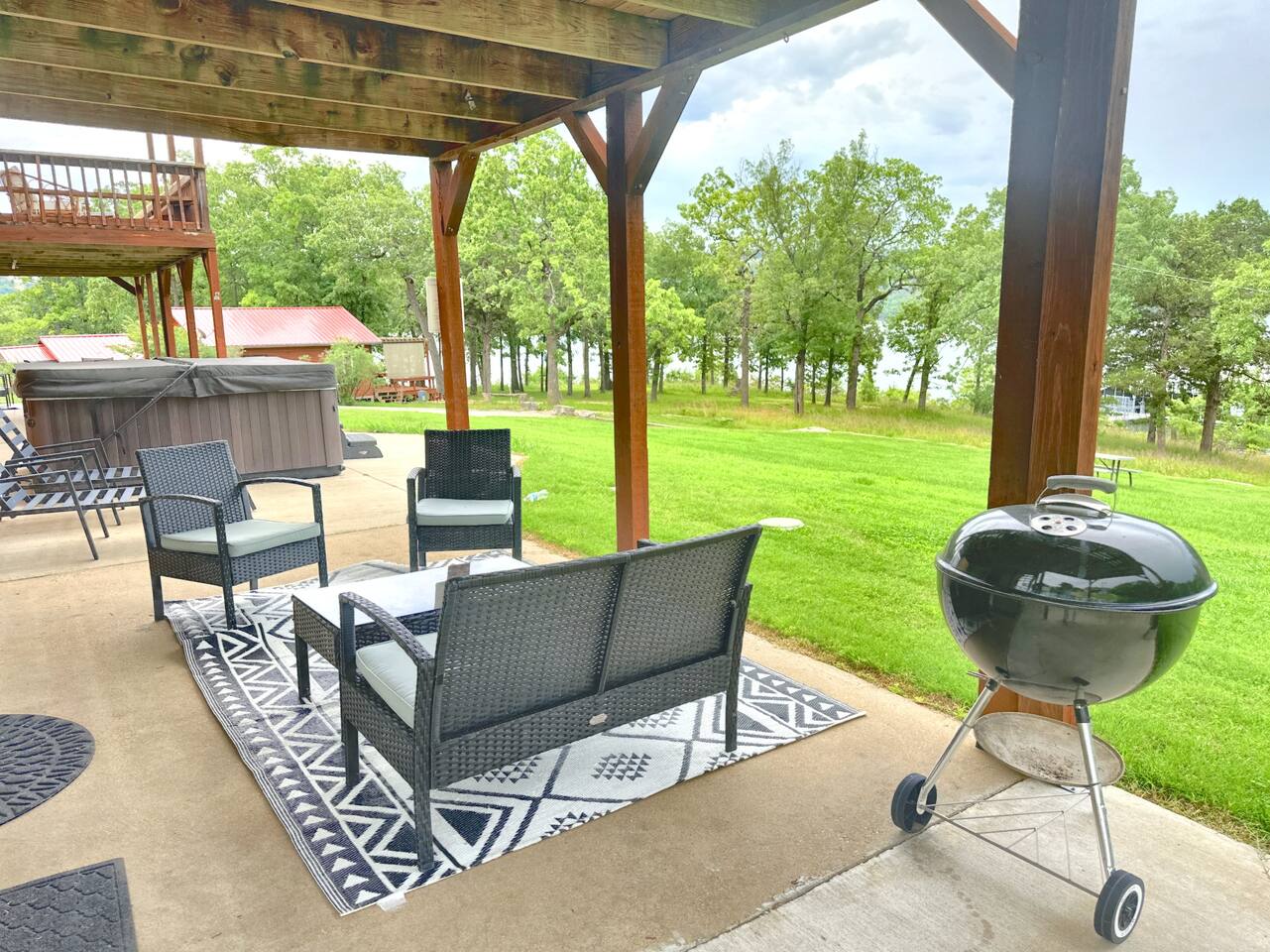Resort Features: shared 7 person hot tub, lake access, bbq grill, picnic table area. Condo Features: Wifi, Netflix, lake-view balcony, outdoor furniture + lounge chairs, coffee maker, 4-person dining table, linens/towels